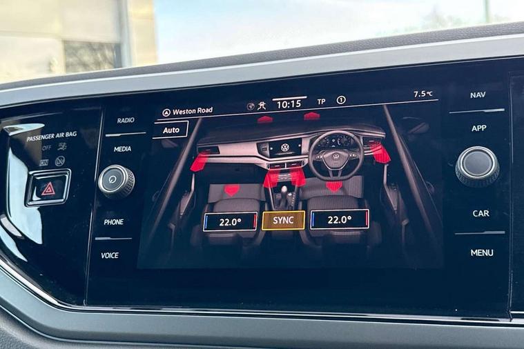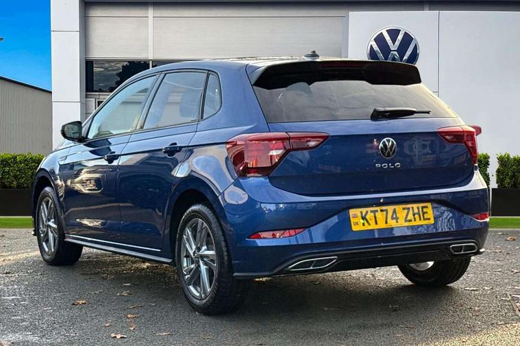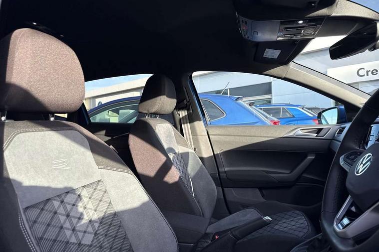 Adaptive cruise control with follow-to-stop and speed limiter, Advanced driver attention and drowsiness monitor, Bluetooth mobile phone interface, Digital Cockpit Pro with 10.25" Display, Dynamic road sign display, Emergency call service, Multifunction camera, Power assisted speed sensitive steering, Preparation for We connect and We connect plus, Speedo and rev counter, electronic odometer, trip, service interval display and fuel gauge, Standard rear axle, Travel Assist - Lane keeping system and traffic jam assist, Travel assist including emergency assist, Trip computer, Warning signal and warning light for front and rear seatbelts not fastened, Washer fluid level indicator, Wireless app connect, Front wheel drive, Rear shock absorpion, Start-stop system with battery regeneration (recuperation - energy recovery during braking), DAB Digital radio, Diversity antenna for FM reception, Front and rear 6 speakers, Body colour bumpers, Body colour door handles, Electric front windows, Front scuff plates with R-Line logo, Heat insulating glass windscreen, Power folding adjustable/heated exterior mirrors and front passenger exterior mirror lowering function, Rear electric windows, Rear fog light, Rear side wing doors, Rear windscreen washer and wiper with interval delay, Third brake light, 12V power socket in centre console, 2 USB-C ports in the front, 2 USB-C charging sockets on the center console in the rear, 3 rear head restraints, 60/40 split folding rear seat and rear seat bench not split, Air care climatronic air conditoning system with active combination filter and 2-zone temperature control, Black roof lining, Carpet mats, front and rear, Chrome plated radiator grille inserts, air vent surrounds and light switch surrounds, Door and side trim panel, Driver and front passenger seat height adjustment, Driver/passenger sunvisors with illuminated vanity mirrors, Front centre armrest, Front footwell illumination, Front seat backrest storage pockets, Front sports comfort seats, Handbrake lever handle in leather, Headliner in recycled material, Isofix child seat preparation easy-fit (for two outer rear seats, and front passenger seat) compatible with I-size, Karoso artvelours cloth upholstery, Leather trimmed gear knob, LED interior light with switch off delay and dimmer, 2 reading lights front and rear, Luggage compartment cover, Luggage compartment floor, Luggage compartment lighting, Lumbar adjustment for front seats, Single front passenger seat, Stainless steel pedals, Standard pedal cluster, Three spoke leather wrapped multifunction steering wheel with shifting paddles, Light and sight pack - Polo R-Line/Black Edition, 3 point height adj front seatbelts + pretensioners, 3x3 point rear seatbelts, ABS, Driver and front passenger airbag with front passenger airbag deactivation, Drivers and front passengers safety optimised head restraints, ESC (Electronic stability control) + EDL (Electronic Differntial lock) and ASR (Traction control), Extended and predictive pedestrian/ cyclist protection, Front curtain and side airbags with center airbag, Front/rear disc brakes, Hill hold control, Manual child lock in rear doors, Single tone horn, Tyre pressure loss indicator, Alarm with interior protection, Anti-theft alarm system with interior monitoring, backup horn, and towing protection, Anti-theft wheel bolts, Electronic engine immobiliser, Chrome applications on rotary light, mirror adjustment, window regulator switches, outlet with frame in black, Dark grey anodised matt decorative inserts in dash and front door panels, 16" Coventry alloy wheels, Low rolling resistance tyres,