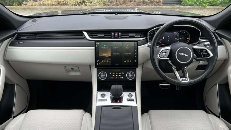 11.4" touchscreen, Adaptive cruise control with steering assist, Android Auto, Apple car play, Blind spot assist, Bluetooth connectivity, Clear exit monitor, Driver alert system, Driver condition monitor, eCall emergency call system, Eco driving style assistant, Electric power assisted steering, InControl remote, Jaguar Toggle shift selector, Lane departure warning system, Lane keep assist, Outside temperature gauge, Personalisation profile management, Pivi pro connected navigation system with app interface and media storage, Pro services and wifi hotspot, Push button starter, Rear collision monitor, Rear traffic monitor, Service interval indicator, Speed proportional steering, Start up sequence with movement in dials and lighting, Traffic sign recognition with adaptive speed limiter, Trip computer, Voice control system, 8 speed automatic transmission, Adaptive dynamics, All terrain progress control, All Wheel Drive (AWD), Configurable dynamics, Open differential with torque vectoring by braking, AM/FM radio, Bluetooth streaming, DAB Radio (Digital Audio Broadcasting), Dynamic volume control, InControl apps, InControl protect, iPod integration, 3 flash lane change indicators, Animated directional indicators, Approach Illumination, Auto dimming rear view mirror, Automatic headlights, Body colour door mirrors, Electric heated/power fold memory door mirrors with approach lights and auto dimming driver side, Electric windows with one touch open/close and anti trap, F-Pace and R Dynamic badge, Green tinted glass, Heated front windscreen + heated washer jets, Heated rear window with timer, Illuminated metal tread plates with Jaguar script, Jaguar script and leaper, LED High level third brake light, LED tail lights, Metal load space scuff plates, Non acoustic front windscreen, R Dynamic badge on side door, Rain sensor windscreen wipers, Rear fog lights, Rear metal tread plates, Rear side wing doors, Rear wiper, Trailer stability assist, Variable front intermittent wipers, 12V power point front, 3 rear headrests, 3 seat bench in 2nd row, Air distribution speed, Bright metal foot pedals, Centre armrest console, Centre console with side storage, Deletion loadspace storage rails, Door sill tread plates, Electrically adjustable steering column, Fold flat front seats, Front centre armrest with storage compartment, Front door storage space, Glovebox finisher with jaguar script, Heated steering wheel, Hooks in loadspace, Illuminated glovebox, Interior front door handles with separate locking switches, ISOFIX on outer rear seats, Jaguar sense, Luggage tie downs in loadspace, Mist sensing, Multifunction steering wheel, Overhead lighting console, Overhead stowage for sunglasses, Passive front head restraints, Premium cabin lighting, Premium carpet mats, R-Dynamic branded leather steering wheel, Rear air vents, Rear armrest with twin cupholders, Rear centre headrest, Rear door storage space, Reversible boot floor, Satin chrome gearshift paddles, Shopping bag hook, Single front passenger seat, Sunvisors with illuminated vanity mirrors, Twin front cupholders with cover, Online Pack with data plan - F-Pace, 355mm front brakes and 325mm rear brakes, 3x3 point rear seatbelts, ABS, All surface progress control (ASPC), Brake pad warning light, DSC - Dynamic Stability Control, Electric parking brake (EPB), Emergency brake assist, Front airbags with passenger seat occupant detector, Front and rear seatbelt reminder, Front side airbags, Full length side window curtain airbag, Hill launch assist, Power operated child locks, Torque vectoring brake, Traction control, Tyre pressure monitoring system, Immobiliser, Keyless entry, Keyless Start, Locking wheel nuts, Perimeter alarm, Remote central locking, Valet mode,