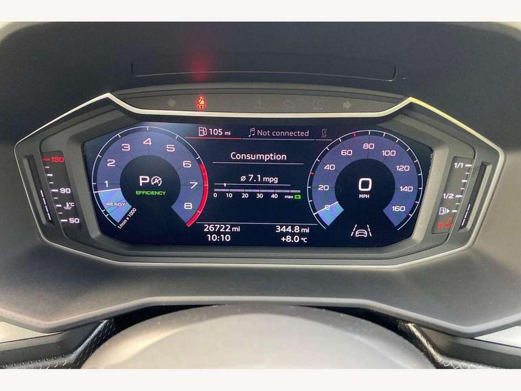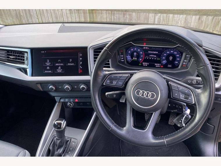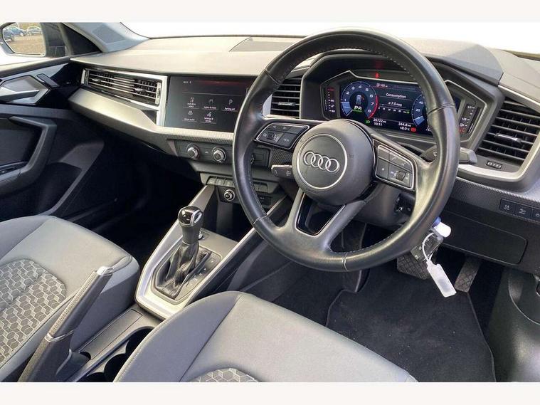 10.25" Digital instrument cluster display classis style instrument dials + speed, odometer, time, outside temperature, telephone menu + fuel level warning, Audi connect safety emergency and service including E-call, Audi drive select - power steering assistance + engine + gear shift 3 preset modes (auto, dynamic, efficiency and an Individual mode), Audi smartphone interface with connect compatible smartphone via USB directly MMI display + Nav, music, third party apps controlled via MMI controller, Automatic start/stop system, Bluetooth interface, Cruise control, Driver's information system, Electromechanical power steering, Lane departure warning system, Rear parking sensor, Service interval indicator, Speed limiter, Voice control system, Washer fluid level indicator, Dynamic suspension, 1 x SDXC card reader, 1 x USB type C and 1 USB type A charging points, DAB Digital radio, MMI radio plus with 8.8" colour MMI display screen and MMI touch, Auto dimming rear view mirror, Body coloured bumpers, Body coloured door mirrors, Electric front and rear windows, Electrically adjustable, heated, folding door mirrors with integrated LED side indicator, Front side air inlets in grained matt black and C frame in titanium black, Heat insulating glass windscreen and side windows, Heated rear windscreen, LED headlights with LED rear lights + dynamic rear indicators + headlight adjustment and high beam, turning light + LED daytime running lights, Radiator grille and rear diffuser in matt titanium black, Radiator protective grille frame in matt aluminium silver, Rain and light sensors, Rear fog lights, Rear wiper, Scandium grey tailpipe trim, Side front spoiler lips in grained matt black, 12V socket in centre console with two cup holders, 3 rear seats with headrests, 40:60 Split folding rear seat or folded fully, Door sill trims with aluminium inlay, Driver and passenger seat with manual height adjust with forward and backwards adjustment, Front head restraints, Front/rear floor mats, Height and reach adjustable steering wheel, ISOFIX child seat mounting for front passenger and outer rear seats including top tether attachment point of outer rear seats, Leather gear knob with aluminium trim, Leatherette handbrake grip, Luggage compartment light with front and rear reading lights, Manually adjustable lumbar support in front seats, Novum cloth upholstery with front sport seats, Titanium grey cloth headlining, Luggage compartment pack - A1, 3x3 point rear seatbelts, Audi pre-sense front with pedestrain and cyclist recognition, Brake assist function, Driver and front passenger airbag with front side and head airbags, Electronic Stability Control including ABS, EBD, ASR and EDL, Front and rear seatbelt reminder, Front passenger airbag deactivation switch, Hill hold assist, Seatbelt height adjustment for front seats, Seatbelt monitoring, Tyre pressure warning light, Warning triangle and first aid kit, Anti theft alarm, Anti theft wheel bolts and loose wheel warning, Immobiliser, Remote central locking with 2 foldaway keys, Aluminium trim for control switches, air vents and digital instrument cluster, Silver grey accent areas including air vents, door handle recesses and centre console in diamond paint finish, Slate grey inlays polygon structure in fine paint finish,