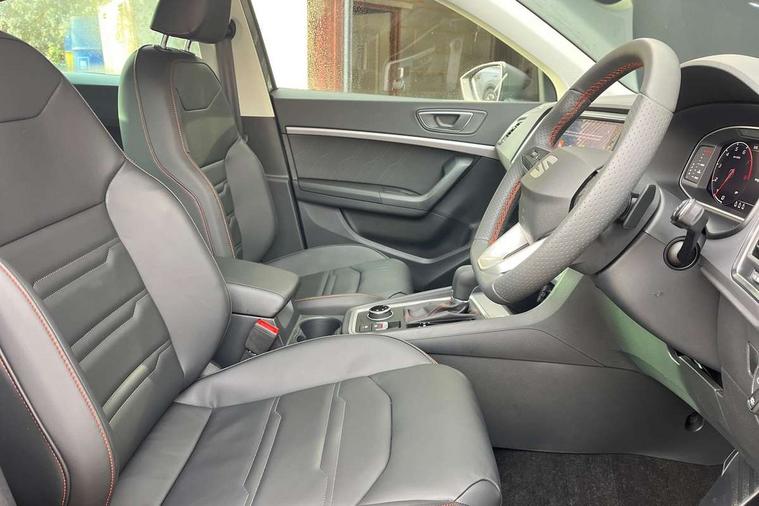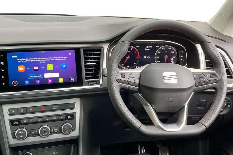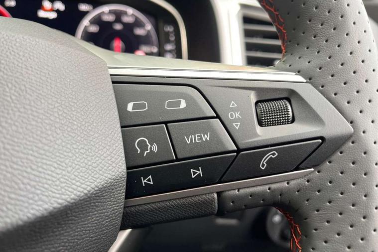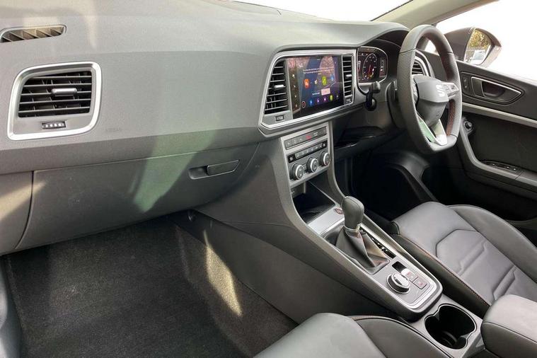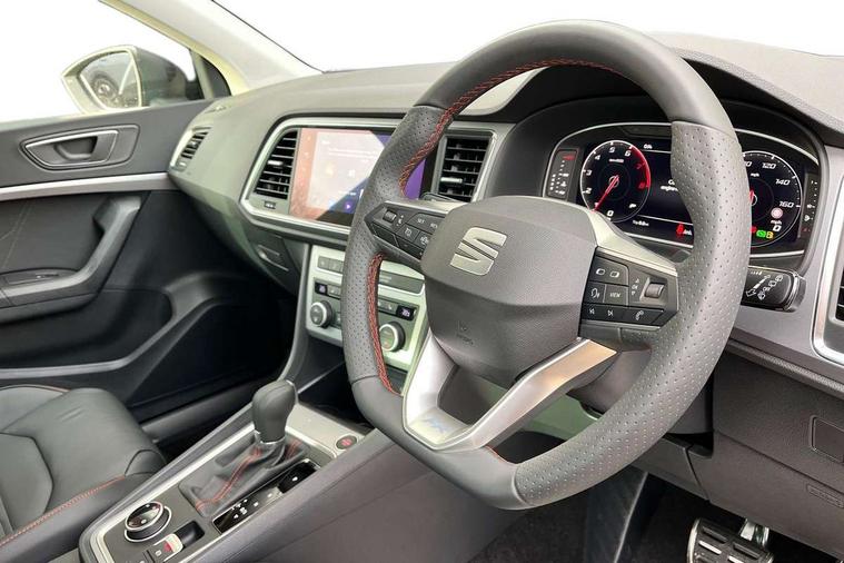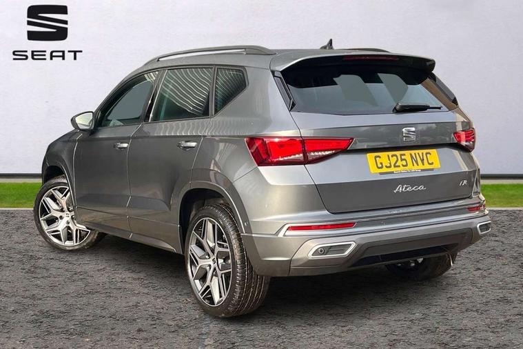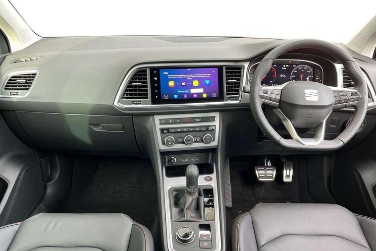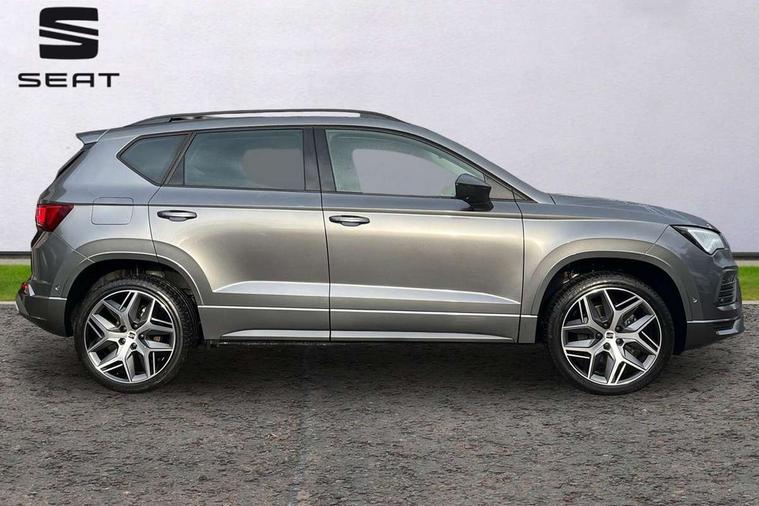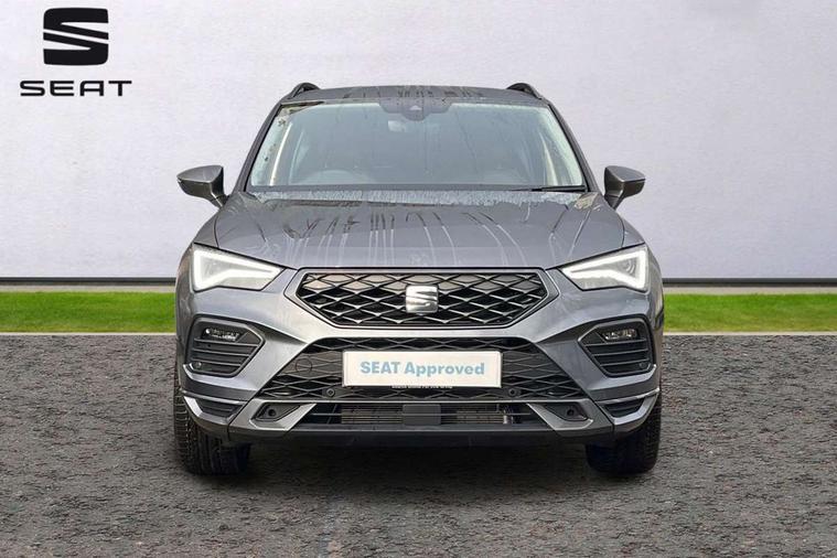 10" Digital cockpit, Cruise control system with speed limiter, E-call, Outside temperature gauge, Progressive power assisted steering, SEAT drive profile with driving experience button - Normal, Sport, Eco and Individual mode, gearshift, steering and throttle response, Self parking functionality (includes front and rear parking sensors), Start/stop system, Tailgate, Trip computer, wired and wireless full link smartphone integration, Wireless phone charger, Steering wheel mounted audio/phone controls, Black roof rails, Black side window trim, Body colour bumpers, Body coloured wheel arch surrounds, Chrome front grille frame, Dark tinted rear windows, Daytime running lights, Door mirrors with welcome light silhouette, Dynamic headlight range control with self adjusting whilst driving, Electric adjustable/heated/folding door mirrors, Front and rear electric windows, Full LED headlamps with lens and LED front fog lamps with cornering function, Illuminated aluminium front door sill, LED 3rd brake light, LED rear tail lights with dynamic indicators, Rear exhaust tailpipe, Rear fog lights, Rear side wing doors, Rear wash/wipe, Roof spoiler, Variable front intermittent wipers, 12V socket in front, 3 seat bench in 2nd row, 60/40 split folding rear seat, Aluminium pedals, Dual zone climate control, Electric adjustable driver seat with memory function, Front and rear head restraints, Front centre armrest, Front seat back storage pockets, Heated front seats, Height adjustable passenger seats with lumbar adjustment, ISOFIX points in outer rear seats with top tether anchorage points, Leather sports steering wheel and gear knob, Leather upholstery with front comfort seats, Manual lumbar support on driver seat, Rear armrest and easy back seat release mechanism from boot, Single front passenger seat, Steering wheel mounted gearshift paddles, Convenience pack - Ateca, Interior lighting pack - Ateca, Navigation system pack with DAB - Ateca, Safety and driving pack with attention and drowsiness assist - Ateca, 3x3 point rear seatbelts, ABS, Traction control system (TCS), Electronic stability control (ESC) and Electronic differential lock system (XDS), Airbags - Driver and front passenger airbag with deactivation, front side, two curtain and driver's knee airbags, Electric parking brake with auto hold function, Front and rear seatbelt reminder, Front assist with autonomous emergency braking, Hill hold control, Manual rear child locks, Single tone horn, Tiredness recognition system, Tyre pressure monitoring system, Alarm, Keyless entry, Locking wheel bolts, Remote central locking, Chrome interior detailing, 19" Exclusive machined alloy wheels with decorative inserts 36/7 in cosmo grey,