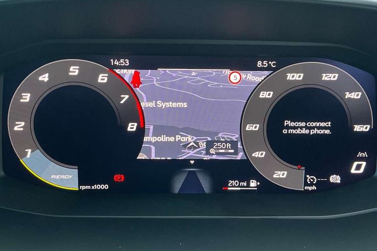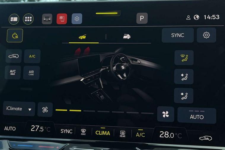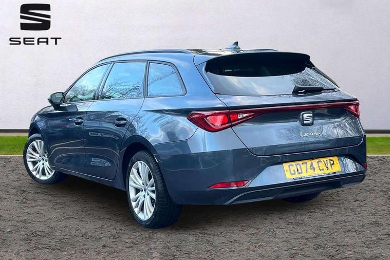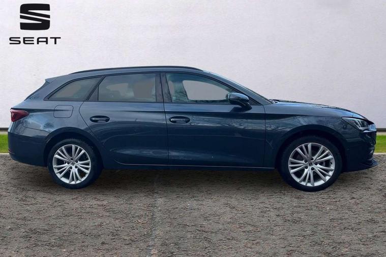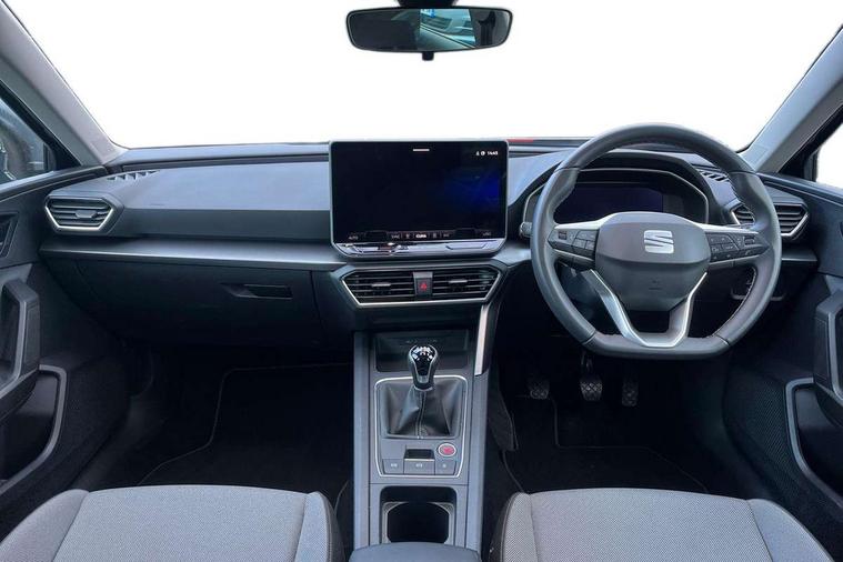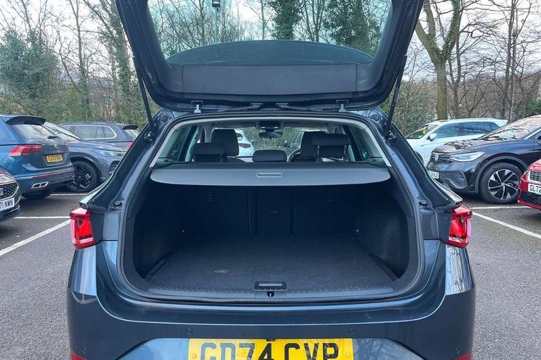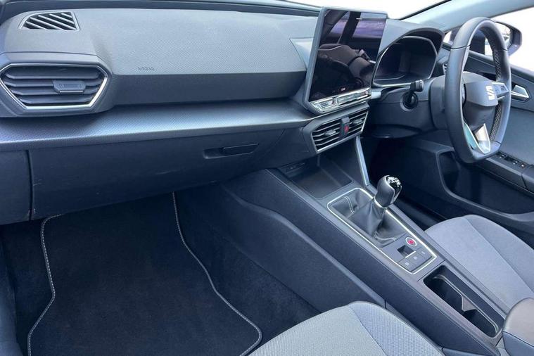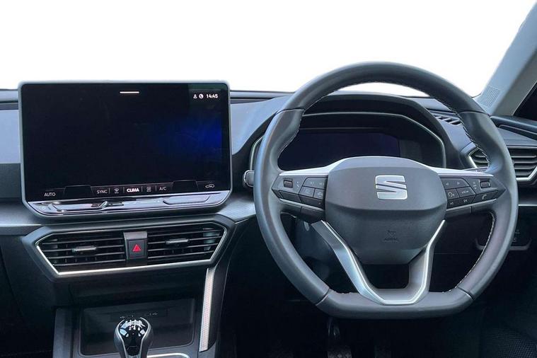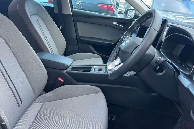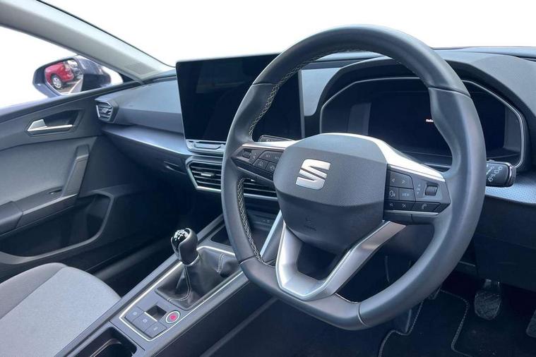 Digital cockpit with multifunction display, Driver attention alert with drowsiness warning, Dynamic road sign display, E-call, Front assist with forward collision warning braking reaction to vehicles, pedestrians and cyclists, Full link smartphone integration with Mirror Link, wireless Apple CarPlay and wired Google Android Auto, Intelligent speed assist, Lane assist, Lockable tailgate, Park assist (inc front/rear parking sensors), Power assisted speed sensitive electro-mechanical steering, Rear view camera, RPM, trip computer, outside temp gauge, instrument light brightness, low fuel warning light, lights on reminder, gearshift indicator, Service interval indicator, Start/stop system with regenerative braking, Standard suspension, XDS electronic differential lock and dynamic traction support, 2 front and 2 rear USB-C ports, 7 speakers, Auxiliary input socket, Black roof rails, Body colour door handles, Body coloured bumpers, Body coloured exterior mirrors with integrated LED indicators, Dark tinted rear windows, Electric front/rear windows, Electrically adjustable and heated door mirrors, LED front fog lamps, LED headlights and infinite rear tail lights, LED rear fog lamp, Manual dimming rear view mirror, Rain sensor, Rear side wing doors, Rear wash/wipe, Separate daytime running light with automatic headlight control, Third brake light, 12v power point in centre console, 3 seat bench in 2nd row, 60/40 split rear bench seat, Driver seat lumbar adjustment, Driver/passenger manual seat height adjustment, Dust/pollen filter, Front and rear height adjustable headrests, Front and rear reading lights X 4, Front centre armrest, Front seatback storage pockets, Grey headlining, Height/reach adjust steering wheel, Illuminated glove box interior lighting, ISOFIX points in outer rear seats with top tether anchorage points, Leather flat bottomed, perforated steering wheel and leather gearstick, Luggage tie-down hooks, Single front passenger seat, Sliding boot cover, Sunvisors with mirror, Three zone climate control, Two tone cloth upholstery, Media system plus with navigation - Leon, 3 point seatbelts on all rear seats, ABS, Brake control system - ESC and brake booster, Child proof door locks, Driver and front passenger airbags with front passenger airbag de-activation, front side and curtain airbags, Electronic parking brake, Extended safety system - seat belt tensioner, window closure and hazard lights, Hill hold control, Rear disc brakes, Seat belt reminder for front and rear seats, Tyre pressure monitoring system, Anti theft alarm system with interior monitoring in cab, backup horn and towing protection, KESSY Go (Keyless start), Locking wheel bolts, Chrome interior detailing, 17" Dynamic tri-spoke alloy wheels with 91W tyres, Tool kit,