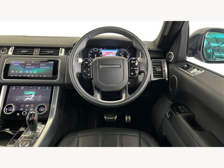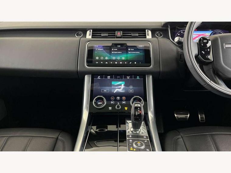 All Terrain Info Centre, Android Auto, Apple car play, Bluetooth connectivity, Electric power assisted steering (EPAS), Incontrol apps in vehicle touchscreen, Interactive Driver display instrument cluster, Mist sensor, Navigation pro system with 10" touch screen, app interface and media storage, Powered gesture tailgate/boot lid, Pro services and wifi hotspot, Push button start, Remote premium - Upgraded Incontrol remote app including remote climate control (engine dependent), remote lock + Unlock and remote beep + flash, TFT Virtual Instrument Panel, Touch pro duo system, Trip computer, 7 kW onboard charger, Adaptive dynamics, Electronic active differential with brake torque vectoring, Electronic air suspension, Gradient release control (GRC), Public charging cable, Terrain Response 2 with dynamic program, Twin speed transfer box, Bluetooth audio streaming, DAB Radio (Digital Audio Broadcasting), Incontrol protect - SOS emergency call with automatic collision detection, optimised assistance call and Incontrol remote app essential, USB/aux input socket, Acoustic front and toughened rear side glass, Acoustic laminated front windows, Adaptive brake lights, Auto dimming interior rear view mirror, Automatic headlights, Body coloured side sills and bumpers corners, Electric windows with one touch open/close and anti trap, Electrical towing preparation, Engine cover, Follow me home lighting, Front and rear recovery eyes, Front fog lights, Headlight power wash, Heated rear window, Heated windscreen includes heated washer jets, Illuminated metal treadplates with brand name script, LED rear lamps, Privacy glass (Tinted glass rear of B pillar), Rain sensing windscreen wipers, Rear fog lights, Rear wash/wipe, Remote window closing, Side repeater indicators in mirror, Sport Badge in black, Standard bonnet, Trailer stability assist, Twin bright tailpipes, 2 way active front head restraints, 2 way rear head restraints, Auto air recirculation, Bright metal foot pedals, Centre console with armrest, Climate control memory, Customer configurable single point entry, Driver's footrest, Extended leather upgrade includes door top rolls and leather instrument panel mid section, Front and rear cupholders, Front door storage space, Front map lights, Front seat back map pockets, Front stowage pocket, Front/rear passenger grab handles, Heated steering wheel, Isofix child seat preparation, Leather steering wheel with Atlas inserts, Loadspace light, Loadspace mounting provisions, Lockable glovebox, Multifunction steering wheel, Perforated Windsor leather upholstery, Pollen filter, Power socket, Reach/rake electric adjustable steering column + entry/exit tilt away, Rear centre armrest, Rear ISOFIX, Roller blind loadspace cover, Satin chrome gearshift paddles, Sports pedals, Three 12V accessory power outlets, Black Exterior pack - Range Rover Sport Dynamic, Smartphone pack - Range Rover Sport, 3 point seatbelts on all seats, Anti-lock braking system (ABS), Brake pre-fill technology, Cornering brake control (CBC), Curtain airbags, Customer configurable autolock, DSC - Dynamic Stability Control, Dual stage driver/passenger airbags, EBD - Electronic brakeforce distribution, Electric parking brake, Electronic traction control, Emergency braking includes city, urban AEB and pedestrian, Front seatbelt pretensioners, Gradient acceleration control, Height adjustable front seatbelts, Hill descent control, Hill launch assist, Low traction launch, Passenger seat occupant detector with front airbags, Power operated child locks, Roll stability control, Seatbelt warning, TPMS (Tyre pressure monitoring system), Immobiliser, Intrusion sensor, Keyless entry, Locking wheel nuts, Perimetric and volumetric anti theft alarm, Remote locking, Grand black veneer, 21" 9 spoke gloss black alloy wheels - style 9001, Tyre repair system,