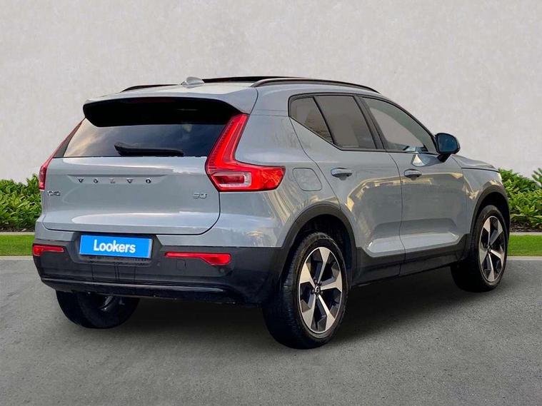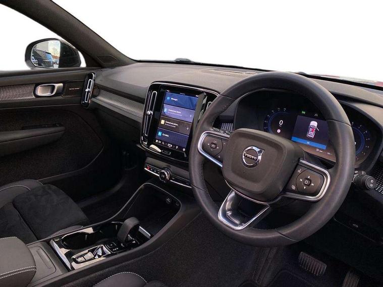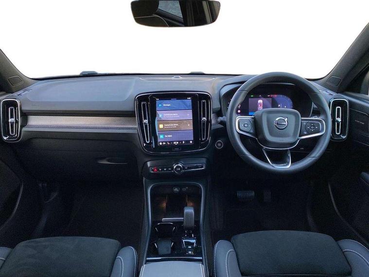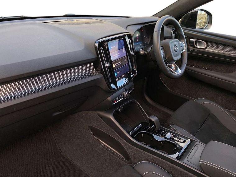 12.3" Progressive Driver Display, 360 degree surround view parking camera with side proximity sensors, 9" centre console portrait touch screen, Adjustable steering wheel force, Bluetooth hands free telephone kit, E-call, Front park assist, Google automatic services - Nav with google maps, apple carplay/android auto, voice recognition with google assistant, Hands free power tailgate, Lane keep assist with driver alert control, Oncoming Lane Mitigation, Rear park assist, Speed limiter, Speed sensitive steering, Wireless/Inductive Mobile Phone Charging, Dynamic chassis, DAB Digital radio, Premium Sound by Harman Kardon, Dolby Pro Logic II Surround Sound, Dirac Unison, 12 speakers/600W and subwoofer, Steering wheel mounted remote controls, Active bending pixel LED headlights with adaptive shadow technology, Active high beam incorporating daytime running lights, Adaptive brake lights with high level LED brake lights, Auto dimming interior mirror, Automatic headlamp levelling, Dark tinted windows for rear door side windows and cargo compartment, Front aluminium tread plates, Front and rear electric windows, Headlight cleaning system, High gloss black front and rear skid plate, High gloss black mesh front grille with high gloss black surround, High gloss black window trim, Home safe and approach lighting, Integrated roof rails in high gloss black, LED front fog lights, Power glass tilt and slide panoramic sunroof with sun curtain, Puddle lights, Rain sensor with automatic windscreen wiper activation, Rear side wing doors, Rear wiper, Roof antenna, Roof spoiler, Visible VIN plate, 12V socket in front tunnel console and luggage compartment, 2-Zone electronic climate control with CleanZone air quality system and pollen filter, 3 seat bench in 2nd row, 3 Spoke tailored steering wheel with chrome trim, 60/40 versatile split folding rear seat, A-pillar parking ticket holder, Centre console cupholders and storage, Flexible load floor and grocery bag holder, Floor mats, Front door pocket, front cupholder, ambient front door, rear reading, rear courtesy, instrument panel and tailgate lighting, Front footwell illumination, Front headrests, Front reading light and theatre lighting, Front seat cushion extensions, Front tunnel pocket, Glovebox bag hook, Heated front seats, Height adjustable passenger seat, Height/reach adjustable steering column, High gloss centre tunnel deco, Illuminated glovebox, Illuminated luggage compartment, Illuminated vanity mirrors, Integrated waste bin, Isofix attachments on outer rear seats, Load protection net, Multi directional lumbar support, Power driver seat with memory + exterior mirrors memory, Power folding rear headrests, Power passenger seat, Rear armrest / integral cup holders / storage tray, Single front passenger seat, Underfloor cargo storage, Climate pack without heated front seats - XC40, Driver assist pack - XC40, 3x3 point rear seatbelts, City safety with steering support with Pedestrian + cyclist + front collision warning with full auto brake and rear auto brake, Drivers knee airbag, Dual stage driver/passenger airbags, Electronic parking brake with auto hold, First aid kit, Front and outer rear seatbelt reminder and pretensioners, Front seats SIPS airbags, Hill descent control, Hill start assist, Inflatable curtain, Passenger airbag cut-off device, Power child locks on rear doors, Road sign information display, Run off Road Mitigation, Run off Road Protection, SIPS (Side Impact Protection System), Slippery road and hazard light alert, Stability and Traction Control with Spin control, Engine Drag Control and Corner Traction Control, Tyre pressure monitoring system, Vehicle deceleration control with Anti-lock Brake System, Electronic Brake Distribution and Emergency Brake Assist, Warning triangle, WHIPS whiplash protection system - front, Anti-theft alarm including immobiliser/volume sensor + level sensor, Key integrated remote control central locking + fuel flap with deadlocking system and auto open/close power windows, Keyless drive includes keyless entry and keyless start, Locking wheel nuts,