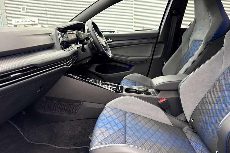 Adaptive cruise control (ACC) with speed limiter and front assist (reacting to vehicles pedestrians and cyclists), Car2X communication, Digital cockpit pro - 10.25" high resolution TFT dash display screen with customizable menus and information, Driver alert system, Dynamic road sign display, eCall - Emergency call service for SOS calls to emergency response, Lane assist, Lane change assistant, Mobile phone interface with wireless inductive charging function, Multifunction camera for distance control, PAS, Speedo, rev counter, electronic odometer, trip, service interval display, exterior temperature and fuel gauge, Start/Stop function, Travel assist with emergency side assist with electrically foldable door mirrors, USB-C ports in the front and rear centre console with increased charging performance, Warning buzzer and light for front seatbelts unfastened, Wireless app connect, 4Motion 4 wheel driver, Front differential lock, Petrol Particulate Filter, XDS electronic differential lock for improved traction and handling, Premium USB cable in choice of either Apple or Android smartphone compatibility, ''R' name plate, Auto dimming rear view mirror, Automatic headlamp activation with Coming home and Leaving home feature, Automatic headlights, Body colour bumpers, Body colour door handles, Body colour rear roof spoiler, Front and rear electric windows, Heat insulating glass windscreen, Heated rear windscreen, High level 3rd brake light, Highway light, Illuminated front grille, IQ.Light - LED Matrix headlights, dynamic headlight control with advanced high beam control matrix dipped main beam + LED DRL + 22 LED lights, LED front fog lights with 5 honeycomb design, LED License plate illumination, LED rear combination lamp inlcuding dynamic turn signal, Matt chrome effect door mirrors with integrated indicators, Performance rear spoiler, Rain sensor, Rear fog light on one side and reversing lights on both sides, Rear side wing doors, Rear tinted glass 65% light absorbing from B pillar backwards, Rear windscreen washer and wiper with interval delay, Remote electrically heated, adjustable and foldable door mirrors, including door mirror puddle lights and reverse activated kerb-view adjustment on pa, Welcome light, 12V socket in front centre console, 12V socket in luggage compartment, 3 rear head restraints, 3 seat bench in 2nd row, 3 zone climate with controls in the rear, Aluminium gear knob, Ambient lighting - Customisable 30 colour ambient lighting, Ambient lighting, exterior illuminated styling elements at the sides, Brushed stainless steel pedals, Chrome plated surround to electric mirror button, window switch and air vent surrounds, Drivers and front passengers sun visors with vanity mirrors, Front + rear carpet mats in recycled material, Front centre armrest with storage compartment, Front cupholders x 2, Front passenger seat, Front reading lights x 2 incorporating LED technology, Front seat lumbar support adjuster, Front sports seats, Glovebox, Height adjustable front seats, Height and reach adjustable steering wheel, Isofix child seat preparation for 2 rear child seats and front passenger seat, Leatherette door armrests and centre armrest, Luggage compartment lighting, R leather wrapped multi function sports heated steering wheel with extended paddle shift, Removable luggage compartment cover, Soul black instrument panel, Soul black roof lining, Split folding backrest with centre armrest and unsplit rear seat bench, Woven fabric storage compartments in front and rear doors, R styling pack - Golf, 3 point height adj front seatbelts + pretensioners, 3 rear three point seatbelts, ABS, Blue brake callipers in front with R logo, Child locks on rear doors, Driver and front passenger airbag with front passenger airbag deactivation, Drivers and front passengers safety optimised head restraints, Electronic parking brake with auto hold, ESC (Electronic Stability Control), Extended pedestrian protection measures, Front and rear passengers curtain airbag system including front side airbags, Front centre airbag, Front disc brakes, Front side airbags with curtain airbags, Rear disc brakes, Two tone horn, Tyre pressure monitoring system, Alarm with interior protection and deactivation via infotainment system, Electronic engine immobiliser, Keyless entry with start/stop button on centre console, Carbon grey decorative inserts in dash and front door trim panels, High gloss black centre console, Tyre mobility kit Includes 12V compressor and tyre sealant,