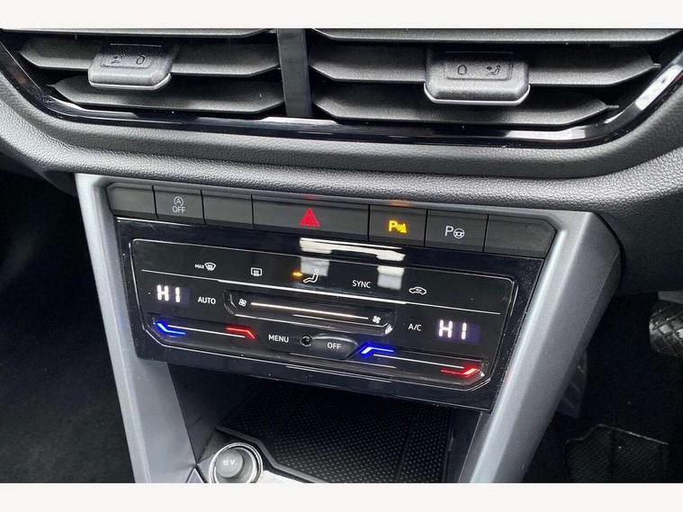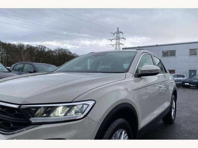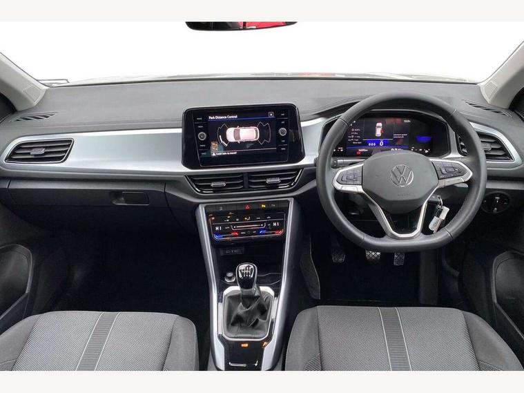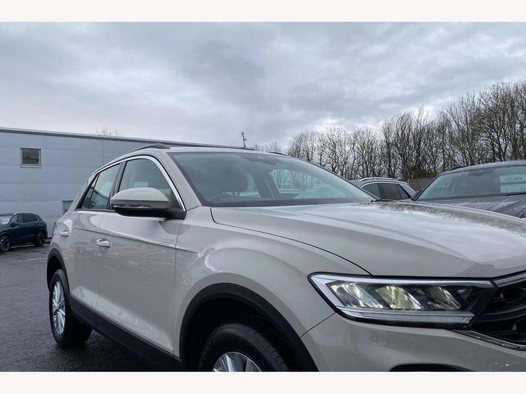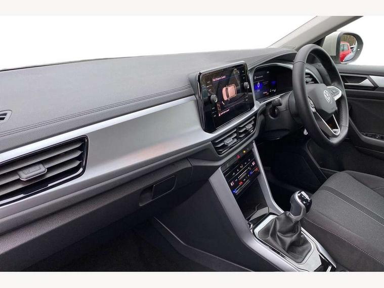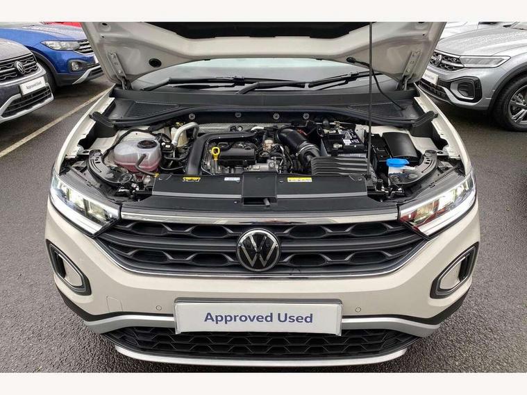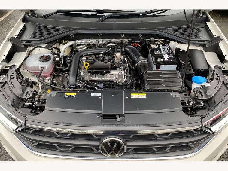 Bluetooth mobile phone interface, Driver alert system with fatigue detection, Driver tips and journey analysis, Emergency call service, Lane keeping system Lane Assist, Modified key software - reduce switch off time for key status change to Long no motion, Online services, Park assist including front and rear parking sensors, Power assisted speed sensitive steering, Service interval indicator, Tailgate/trunk lid release from outside, Think blue trainer driver tips and journey analysis, Warning sound and light for front seatbelts unfastened, Wireless app connect, Battery regeneration during braking, Front shock absorption, Rear shock absorption chassis with increased ride height, Start/stop function with battery regeneration, DAB Digital radio, Diversity antenna for FM reception, Front and rear 6 speakers, Music playback - MP3, WMA and AAC files, Premium USB cable in choice of either Apple or Android smartphone compatibility, SD card slot, Simultaneous pairing of 2 compatible mobile devices, Title and cover art display, We Connect and We Connect Plus functionality, 3rd brake light, Auto dimming interior rear view mirror, Automatic hazard lights activation under emergency braking, Automatic headlight control with LED separate daytime running lights with coming/leaving home function, Black roof rails, Body coloured bumpers and radiator grille with chrome trim and front fog lamps with chrome bezel, Body coloured exterior mirror housings and door handles, Extended roof spoiler, Exterior mirrors aspherical on driver side, convex on front passenger side, External USB type C socket and charging sockets, Front windscreen wiper with intermittent wipe and 4 position delay, Heated rear window, LED Headlights, LED rear combination lamps, LED rear number plate lights, LED tail lamp rear comination lamps, Power windows with comfort operation and circuit breaker, Rain sensor, Rear exhaust tailpipe, Rear fog light on one side and reversing lights on both sides, Rear side wing doors, Rear wash/wipe with intermittent wipe setting, Remote electrically foldable door mirrors, puddle lights and reverse activated passenger's door mirror, 12V power socket in centre console, 3 rear head restraints, 3 seat bench in 2nd row, 4 load lashing points in luggage compartment, Air care climatronic air conditoning system with active combination filter and 2-zone temperature control, Ambient lighting with mirror logo projection, Cloth upholstery, Door and side trim panel in cloth, Drawer under drivers seat, Driver/front passenger seat height adjustment, Front centre armrest, Front comfort sports seats, Front cupholders x 2, Front reading light, Instrument lighting, white adjustable panel illumination, Interior light delay, Isofix child seat preparation, Leather gearshift handle, Load-through provision with cup holder when folded down ('Unsplit rear seat bench, split folding backrest, with centre armrest), Luggage compartment lighting, Lumbar support for driver's and front passengers seat, Non-folding front passenger seat backrest, Single front passenger seat, Storage compartment in left and right luggage area, Storage compartment in rear doors, Storage compartments in driver and front passenger doors, Sunvisors with illuminated vanity mirrors, Variable boot floor, height adjustable and removable, Driver assistance pack without proactive passenger protection - T-Roc, 3 point height adj front seatbelts + pretensioners, 3 point seatbelts in outer rear with ECE label, ABS, Child locks on rear doors, Driver and front passenger airbag with front passenger airbag deactivation, Driver and front passenger safety-optimised head restraints, Drivers seatbelt reminder, Electronic parking brake, Electronic Stability Control (ESC) inc EDL (Electronic Differential Lock) and ASR (Traction Control), Front and rear passengers curtain airbag system including front side airbags, Front assist with city emergency braking and pedestrian monitoring, Front disc brakes, Front seat side impact airbags, Hill start assist, Predictive pedestrian protection, Rear disc brakes, Single tone horn, Tyre pressure loss indicator, Volkswagen roadside assistance, Alarm with interior protection, Anti-theft alarm system with interior monitoring, backup horn, and towing protection, Remote central locking with SAFELOCK, radio remote control with 2 remote control folding keys, Pewter matt decorative inserts for intrument panel, centre console and door panels at the front, Trims for alloy wheels,