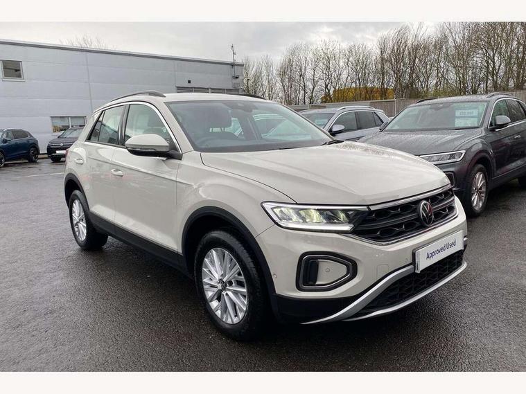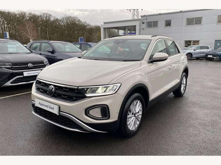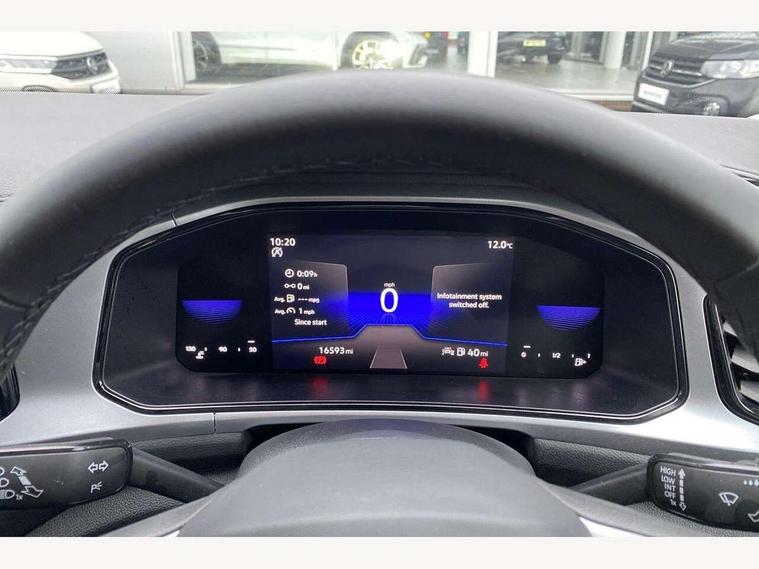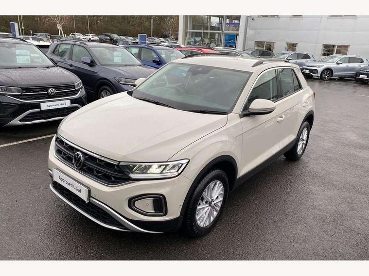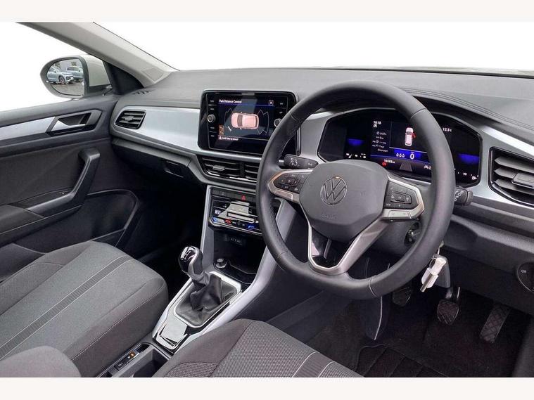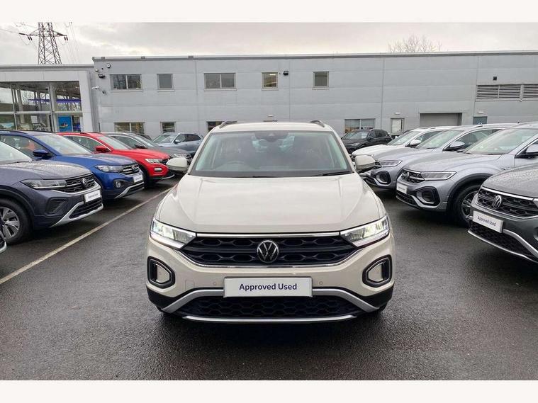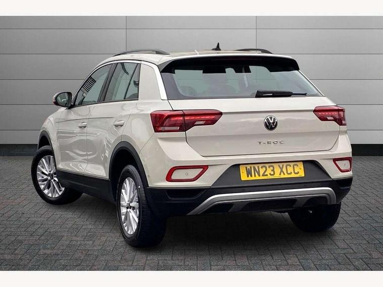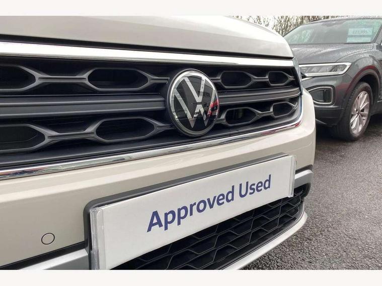 Bluetooth mobile phone interface, Driver alert system with fatigue detection, Driver tips and journey analysis, Emergency call service, Lane keeping system Lane Assist, Modified key software - reduce switch off time for key status change to Long no motion, Online services, Park assist including front and rear parking sensors, Power assisted speed sensitive steering, Service interval indicator, Tailgate/trunk lid release from outside, Think blue trainer driver tips and journey analysis, Warning sound and light for front seatbelts unfastened, Wireless app connect, Battery regeneration during braking, Front shock absorption, Rear shock absorption chassis with increased ride height, Start/stop function with battery regeneration, DAB Digital radio, Diversity antenna for FM reception, Front and rear 6 speakers, Music playback - MP3, WMA and AAC files, Premium USB cable in choice of either Apple or Android smartphone compatibility, SD card slot, Simultaneous pairing of 2 compatible mobile devices, Title and cover art display, We Connect and We Connect Plus functionality, 3rd brake light, Auto dimming interior rear view mirror, Automatic hazard lights activation under emergency braking, Automatic headlight control with LED separate daytime running lights with coming/leaving home function, Black roof rails, Body coloured bumpers and radiator grille with chrome trim and front fog lamps with chrome bezel, Body coloured exterior mirror housings and door handles, Extended roof spoiler, Exterior mirrors aspherical on driver side, convex on front passenger side, External USB type C socket and charging sockets, Front windscreen wiper with intermittent wipe and 4 position delay, Heated rear window, LED Headlights, LED rear combination lamps, LED rear number plate lights, LED tail lamp rear comination lamps, Power windows with comfort operation and circuit breaker, Rain sensor, Rear exhaust tailpipe, Rear fog light on one side and reversing lights on both sides, Rear side wing doors, Rear wash/wipe with intermittent wipe setting, Remote electrically foldable door mirrors, puddle lights and reverse activated passenger's door mirror, 12V power socket in centre console, 3 rear head restraints, 3 seat bench in 2nd row, 4 load lashing points in luggage compartment, Air care climatronic air conditoning system with active combination filter and 2-zone temperature control, Ambient lighting with mirror logo projection, Cloth upholstery, Door and side trim panel in cloth, Drawer under drivers seat, Driver/front passenger seat height adjustment, Front centre armrest, Front comfort sports seats, Front cupholders x 2, Front reading light, Instrument lighting, white adjustable panel illumination, Interior light delay, Isofix child seat preparation, Leather gearshift handle, Load-through provision with cup holder when folded down ('Unsplit rear seat bench, split folding backrest, with centre armrest), Luggage compartment lighting, Lumbar support for driver's and front passengers seat, Non-folding front passenger seat backrest, Single front passenger seat, Storage compartment in left and right luggage area, Storage compartment in rear doors, Storage compartments in driver and front passenger doors, Sunvisors with illuminated vanity mirrors, Variable boot floor, height adjustable and removable, Driver assistance pack without proactive passenger protection - T-Roc, 3 point height adj front seatbelts + pretensioners, 3 point seatbelts in outer rear with ECE label, ABS, Child locks on rear doors, Driver and front passenger airbag with front passenger airbag deactivation, Driver and front passenger safety-optimised head restraints, Drivers seatbelt reminder, Electronic parking brake, Electronic Stability Control (ESC) inc EDL (Electronic Differential Lock) and ASR (Traction Control), Front and rear passengers curtain airbag system including front side airbags, Front assist with city emergency braking and pedestrian monitoring, Front disc brakes, Front seat side impact airbags, Hill start assist, Predictive pedestrian protection, Rear disc brakes, Single tone horn, Tyre pressure loss indicator, Volkswagen roadside assistance, Alarm with interior protection, Anti-theft alarm system with interior monitoring, backup horn, and towing protection, Remote central locking with SAFELOCK, radio remote control with 2 remote control folding keys, Pewter matt decorative inserts for intrument panel, centre console and door panels at the front, Trims for alloy wheels,