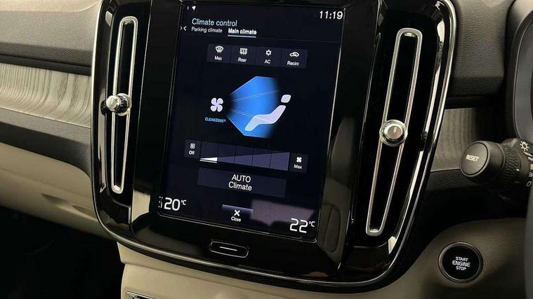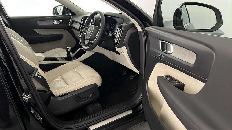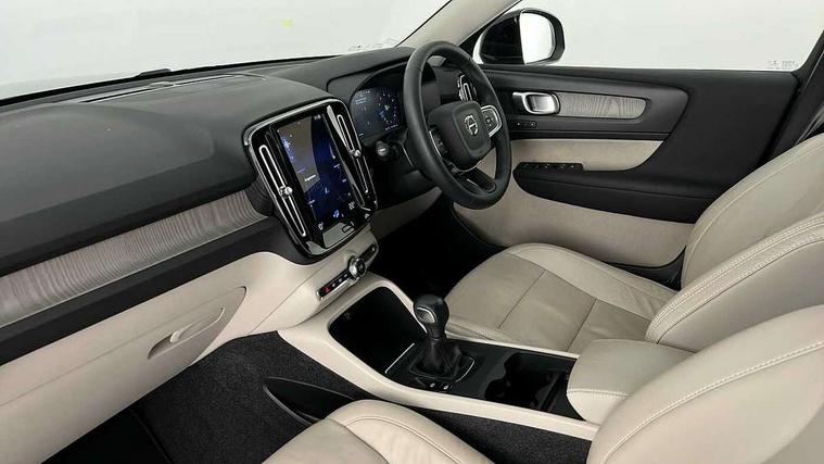 12.3" Active TFT crystal driver's instrument display, 9" centre console portrait touch screen, Adjustable steering wheel force, Bluetooth hands free telephone kit, Drive mode selector, E-call, Lane keep assist with driver alert control, Oncoming Lane Mitigation, Power operated tailgate, Sensus navigation with European mapping and traffic information, Speed limiter, Speed sensitive steering, Voice activated control for key functions, Volvo on call, Dynamic chassis, DAB Digital radio, Steering wheel mounted remote controls, Adaptive brake lights with high level LED brake lights, Auto dimming interior mirror, Automatic headlamp levelling, Chrome window surround, Colour coordinated auto folding and heated power door mirrors, Front aluminium tread plates, Front and rear electric windows, High gloss black front grille with chrome inserts, High gloss black sensus surround deco, High Gloss silver front and rear skid plate, Home safe and approach lighting, Integrated roof rails in silver, LED Headlights + Active high beam incorporating daytime running lights, Rain sensor with automatic windscreen wiper activation, Rear side wing doors, Rear wiper, Roof antenna, Roof spoiler, Visible VIN plate, 12V socket in front tunnel console and luggage compartment, 2 zone electronic climate control and rear air vent, 3 seat bench in 2nd row, 3 Spoke tailored steering wheel with chrome trim, 60/40 versatile split folding rear seat, A-pillar parking ticket holder, Bright metal luggage threshold, Centre console cupholders and storage, Floor mats, Front footwell illumination, Front headrests, Front reading light and theatre lighting, Glovebox bag hook, Height/reach adjustable steering column, Height/tilt adjustable driver's seat, Illuminated glovebox, Illuminated luggage compartment, Illuminated vanity mirrors, Isofix attachments on outer rear seats, Leather faced upholstery, Leather gearknob, Load protection net, Multi directional lumbar support, Power driver seat with memory + exterior mirrors memory, Rear armrest / integral cup holders / storage tray, Rear coat hook, Single front passenger seat, Underfloor cargo storage, Vanity mirror with ticket holder, Park assist pack - XC40, 3x3 point rear seatbelts, City safety includes pedestrian, cyclist and large animal detection and front collision warning with full auto brake, Drivers knee airbag, Dual stage driver/passenger airbags, Electronic parking brake with auto hold, First aid kit, Front and outer rear seatbelt reminder and pretensioners, Front seats SIPS airbags, Hill descent control, Hill start assist, Inflatable curtain, Passenger airbag cut-off device, Road sign information display, Run off Road Mitigation, Run off Road Protection, SIPS (Side Impact Protection System), Slippery road and hazard light alert, Stability and Traction Control with Spin control, Engine Drag Control and Corner Traction Control, Tyre pressure monitoring system, Vehicle deceleration control with Anti-lock Brake System, Electronic Brake Distribution and Emergency Brake Assist, Warning triangle, WHIPS whiplash protection system - front, Anti-theft alarm including immobiliser/volume sensor + level sensor, Care key with user defined top speed, Key integrated remote control central locking + fuel flap with deadlocking system and auto open/close power windows, Locking wheel nuts, Private locking for tailgate, Driftwood inlays,