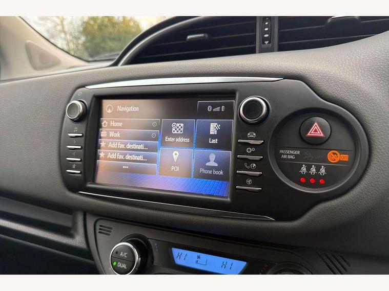 Bluetooth system, Cruise control, External temperature gauge, Fuel indicator with low level warning, Lane departure warning system, Lights on warning, Multi-information display, Power Steering, Push button starter, Rear parking sensor, Rear view camera, Road sign assist - RSA, TFT display screen, Touch 2 Go navigation system, Trip computer, 6 speakers, Auxiliary input socket, DAB Digital radio, Steering wheel mounted audio/telephone controls, Touch 2 touchscreen Radio with iPod connectivity, USB connection, 2 speed front wipers + intermittent wipe, Auto high beam, Auto up and down function on drivers window, Body colour bumpers, Body colour door handles, Body coloured door mirrors, Chrome fog light surround, Daytime running lights, Door mirror integrated indicators, Drivers window one touch up/down, Electric adjustable heated door mirrors, Electric front windows, Follow me home headlights, Front fog lights, Green tinted glass, Heated rear windscreen, Projector headlamps, Rain sensitive windscreen wipers, Rear wiper, Turning signal integrated indicators in door mirrors, 3 spoke leather steering wheel, 60/40 split folding rear seat, Active headrests, Boot light, Cloth upholstery, Driver seat height adjust, Driver/passenger vanity mirrors with covers, Dual zone automatic climate control, Front cupholders x 2, Front map reading lights, Front seats with lumbar support, Glovebox, Height adjustable front head restraints, Height adjustable rear seat head restraints (x3), Isofix system on outer rear seats, Leather gear knob, Leather parking brake handle, Rear cupholder, Removable rear parcel shelf, Sliding front seats, Tilt/telescopic steering column, 3 point seatbelts on all rear seats, ABS+EBD+Brake assist, Collision mitigation braking system, Curtain airbags, Driver and passenger airbags, Drivers knee airbag, Emergency brake light system (EBS), Front passenger airbag on/off switch, Front seatbelt reminder, Front side airbags, Height adjustable front seatbelts with pre-tensioners and load limiters, Hill start assist control (HAC), Passenger airbag deactivate switch, Rear child proof door locks, Rear seat belt reminder, Road sign information display, Seatbelt warning lamp and buzzer, Toyota safety sense including Road sign assist, Pre collision system, auto high beam and lane departure alert), Tyre pressure monitoring system, Vehicle stability control VSC + traction control, Engine immobiliser, Remote central locking, Instrument panel in grey, Space saver spare wheel,