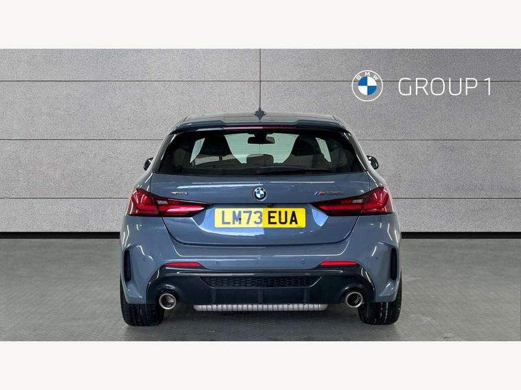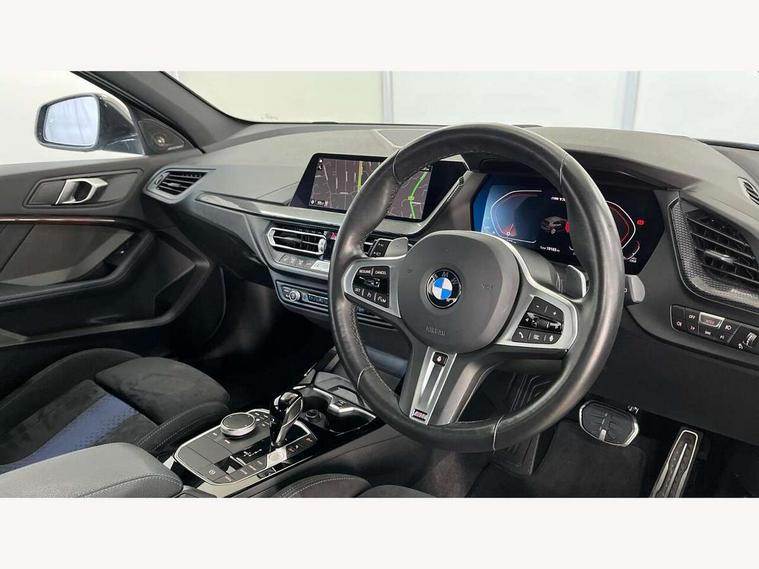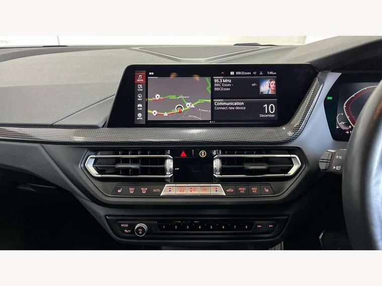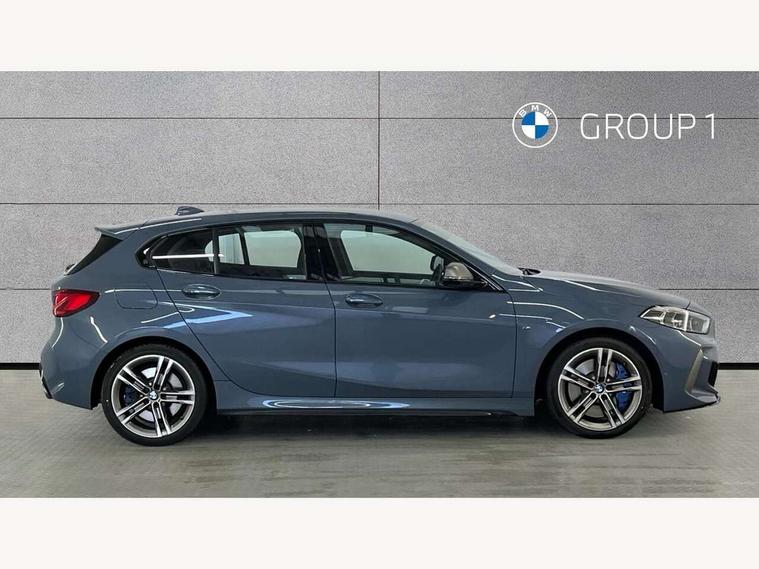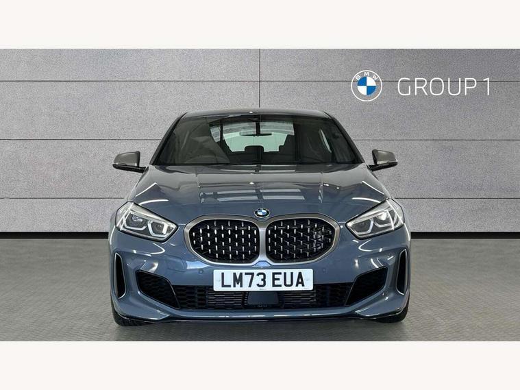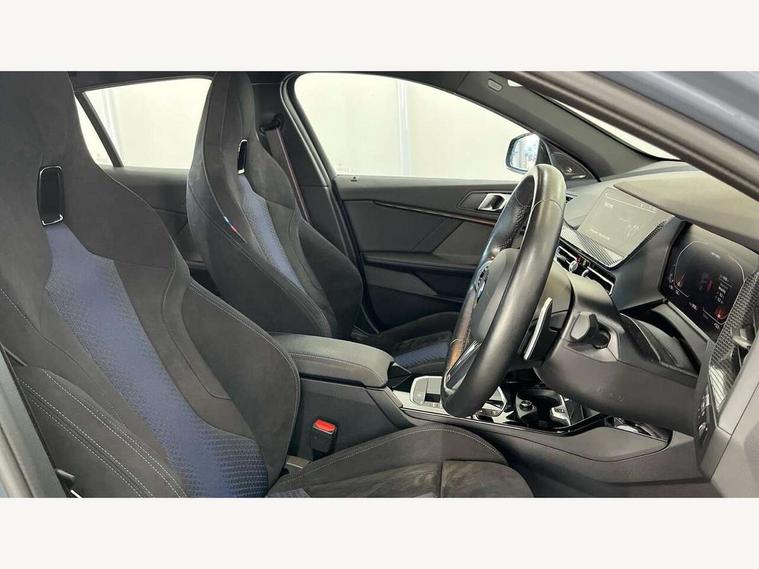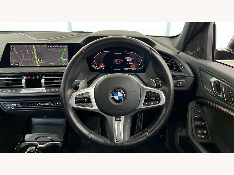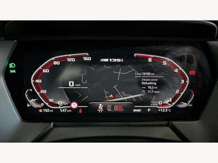 Active guard plus, Attentiveness assist, BMW ConnectedDrive online services, BMW Teleservices, Check Control warning system for monitoring of lights and door/luggage compartment open warning, Cruise control with speed limiter, Eco pro mode, Electric power steering, Electro hydraulically controlled multi-plate clutch transfers drive to rear axle and with power take-off device located on the front differential., Energy efficient operating strategy, Front axle single joint with specific axle kinematics to minimise drive influences on steering + provide increased rigidity agile driving behaviour, Gearshift time display in manual mode, Integrated owners handbook, Lane departure warning system, M Sports steering with M135i xDrive specific settings, Oil sensor for level and grade, On board computer, Optimum shift indicator, Personal Profile, Pull away assistant, Rigidly mounted rear subframe - Multi link construction with separate spring / damper configuration and excellent driving characteristics, Speed limit Info including no-overtaking indicator, Sporty fast gear shifting in sport mode, Aluminium lightweight construction, Anti roll bar front and rear, Balancer shaft, Double VANOS, Drive Performance Control, Eight speed sport automatic transmission with gearshift paddle switches, Electronic differential lock, Electronic selector lever, Engine cover with M performance designation, High precision injection, Larger fuel tank capacity (50 litres), Launch control, M135i specific heavily de-throttled engine intake air guide, M135i specific high-performance cooling package, M135i specific larger turbocharger with integrated divert-air valve, Petrol Particulate Filter, Twin tube gas filled shock absorbers with degressive characteristic curve, VALVETRONIC engine management, Variable, stepless and infinitely adjustable distribution of drive torque between the front and rear axles, xDrive intelligent all wheel drive with M135i specific reinforced components, DAB Digital radio, Auto dimming rear view mirror, Automatic headlight beam throw control, Automatic windscreen wipers and automatic headlight, Body colour door handles, Body colour roof trims, Cerium grey exterior mirror caps, Direction indicator side lights in exterior mirrors, Electrically adjustable exterior mirror with mirror adjustment switch on drivers armrest and aspheric on driver side, convex on passenger side, Exhaust tailpipe, Cerium Grey with bevelled finish - twin, round 100mm, left and right split, Fading support, Folding side mirrors with auto dimming/folding wing mirrors with auto dimming, Follow me home headlights, Front and rear bumper system with replaceable deformation elements, Front and rear electric windows with open and close fingertip control, anti trap facility and comfort closing, Front door sill finishers with M135i designation, Green tinted heat protection glazing, High gloss shadowline window frame, Recess cover mirror frames and B/C pillar embelisher trim, High level third brake light, Integrated front windscreen with washer jets, Kidney grille frame in Cerium Grey with Mesh design, LED daytime running lights, LED eyebrow turn indicators, Lightweight engineering, M logo designation side in cerium grey, M Performance exhaust system with valve control and minimised exhaust back pressure, M Performance specific setup, M Sport spoiler, Matt black air guide grilles, Matt black wheel arch trim, Model designation on electric bootlid includes xDrive designation for M135i xDrive, Nearside reverse light in rear light cluster, Preparation for high beam assistant, Rear fog lights, Rear side wing doors, Rear window wiper, Reinforced crank drive, new pistons and adapted con rods, Shark fin antenna, Trailer stabilisation logic, Visible VIN plate, Welcome lighting, 12V power socket in front centre console with blanking plug, 3 rear seat head restraints, 3 seat bench in 2nd row, 3 spoke sports leather steering wheel with black leather and stitching, pearl chrome decorative finish, specific M Badge, Anthracite headlining, Black boot net with lashing eyes, Cargo function on 2nd seat row, Child seat ISOFIX attachment for two outer rear seats and front passenger seat with anchorage points, Conditioned based service, Driver and front passenger backrest net on rear, Driver and front passenger seat heating, Driver side folding compartment in instrument panel, Folding rear clothes hook, Four grab handles integrated in roof lining, Front and rear door pockets with bottle holders, Front and rear side armrest integrated into door trim, Front armrest, Front M sports seats, Glove compartment, Height adjustable front head restraints, Luggage compartment for bag hooks on left and right, foldable luggage compartment liner and four lashing eyelets, Manual adjust steering wheel, Multi-function controls for steering wheel, Single front passenger seat, Storage compartment in centre console, Storage compartment in luggage compartment, Stowage of the parcel shelf in luggage compartment trim, Sun visors with vanity mirrors and insert tab, Two front centre console cupholders, Two zone automatic air conditioning, Type C two USB ports in rear centre console, Velour floor mats, Additional interior lighting pack - 1 Series M135i, BMW live cockpit professional pack- 1 Series, Connected pack professional - 1 Series, Interior lights pack - 1 Series, M Sport exterior styling aerodynamics pack - 1 Series 135i, 2 tone horn, 3 point seatbelts on all seats, front pyrotechnic belt tensioners, stopper and belt force limiters, rear coded belt buckles, Airbags - Front driver/passenger, front and rear curtain head protection, front side, manual deactivation of front passenger airbag, Anti lock braking system (ABS) with brake assist, BMW emergency call, Brake drying, Braking readiness, Child proof locking system in rear door, City braking function, Comfort modes, Cornering brake control, Crash sensor activating of airbags, Unlocking doors, hazard warning lights, interior light