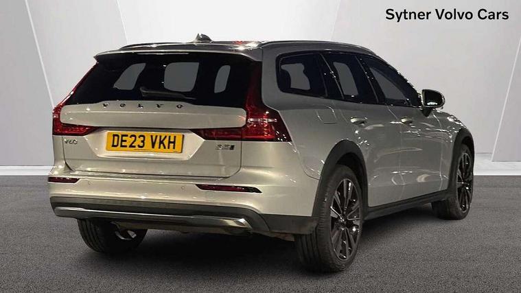12.3" Progressive Driver Display, 9" centre console touch screen, Adjustable steering wheel force, Apple CarPlay, Bluetooth handsfree system, Cruise control, Driver alert control with lane keeping aid, Driver awareness - Blind spot information system with steer assist, cross traffic alert with autobrake and rear collision warning and mitigation, E-call, Emergency and breakdown call function, Front and rear park assist, Google automotive services - Enabled entertainment apps, navigation with google maps, voice recognition with google assistant, Handsfree tailgate opening/closing, Information centre, Oncoming Lane Mitigation, Rear park assist camera, Service interval indicator, Speed limiter, Speed sensitive steering, Trip computer, Volvo cars services with app, Volvo on call app, Wireless/Inductive Mobile Phone Charging, Automatic transmission with start/stop and manual change functions, Touring chassis with 60mm additional ground clearance, DAB Digital radio, High performance sound, 2 x front and rear Type C USB, 10 speakers/220W output, Steering wheel remote infotainment controls, Adaptive brake lights with high level LED brake lights, Auto dimming interior + exterior mirrors, Automatic headlight levelling system, Automatic LED Headlights + Active high beam incorporating daytime running lights, Body colour bumpers, Bootlid/tailgate illumination, Charcoal lower front grille, wheel extensions and sill mouldings, Colour coordinated auto folding and heated power door mirrors, Cross Country embossed rear bumper, Front aluminium tread plates, Front and rear power windows, Heated front windscreen, High gloss black window surround, Home safe and approach lighting, Integrated roof rails in silver, LED front fog lights, Matt black front grille with chrome details, Puddle lights, Rain sensor with automatic windscreen wiper activation, Rear side wing doors, Rear wiper, Roof antenna, Roof spoiler, Variable front intermittent wipers, Visible VIN plate, 12V socket in front tunnel console and luggage compartment, 4 zone electronic climate control with Clean zone air quality system + pollen filter, 60/40 versatile split folding 3 bench rear seats in 2nd row, A-pillar parking ticket holder, Advanced interior air cleaner PM2.5, B Pillar ventilation, Bright metal luggage compartment threshold, Centre console storage, Charcoal carpets and floor mats, Extended front seat cushions, Flexible load floor and grocery bag holder, Front and rear courtesy and front reading lights, Front cupholders, Front footwell illumination, Front head restraints, Front passenger seat electric height adjust, Front/rear door pockets and front cupholder illumination, Glovebox compartment with illumination, Heated front seats, Heated rear seats outer positions, Heated steering wheel, Height/reach adjustable steering column, Illuminated vanity mirrors + ticket holder, ISOFIX attachment on outer rear seats, Load cover, Load protection net, Luggage compartment illumination, Luggage compartment load hooks, Multi directional lumbar support, Power driver seat with memory + exterior mirrors memory, Power folding rear headrests, Rear armrest with cupholder, Rear footwell and front and rear side step illumination, Rear reading lights, Single front passenger seat, Underfloor cargo storage, 5 x 3 point seatbelts, City safety with steering support with Pedestrian + cyclist + front collision warning with full auto brake and rear auto brake, Dual stage driver/passenger airbags, First aid kit, Front seats SIPS airbags, Hill descent control - Off-road drive mode, Hill start assist, IC (Inflatable Curtains) - Full Length, Passenger airbag cut-off switch, Power child locks on rear doors, Power parking brake with auto hold function, Road sign information display, Run off Road Mitigation, Run off Road Protection, Seatbelt reminder and pretensioners for all seats, SIPS (Side Impact Protection System), Slippery road and hazard light alert, Stability and Traction Control with Spin control, Engine Drag Control and Corner Traction Control, Tyre pressure monitoring system, Vehicle deceleration control with Anti-lock Brake System, Electronic Brake Distribution and Emergency Brake Assist, Warning triangle, WHIPS whiplash protection system - front, Anti-theft alarm including immobiliser/volume sensor + level sensor, Care key with user defined top speed, Key integrated remote control central locking + fuel flap with deadlocking system and auto open/close power windows, Keyless drive includes keyless entry and keyless start, Locking wheel nuts, Private locking luggage compartment,