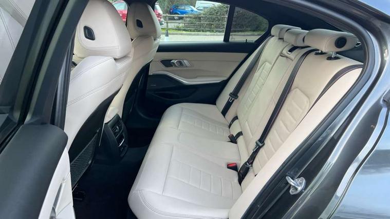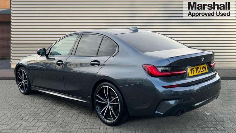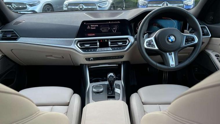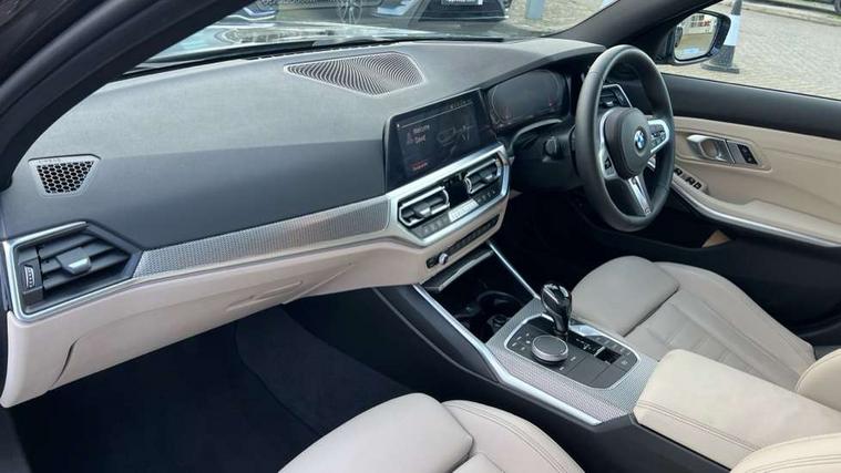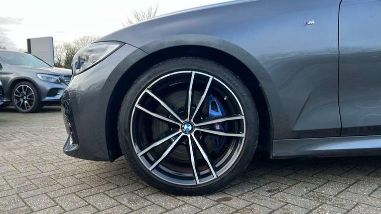 Active guard plus, Attentiveness assist, Auto start-stop, BMW iDrive controller on centre console, BMW Live Cockpit Professional Nav with 12.3" instrument display + 10.25" display, Intelligent Voice Assist, BMW OS 7, HDD, 2USB, 4G LTE connect, BMW service history, BMW Teleservices, Brake pad wear indicator in front and rear, Check Control warning system for monitoring of lights and door/luggage compartment open warning, Condition based service, Electric power steering with Servotronic steering optimised at all speed ranges, Instrument cluster with speedometer with mph readout, tachometer, fuel gauge and oil temperature gauge, Integrated owners handbook, Oil sensor for level and grade, warning by check control system, On board computer - average speed+fuel consumption, service interval, clock/date, odometer/trip meter, outside temperature display and ice warning, Optimum shift indicator, Personal Profile - automatic lock when driving away selectable, Variable sport steering, Balanced 50/50 weight distribution, Battery cut-out switch, Drive performance control - ECO PRO, comfort and sport modes, Larger capacity fuel tank, M sport suspension, Petrol Particulate Filter, Sport automatic transmission with steering-wheel mounted gearshift paddles and launch control, Stroke dependent dampers, DAB tuner, Electronic service booklet, Acoustic glazing, Automatic headlight beam throw control with load dependent regulating reaction, dynamic compensation of braking dive and acceleration squat, Black roof mouldings, Body colour door handles, Body colour fuel filler flap, Body colour mirror caps, Dynamic brake lights, Electric windows - front and rear, with open/close fingertip control, anti-trap facility and comfort closing, Exhaust tailpipe - split left and right, Exterior mirrors - electrically folding with anti-dazzle, Fading support, Front and rear bumper system with replaceable deformation elements, Front black door sill finishers with BMW designation, Green tinted heat protection glazing, High gloss shadow line exterior trim, Interior rear view electrochromatic mirror with automatic anti dazzle function, LED daytime running lights, LED front fog lights, Lightweight engineering, M designation on front side panels, left and right, Matt black exterior B pillar, Model designation on right side of tailgate, Rain sensor with automatic headlight activation, Shark fin antenna, Two part LED tailights in L-shape with components in smoked glass, brake light, LED turn indicator and rear fog light, Visible VIN plate, Welcome lights in interior and door handle area, Windscreen wipers with integrated washing jets, 12V power socket in front storage compartment, 2 front cupholder in centre console with clamping elements and matt black inlay, 3 rear seats with non folding headrests with 3 point seat belts, 3 zone automatic air conditioning, 4 pieces lashing eyelets in luggage compartment, 40:20:40 split folding rear seat with loading system, Ambient lighting with welcome carpet light, Anthracite headlining, Armrest integrated in front and rear door trim + front centre console armrest, Centred top Luggage compartment lights, Four grab handles integrated in roof lining, Front and rear door exit lighting (left / right), Front and rear door pockets, Front and rear reading lights, Front and rear velour floor mats, Front head restraints, Front sport seats, Heated driver and front passenger seats, Height adjustable mechanically and infinitely variable steering column, Illuminated armrest storage compartment, Illuminated glove compartment with separate small compartment, Interior lighting - front centre over interior mirror with soft light, rear centre and front and rear footwell lighting, M Sport multifunction leather steering wheel, Make-up mirror lights, Rear centre armrest with 2 cupholders, Rear centre console with storage compartment and ventilation grille, Sunvisors with vanity mirrors and ticket pocket, Toolkit located in luggage compartment, Connected pack professional - 3 Series Saloon/Touring, M Aerodynamics pack - 3 Series Saloon/Touring, 2 tone horn, BMW emergency call, Brake energy regeneration, Braking pre-tensioning, Child proof locking system in rear door, Child seat ISOFIX attachment rear outer seats, Coasting in idle in ECO PRO mode, Crash sensor activating of airbags, Unlocking doors, hazard warning lights, interior light, safety battery terminal, Driver and front passenger side airbags, integrated in the door side seat backrest bolsters for all seat variants, Driver/Front Passenger airbags, Dry braking, Dynamic brake control, Dynamic stability control + (DSC+) - Anti-lock Braking System (ABS) with brake assist and cornering brake control + Automatic Stability Control (ASC), Dynamic Traction Control - DTC, Electric parking brake including automatic hold function and automatic release of the parking brake when driving off, Electronic differential lock control (EDLC), Front passenger manual airbag deactivation, Head airbags for all 4 outer seats, Hill start assist, Seat belt security check for driver and front passenger, Side impact protection, Three 3 point seat belts on all seats including front belt stopper, pyrotechnic belt tensioners and belt force limiters, Tyre pressure monitoring with three level warning strategy, Ventilated front and rear disc brakes, Warning triangle and first aid kit, Alarm system (Thatcham 1) with remote control and electronic engine immobiliser, Central locking switch for all doors, fuel filler cap and luggage compartment, Remote control with integrated key one button open/close vehicle and windows, sole opening of the luggage compartment lid and panic mode, Start/stop button with Comfort Go keyless engine start and auto Start/stop deactivation button, Vehicle key with M specific designation, Reduced rolling resistance tyres,