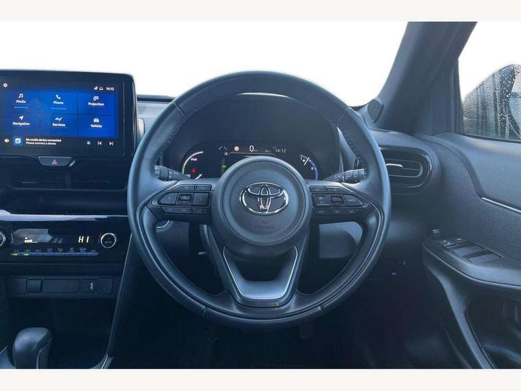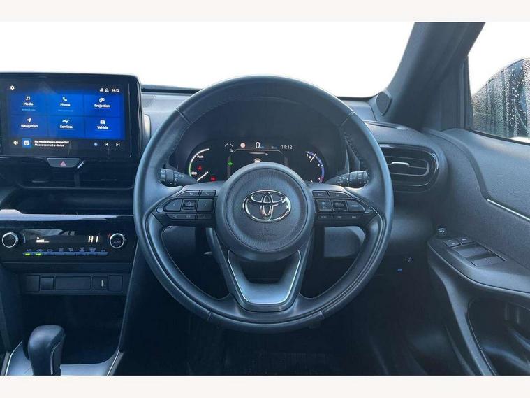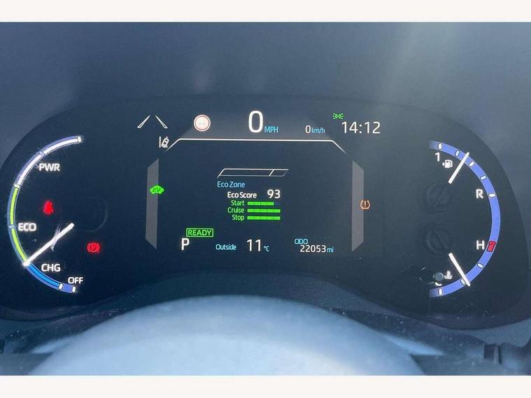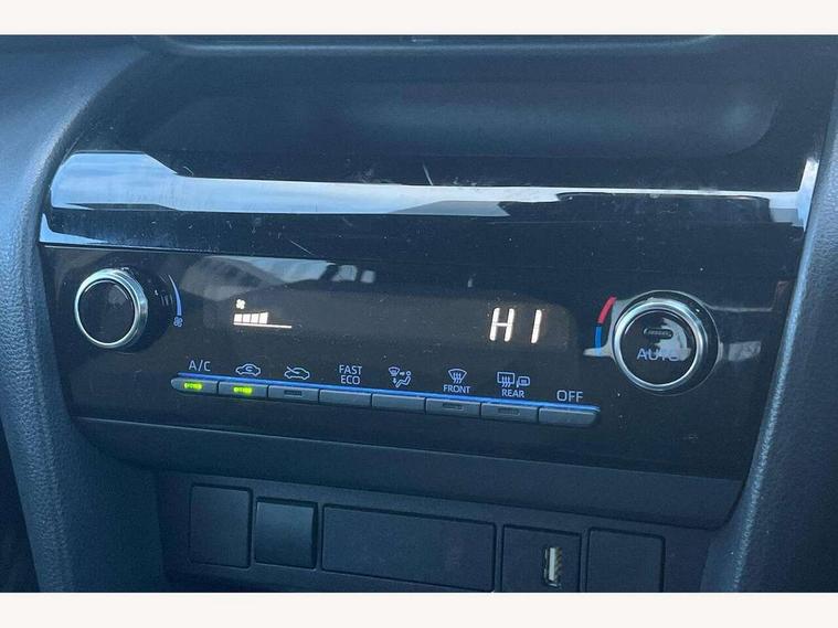 7" Multi information display screen, 8" Toyota touch 2 multimedia system with Smartphone integration with Apple CarPlay and Android auto, Adjustable speed limiter, Bluetooth connectivity, Driver attention alert system, eCall emergency system, Electric power steering, Full range intelligent adaptive cruise control, Hybrid system indicator, Key reminder warning, Lane trace assist, Multimedia, audio, telephone and voice recognition switches on steering wheel, My T Connected services, Pre-collision system enhanced with emergency steering assist, Reversing camera, Road sign assist - RSA, Steering assisted vehicle stability control, 6 speakers, DAB Digital radio, USB connection, 3rd brake light, Acoustic windscreen glass, Aluminium roof rails, Anti-jam protection on power windows, Auto high beam [AHB] with on/off switch, Automatic headlights, Black lower front grille, Black Shark-fin antenna, Black upper front grille, Black wheel arch mouldings, Body colour door handles, Body colour front bumper, Body colour rear bumper, Electric adjustable heated door mirrors, Follow me home headlights, Front and rear electric windows with auto up/down function, Front intermittent wipers, Headlight cut off reminder, Indicators integrated on door mirrors, Intermittent rear wiper, LED daytime running lights guide, LED front fog lights, LED front light guide, LED Indicators, LED projector headlights, LED rear light guide, Manual headlight levelling, Manually retractable door mirrors, Noise reduction layer on windscreen, Privacy glass, Rain sensor, Rear LED lights with sequential indicators, Rear side wing doors, Rear spoiler, Rear window defogger, 12v power outlet - front, 2x Rear coat hooks, 3 seat bench in 2nd row, 3 spoke leather steering wheel, 40:20:40 split folding rear bench seat, Adjustable speed limiter switch on steering wheel, Auto air conditioning, Black roof lining, Boot light, Central armrest, Centre console in light blue ambent lighting, Driver and front passenger personal lights, Fabric door trim, Fabric upholstery, Footwell in light blue ambient lighting, Front console box, Front cup holders, Front head restraints, Glovebox, Height adjustable driver's seat, Height adjustable front passenger seat, Hooks for luggage holding belts, ISOFIX child restraint system, Lane departure alert switch on steering control, Leather gearshift, Light blue ambient lighting on front doors, Manual telescopic and tilting steering wheel, Mirror on driver and passenger sun visor, Pollen air filter, Rear cup holders, Rear head restraints, Single front passenger seat, Soft tonneau cover, 3x3 point rear seat belts, ABS+EBD+Brake assist, Driver and passenger central airbags, Driver and passenger front airbags, Driver and passenger side airbags, Electronic parking brake, Emergency brake light system (EBS), Front seat belt reminder, Hill start assist control (HAC), Passenger airbag on/off switch, Pre-collision system with pedestrian and cyclist detection, Rear door child safety locks, Rear passenger side airbags, Rear seat belt reminder, Traction control, Tyre pressure warning system, Immobiliser, Intrusion alarm, Keyless smart entry with push button start, Power door locks, Power passenger window lock, Remote door lock, Tyre repair kit,