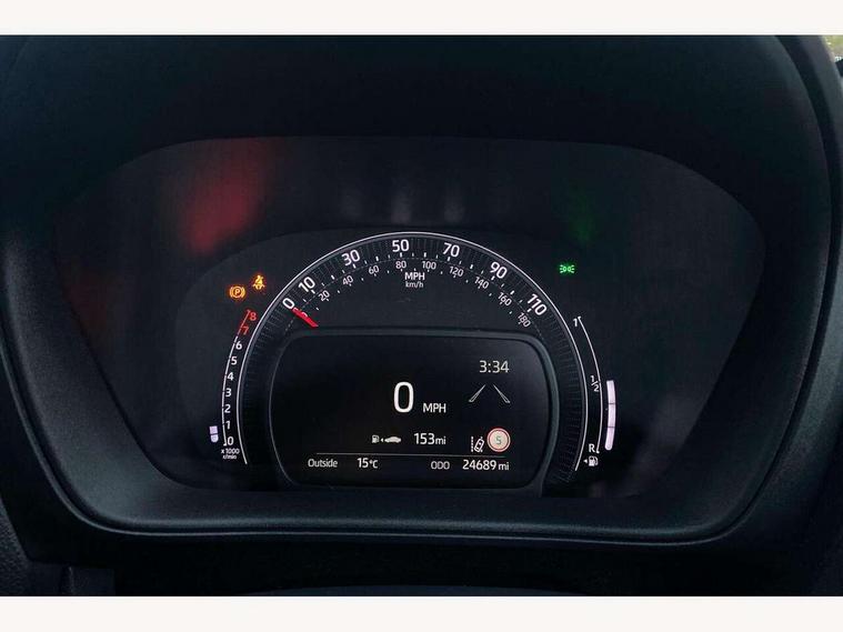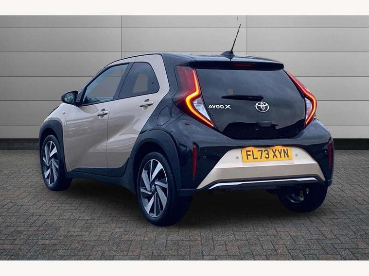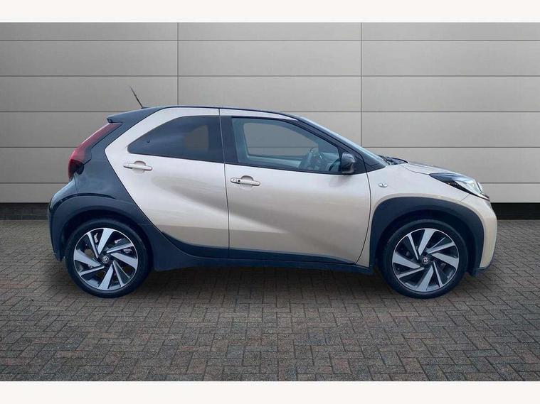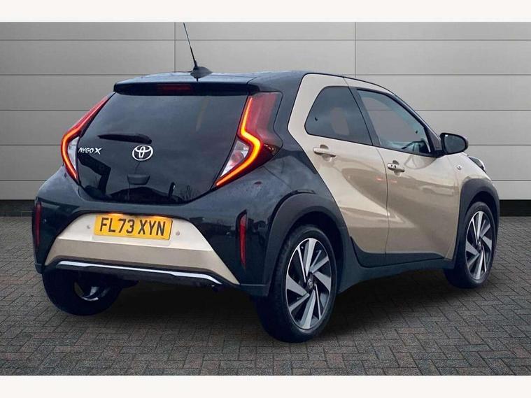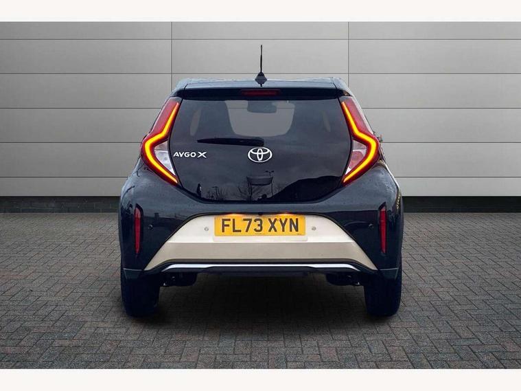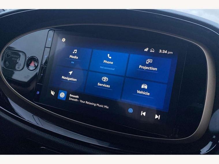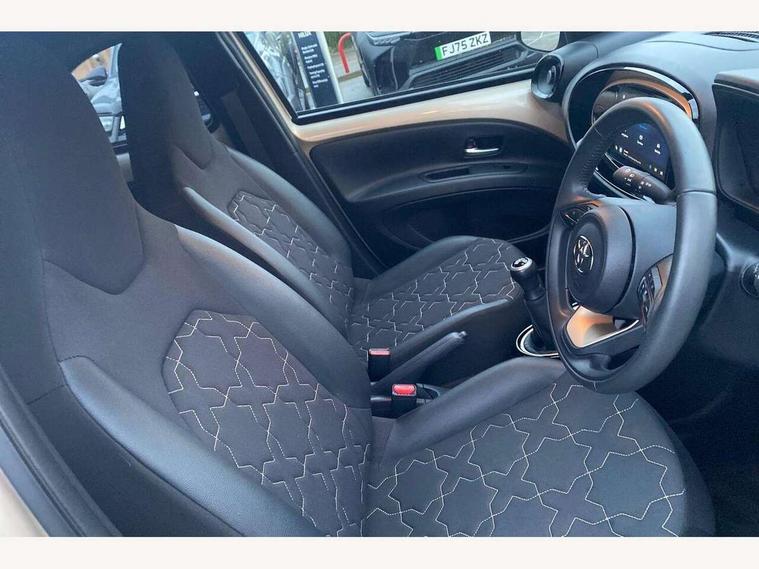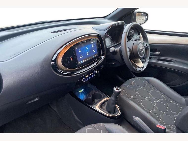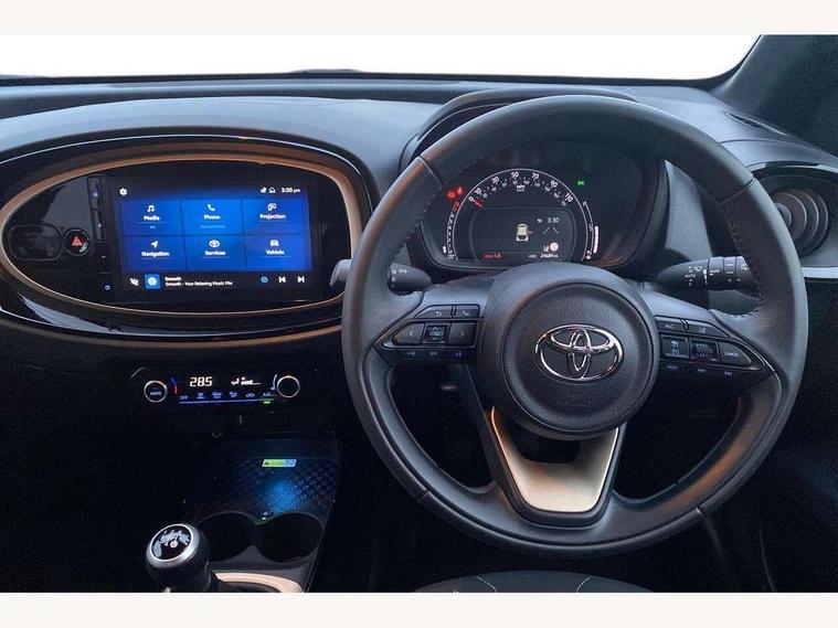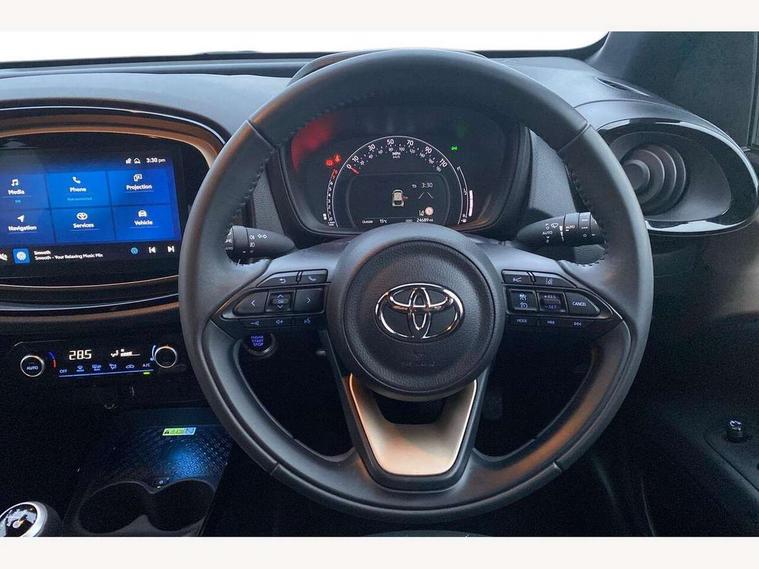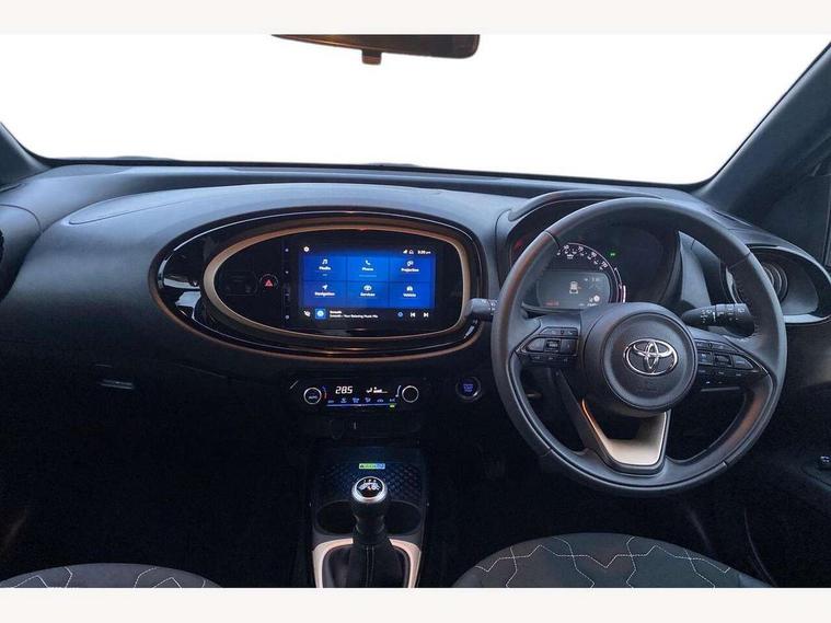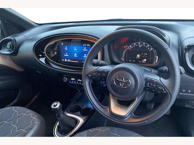 4.2" TFT colour screen, Adjustable speed limiter, Analogue speedometer, Bluetooth connectivity, Digital tachograph, Driver attention alert system, eCall emergency call system, Electric power steering, Front and rear parking sensors with auto brake, Intersection turn assist, Key reminder warning, Noise reduction kit, Pre collision system with emergency steering assist, Remote boot door release on key, Reversing camera with static guide lines, Smart entry and push button start, Speed limit display, Start and stop, Wireless charger, Wireless Smartphone Integration includes Apple CarPlay and Android auto, Vehicle Stability Control (VSC), 4 speakers, 9" HD multimedia display touch screen with Toyota smart connect, DAB digital audio broadcast, USB connector, Auto headlights, Auto wipers, Automatic headlights cut-off, Automatic high beam On/Off switch, Bicycle towing hook, Black fog light surrounds, Black side protection mouldings, Black wheel arch mouldings, Body colour door handles, Body coloured front bumper, Boot door scuff plate, Eclipse black rear bumper, Electric heated door mirrors, Follow me home headlights, Front and rear underruns in silver, Front fog lights, Front power windows, Gloss black door mirrors, Gloss black upper front grille, Headlight cut-off reminder, LED daytime running lights guide, LED front light guide, LED High mounted stop lamp, LED projector headlights, Manual day/night rear view mirror, Manual headlight levelling, Pagoda roof, Power adjustable door mirrors, Power back door, Privacy glass, Rain sensor, Rear combination lights LED bulb type, Rear side wing doors, Rear windscreen defogger, Rear windscreen wiper, Remote hazard lights system, Short antenna, Variable intermittent windscreen wipers, 12v power outlet - front, 2 seat bench in 2nd row, 3 spoke leather steering wheel, 50/50 split folding rear seat, Adhesive roof headlining, Adjustable speed limiter switch on steering wheel, Audio and telephone switches on steering wheel, Auto air conditioning, Black roof lining, Body colour satin anodised insert on steering wheel, Boot light, Centre room light, Chrome interior door handles, Chrome surround on air conditioning buttons, Clean air filter, Console box storage, Floor mats, Front and rear cup holders, Front head rest deco art, Front head restraints, Height adjustable driver seat, Intelligent adaptive cruise control switch on steering wheel, ISOFIX child restraint system on rear seats, Lane departure alert switch on steering wheel, Leather gearshift knob, Light blue ambient lighting in centre console, Manual tilt steering wheel, Manually reclining and sliding driver seat, Manually reclining and sliding front passenger seat, Multimedia switches on steering wheel, Partial synthetic leather upholstery, Pollen filter, Rear door pockets, Rear head restraints, Satin silver insert on gear shift knob, Single compartment glovebox with lights, Single front passenger seat, Soft tonneau cover, Sun visors with mirror on driver and passenger side, Voice recognition switch on steering wheel, Toyota safety sense pack - Aygo X, Anti lock braking system + Electronic brake force distribution, Child safety door lock, Emergency brake light signal (EBS), Hill start assist control (HAC), Passenger airbag on/off switch, Seat belt reminder for front and rear seats, Supplement restraints system (SRS) - 6 airbags, Traction control, Tyre pressure warning system, Immobiliser, Remote power door locks, Black wheel centre caps, Tyre repair kit,