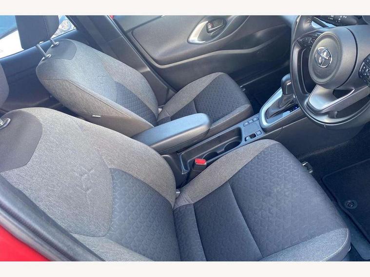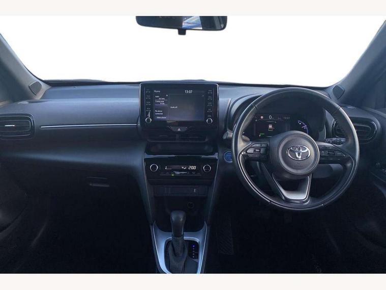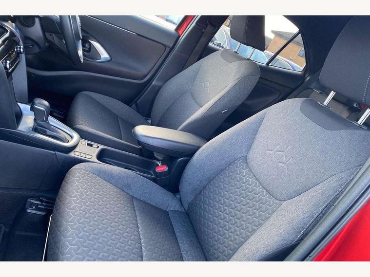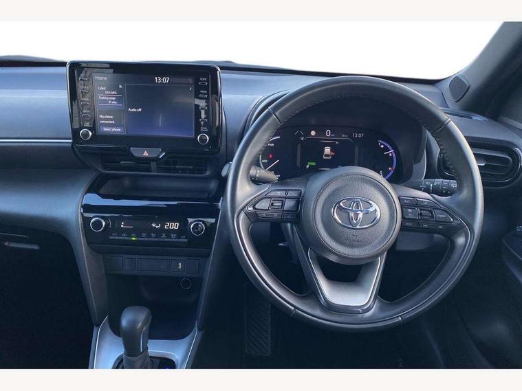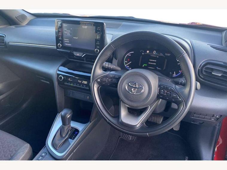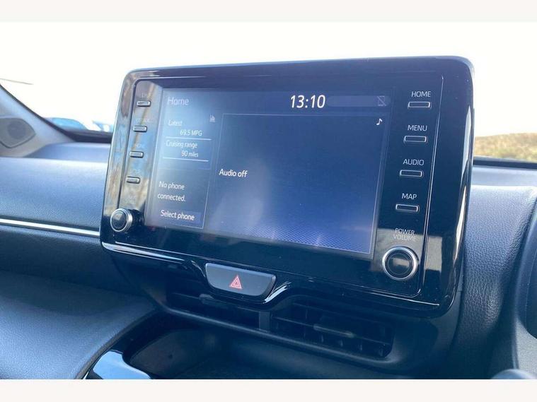 7" Multi information display screen, 8" Toyota touch 2 multimedia system with Smartphone integration with Apple CarPlay and Android auto, Adjustable speed limiter, Bluetooth connectivity, Driver attention alert system, eCall emergency system, Electric power steering, Full range intelligent adaptive cruise control, Hybrid system indicator, Key reminder warning, Lane trace assist, Multimedia, audio, telephone and voice recognition switches on steering wheel, My T Connected services, Pre-collision system enhanced with emergency steering assist, Reversing camera, Road sign assist - RSA, Steering assisted vehicle stability control, 6 speakers, DAB Digital radio, USB connection, 3rd brake light, Acoustic windscreen glass, Aluminium roof rails, Anti-jam protection on power windows, Auto high beam [AHB] with on/off switch, Automatic headlights, Black lower front grille, Black Shark-fin antenna, Black upper front grille, Black wheel arch mouldings, Body colour door handles, Body colour front bumper, Body colour rear bumper, Electric adjustable heated door mirrors, Follow me home headlights, Front and rear electric windows with auto up/down function, Front intermittent wipers, Headlight cut off reminder, Indicators integrated on door mirrors, Intermittent rear wiper, LED daytime running lights guide, LED front fog lights, LED front light guide, LED Indicators, LED projector headlights, LED rear light guide, Manual headlight levelling, Manually retractable door mirrors, Noise reduction layer on windscreen, Privacy glass, Rain sensor, Rear LED lights with sequential indicators, Rear side wing doors, Rear spoiler, Rear window defogger, 12v power outlet - front, 2x Rear coat hooks, 3 seat bench in 2nd row, 3 spoke leather steering wheel, 40:20:40 split folding rear bench seat, Adjustable speed limiter switch on steering wheel, Auto air conditioning, Black roof lining, Boot light, Central armrest, Centre console in light blue ambent lighting, Driver and front passenger personal lights, Fabric door trim, Fabric upholstery, Footwell in light blue ambient lighting, Front console box, Front cup holders, Front head restraints, Glovebox, Height adjustable driver's seat, Height adjustable front passenger seat, Hooks for luggage holding belts, ISOFIX child restraint system, Lane departure alert switch on steering control, Leather gearshift, Light blue ambient lighting on front doors, Manual telescopic and tilting steering wheel, Mirror on driver and passenger sun visor, Pollen air filter, Rear cup holders, Rear head restraints, Single front passenger seat, Soft tonneau cover, 3x3 point rear seat belts, ABS+EBD+Brake assist, Driver and passenger central airbags, Driver and passenger front airbags, Driver and passenger side airbags, Electronic parking brake, Emergency brake light system (EBS), Front seat belt reminder, Hill start assist control (HAC), Passenger airbag on/off switch, Pre-collision system with pedestrian and cyclist detection, Rear door child safety locks, Rear passenger side airbags, Rear seat belt reminder, Traction control, Tyre pressure warning system, Immobiliser, Intrusion alarm, Keyless smart entry with push button start, Power door locks, Power passenger window lock, Remote door lock, Tyre repair kit,