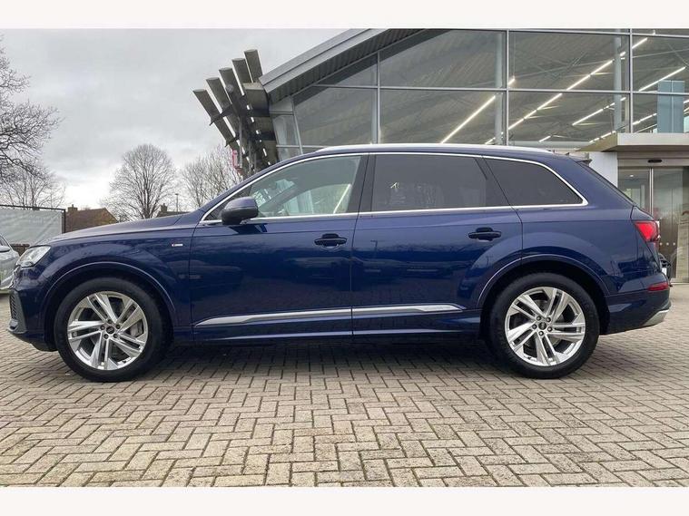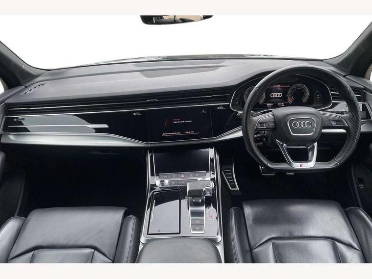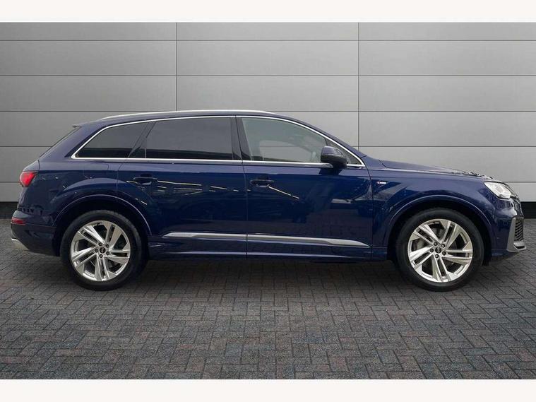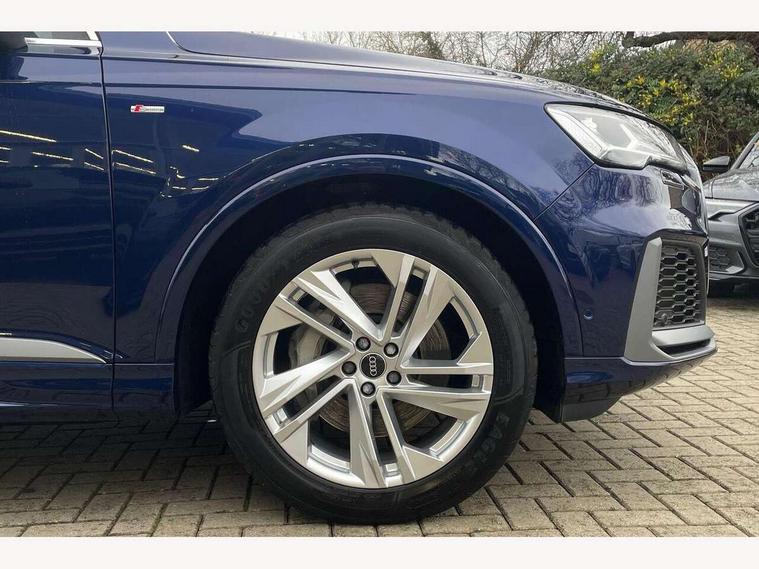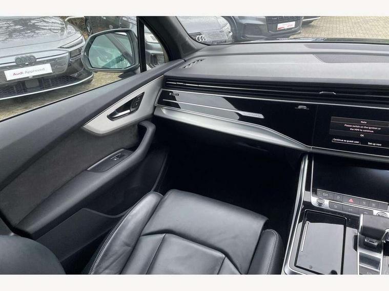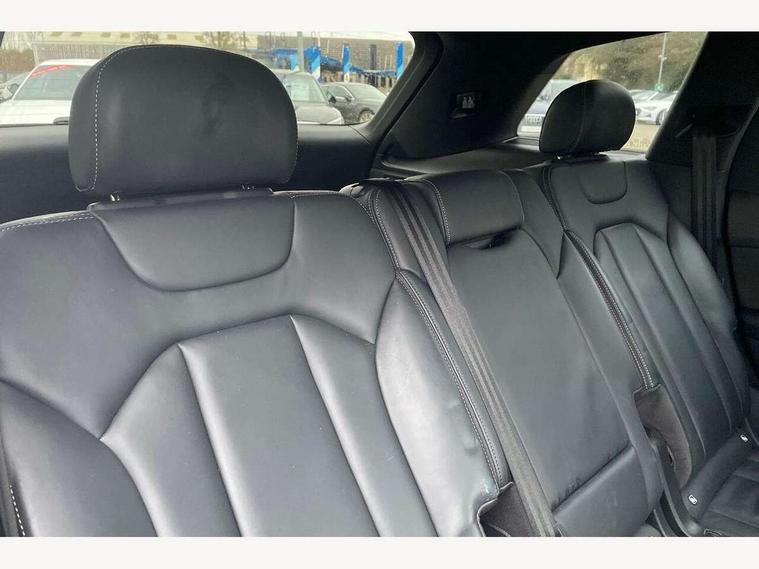 Audi connect safety and service (e-call), Audi connect with Amazon Alexa Integration, Audi drive select (Auto, Comfort, Dynamic, Efficiency, Individual, Off-road and All road), Bluetooth interface, Camera based traffic sign recognition, Electromechanical steering, MMI navigation plus with MMI touch screens includes 10.1" and 8.6" screens with haptic feedback, Natural voice recognition, Parking system plus with 360 degree display (front, rear and side sensors) - acoustic and visual park assist system, Power operated tailgate, Rear view camera, Smartphone interface includes wireless Apple carplay/Android Auto, Start/stop system, 48V Mild hybrid technology, 85 litre fuel tank, Adaptive air suspension, Quattro all wheel drive with self locking centre differential, Audi music interface - front 2 USB-C ports with charger and data functions, Audi sound system with 6 channel amplifier, 180 watt amplifying capacity and 10 loudspeakers including subwoofer, DAB digital radio module, 3rd brake light, Aluminium roof rails, Aluminium window trim, Audi matrix LED headlights with dynamic front and rear indicators, Auto dimming frameless rear view mirror, Body coloured door mirrors, Electrically adj heated/folding + automatically dimming exterior mirrors with memory + automatic kerb side function for passenger side exterior mirror, Heat insulating glass in windshield, Integrated LED indications in door mirrors, LED daytime running lights, LED rear tail lights, Privacy glass - dark tinted rear and rear side windows from B-pillar backwards, Rear side wing doors, Rear wiper, S Line badge on wings, S line bumpers in full body colour paint finish, S line roof spoiler, S line styling side ventilation grilles and side skirts, 2 seat bench in 3rd row, 2 zone automatic climate control, 3 seat bench in 2nd row, 7 seat layout with ISOFIX points for the front passenger seat and rear passenger seat, Black cloth headlining, Comfort front centre armrest, Electric adjustable front seat with 4 way lumbar support, driver memory functionality, Folding rear seats, Front head restraints, Front/rear floor mats, Heated front seats, Illuminated door sill trims with S logo, LED interior ambient lighting, Luggage compartment cover, Luggage compartment sill protection in stainless steel, Rear head restraints, Single front passenger seat, Stainless steel pedals, Sunvisors with illuminated vanity mirrors, 3 point seatbelts on all rear seats, Audi pre sense front, Child locks on rear doors, Driver and front passenger, front side and curtain airbags, Electromechanical parking brake, Electronic Stabilisation Control (ESC) including ABS, ASR and EDL, Extended pedestrian protection measures, Hill hold assist, Seatbelt monitoring, Tyre pressure loss indicator, Warning triangle and first aid kit, Anti theft alarm, Anti-theft wheel bolts and wheel loosening detection, Keyless Go, Remote central locking, Darkened matt brushed aluminium inlays, Tool kit, Tyre repair kit,