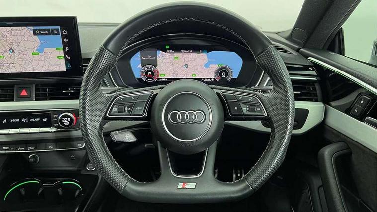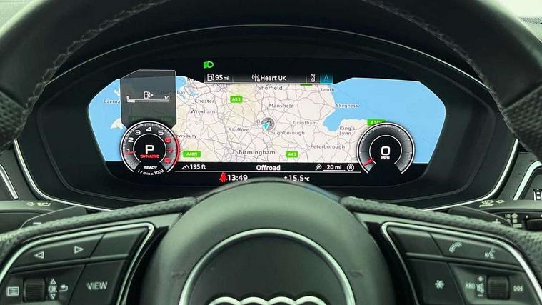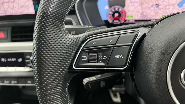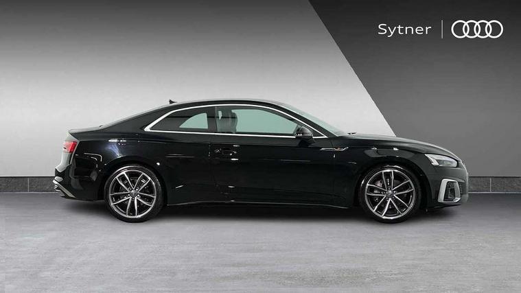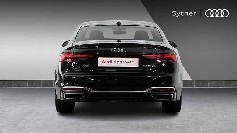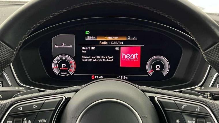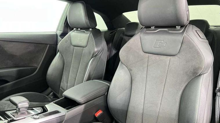 Audi connect safety and service (e-call), Audi connect with Amazon Alexa Integration, Audi drive select (Auto, Comfort, Dynamic, Efficiency and Individual), Audi parking system plus with front and rear sensors, Audi phone box with wireless charging, Audi smartphone interface, Audi virtual cockpit - 12.3" full colour digital instrument cluster, vehicle/engine speed, 3D navi map, Radio/media information+Driver assistance systems, Automatic start-stop system with coasting functionality and efficiency programme, Bluetooth interface, Electric boot lid release, Electro-mechanical power steering, Email, calendar and text messages displayed via MMI, MMI nav+ with MMI touch - 10.1" high resolution MMI display, touch sensitive, 3D map, route/country info, dynamic route guide, personal route assist, Rear view camera, Service interval indicator, Voice control system, Sports suspension lowered by 23mm, 8 passive loudspeakers, CD player, DAB digital radio reception, Two additional USB ports for rear passenger in rear centre console, Two SDXC card slots, Audi matrix LED headlights with LED rear lights + dynamic front and rear indicators, Auto dimming rear view mirror, Body colour bumpers, Body colour door handles, Body colour front spoiler lip, Body colour side sill trim, Body coloured door mirrors, Electric adjustable heated door mirrors, Electric folding door mirrors, Electric front windows, Front fog lights, Honeycomb structure radiator grille in grained matt black, LED daytime running lights, Matt aluminium silver tailpipe trim, Privacy glass, Rain and light sensors, S line badges on front wings, S line front and rear bumpers with side skirts, S Line rear diffuser in matt titanium black with trim strip in matt aluminium silver, Side air inlets in grained matt black with matt aluminium silver inlay, Windscreen with acoustic glazing, 4 way electric lumbar support for driver and front passenger, 40/20/40 split folding 2 seater rear seat bench with rear centre armrest, Adjustable steering column, Black cloth headlining, Black perforated leather gearknob, Contrast stitching on seats, steering wheel and gear lever gaiter, Deluxe 3 zone electronic climate control, Front centre armrest, Front head restraints, Front/rear floor mats, Heated front seats, Illuminated door sill trim with S logo, ISOFIX child seat mounting and top tether, Luggage compartment mat, Manual seat adjustment, Rear headrests, Stainless steel pedals, Sunvisors with vanity mirrors, Tool kit, LED interior light pack - A5/RS5, 2 x 3-point rear seat belts, 6 airbags - Driver, front passenger, curtain and side airbags, Electromechanical parking brake, Electronic Stabilisation Control (ESC) including ABS, ASR and EDL, Front passenger airbag deactivation, Height adjustable front seatbelts, Hill hold assist, Multi collision brake assist, Pop-up bonnet for pedestrian protection, Pre sense city, Seatbelt monitoring, Tyre pressure warning, Variable restraint system, Warning triangle and first aid kit, Anti theft alarm system, Anti theft wheel bolts, Immobiliser, Keyless Go, Remote central locking, Matt brushed aluminium inlays, Tyre repair kit,