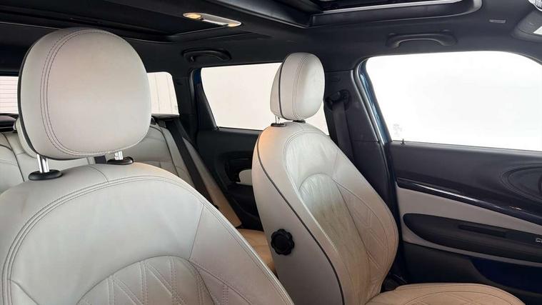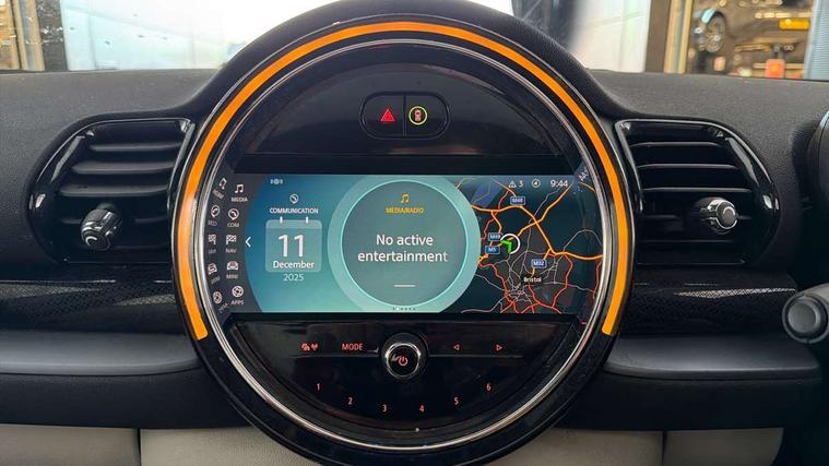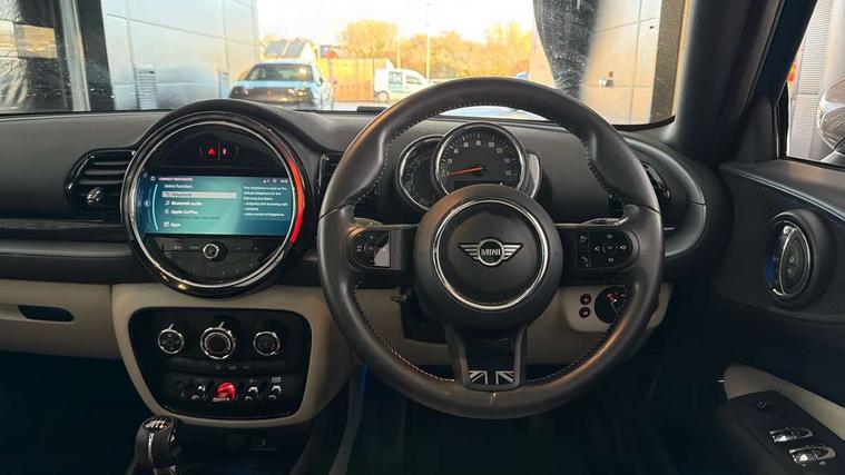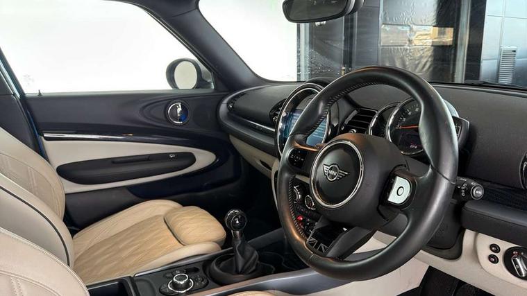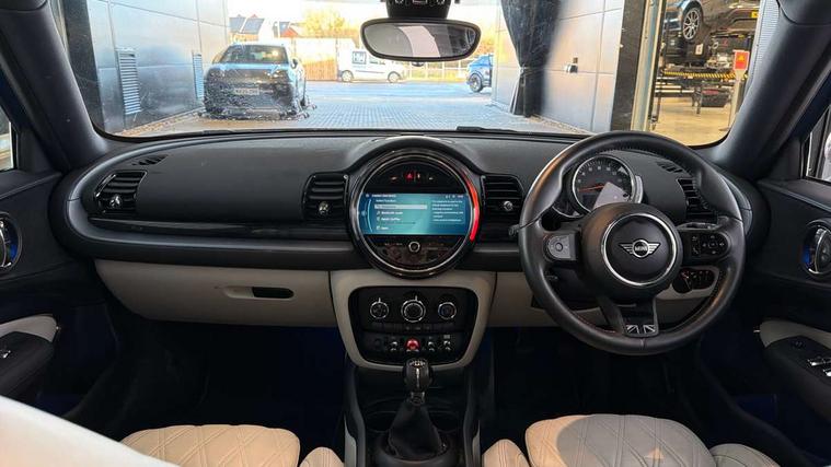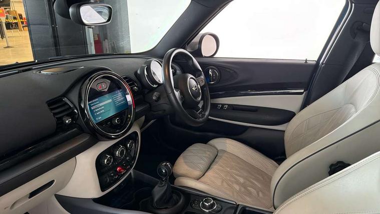 Active Guard incl speed limiting and lane departure functions with auto steering, and front collision warning with brake intervention, Automatic start/stop function with brake energy recuperation, Compatible mobile phone bluetooth with audio streaming, Digital cockpit, Electro-mechanical speed dependant steering assistance, Instrument cluster, Mini E-call, MINI TeleServices, On board computer, 6 Speed manual transmission including gear change indicator display, Double Vanos system, Fully variable valve control, High precision injection, Performance Control, FM tuner and DAB digital radio, Bonnet scoop, Chrome fuel filler cap, Chrome lower front grille grating, Chrome radiator grille bars, Dynamic brake lights, Electric windows, Heated rear window, Heated windscreen washer jets, LED headlights with closed ring as daytime driving lights, LED rear light with union jack design, Metal door sill strips with Cooper S imprint, Model logo, Model logo on rear doors, Rain sensor with auto headlights, Rear fog lights, Rear window wiper, Side scuttle panel with integrated indicator, Split rear doors, Sun/heat protection glass, Twin exhaust tailpipe, White indicator lenses, 12V Accessory socket in centre console, 360L luggage compartment capacity, 4 lashing eyes in luggage compartment, 60/40 split folding rear seat, Chrome air vents, gear lever base and door handles, Chrome interior highlights, Cupholders, English handbook, Front and rear head restraints, Glove compartment, Height and length steering column adjustment, Interior lighting with 12 basic colours selectable via toggle switch in roof, Isofix rear child seat preparation, Leather gearshift lever and handbrake gaiters, LED reading lights, vanity mirror lights, front foot well light and spotlight on front seats, Manual air conditioning, MINI Yours fine walk nappa leather steering wheel with contrast stitching in silver and MINI Yours badge, Multifunction steering wheel, Storage compartments in doors, Sunvisors with vanity mirrors, Toolkit, Excitement pack - Clubman, Navigation pack - Clubman, 2 tone horn, 3 point seatbelts on all seats, 6 Airbags - front, side, head and seat belt tensioners, Anti-lock braking system (ABS), DSC - Dynamic Stability Control, Electronic handbrake, Front and rear disc brakes, Tyre pressure monitoring system, Alarm system with tilt sensor, monitoring doors, bonnet interior and tailgate, Auto drive away locking, Deadlocking function, Electronic vehicle immobiliser, Locking wheel bolts, Start/stop toggle with keyless go, Chrome line interior,