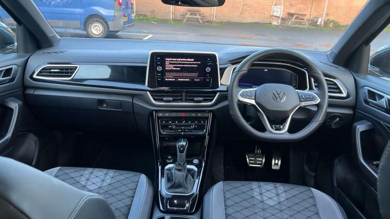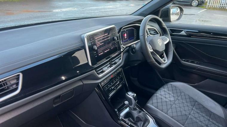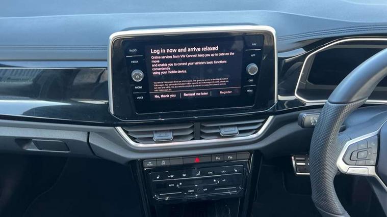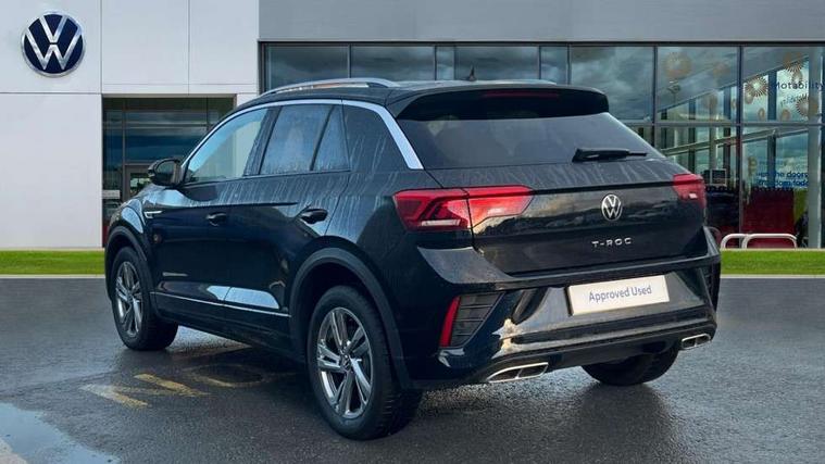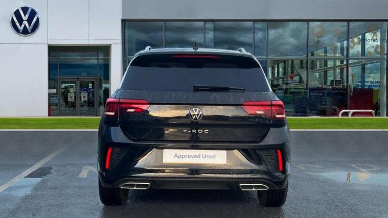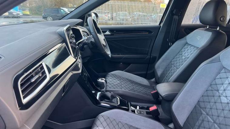 10.25" Digital cockpit pro, Advanced driver attention and drowsiness monitor, Dynamic road sign display, Emergency call service, Lane keeping system Lane Assist, Mobile phone interface, Modified key software - reduce switch off time for key status change to Long no motion, Online services, Park assist including front and rear parking sensors, Service interval indicator, Tailgate/trunk lid release from outside, Think blue trainer driver tips and journey analysis, Warning sound and light for front seatbelts unfastened, Wireless app connect, Battery regeneration during braking, Start/stop function with battery regeneration, DAB Digital radio, Diversity antenna for FM reception, Front and rear 6 speakers, Music playback - MP3, WMA and AAC files, Premium USB cable in choice of either Apple or Android smartphone compatibility, SD card slot, Simultaneous pairing of 2 compatible mobile devices, Title and cover art display, We Connect and We Connect Plus functionality, Auto dimming interior rear view mirror, Automatic hazard lights activation under emergency braking, Automatic headlight control with LED separate daytime running lights with coming/leaving home function, Body coloured exterior mirror housings and door handles, Electrically adjustable and heated door mirrors, Extended roof spoiler, Exterior mirrors aspherical on driver side, convex on front passenger side, External USB type C socket and charging sockets, Front windscreen wiper with intermittent wipe and 4 position delay, Heated rear window, LED 3rd brake light, LED rear combination lamps, LED rear number plate lights, Power windows with comfort operation and circuit breaker, Privacy glass for rear side windows and rear window, R-Line design body coloured bumpers, Rain sensor, Rear exhaust tailpipe, Rear fog light on one side and reversing lights on both sides, Rear side wing doors, Rear wash/wipe with intermittent wipe setting, Remote electrically foldable door mirrors, puddle lights and reverse activated passenger's door mirror, 12V power socket in centre console, 3 rear head restraints, 3 seat bench in 2nd row, 4 load lashing points in luggage compartment, Air care climatronic air conditoning system with active combination filter and 2-zone temperature control, Black roof lining, Chrome plated decorative trims, Chrome plated radiator grille inserts, air vent surrounds and light switch surrounds, Door and side trim panel with leatherette insert, Front + rear carpet mats, Front centre armrest, Front cupholders x 2, Front footwell illumination, Front reading light, Front scuff plates with R Line logo, Front seat back storage pockets, Glove compartment door with light, Instrument lighting, white adjustable panel illumination, Interior ambient lighting and surround lighting, Interior light delay, Isofix child seat preparation, Leather gearshift handle, Load-through provision with cup holder when folded down ('Unsplit rear seat bench, split folding backrest, with centre armrest), Luggage compartment lighting, Single front passenger seat, Stainless steel pedals, Storage compartment in left and right luggage area, Storage compartment in rear doors, Storage compartments in driver and front passenger doors, Sunvisors with illuminated vanity mirrors, Variable boot floor, height adjustable and removable, Driver assistance pack without proactive passenger protection - T-Roc, 3 point height adj front seatbelts + pretensioners, 3 point seatbelts in outer rear with ECE label, ABS, Child locks on rear doors, City emergency braking and pedestrian monitoring, Driver and front passenger airbag with front passenger airbag deactivation, Driver and front passenger safety-optimised head restraints, Drivers seatbelt reminder, Electronic parking brake, Electronic Stability Control (ESC) inc EDL (Electronic Differential Lock) and ASR (Traction Control), Front and rear passengers curtain airbag system including front side airbags, Hill start assist, Predictive pedestrian protection, Rear disc brakes, Two tone horn, Tyre pressure loss indicator, Volkswagen roadside assistance, Piano black decorative inserts in dashboard and front door trim panels, Trims for alloy wheels,