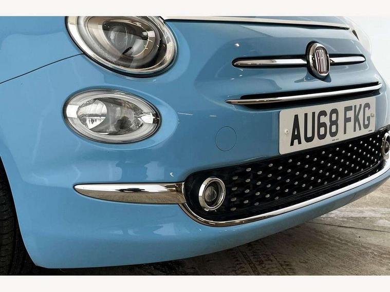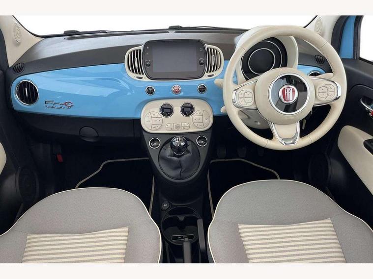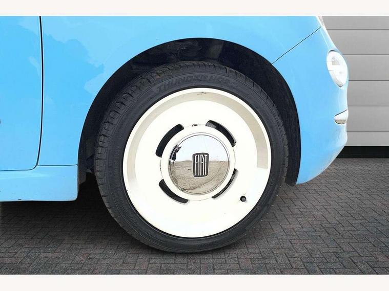 7" HD Touchscreen Radio with 3D Navigation, Bluetooth, USB, Aux-in and DAB, 7" TFT instrument cluster, Apple car play/Android Auto, Cruise control, Dualdrive PAS, External temperature gauge, Rear parking sensor, Speed limiter, Stop/start system, 4 speakers, Body colour bumpers, Body colour side rubbing strips with 500 logo, Chrome door handles, Chrome door mirror housings, Dusk and rain sensors, Electric adjustable heated door mirrors, Electric front windows, Front fog lights, Heat insulated glass, Heated rear window, LED daytime running lights, Rear badge "Spiaggina 58", Special paint, Vintage Fiat logos, White belt line, 1 passenger grab handle, 50/50 split folding rear seats with height adjustable rear headrests, Auto climate control, Auxilliary 12V power socket, Chrome entry kick plates, Cloth/Techno leather upholstery, Driver's seat memory, Front headrests, Front passenger seat memory, Height adjustable drivers seat, Height adjustable steering wheel, Isofix child seat preparation, Leather steering wheel with audio controls, Unique floor mats, Vintage Fiat logo on Steering wheel, Chrome pack - 500C, ABS/EBD, Curtain airbags, Driver and passenger airbags, Drivers knee airbag, ESC - Electronic Stability Control + traction control, ESP + ASR/MSR + HBA + Hill holder, Side airbags, Tyre pressure monitoring system, Window airbags, Automatic door locking, Locking fuel filler cap, Remote central locking, Body colour dashboard, 16" Vintage alloy wheels, Fix and go puncture repair kit,