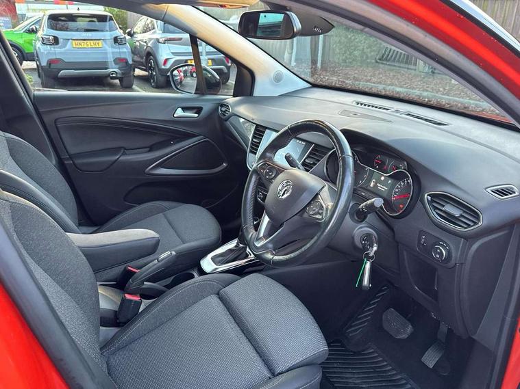 3.5" monochrome instrument colour display, Audible lights on warning, Bluetooth connectivity, Cruise control + speed limiter, Digital clock with automatic RDS time adjustment, Driver drowsiness alert system, E-call, Forward collision warning, Instrumentation - Speedometer, rev counter, low fuel gauge warning light + water temperature gauge warning light, shift up/down indicate light, Lane departure warning system, Multi function trip computer, Multimedia sat nav pro with 8" colour touchscreen, AM/FM, Bluetooth streaming, Bluetooth mobile phone portal, apple CarPlay/Android Auto + 6 speakers, Outside temperature display with ice warning, Refridgerant low indicator, Service interval indicator, Speed sensitive power steering, Speed sign recognition, Vauxhall connect, Front wheel drive, 2 x USB connections, DAB Digital radio, Steering wheel mounted audio/phone/cruise controls, 2 speed wipers/wash wipe/intermittent wipe, Alloy effect front and rear skid plates, Automatic anti dazzle rear view mirror, Automatic headlamp levelling system, Automatic high beam control with cornering light, Automatic lighting control, Black door mirror housings, Black radiator grille with chrome bar, Black roof, Body colour door handles, Body colour front and rear bumpers, Chrome effect upper window moulding, Dark tinted rear side windows + tailgate window, Electrically adjustable and heated door mirrors, Front power windows with express up/down and anti-pinch function, Hazard warning lights, Headlamps for left side traffic, Heated rear window, Integrated tailgate spoiler, Intermittent rear wash/wipe, LED daytime running lights, LED front fog lights, LED Headlights, LED side repeat indicators, LED tail lights, Rain sensitive windscreen wipers, Rear fog lights, Rear power windows with express up/down and anti-pinch function, Rear side wing doors, Rear wing door, Reversing light, Side window demist vents, Solar heat absorbing windscreen and windows, Third brake light, Welcome lighting, Windscreen demist vents, 12v power outlet - front, 2 way adjustable front passenger seat, 2 way front passive headrests, 3 rear seats, 3 spoke flat bottomed leather covered steering wheel with bezel decoration, 4 way electrically adjustable lumbar support for drivers seat, 60/40 split folding rear seat backrest, Adjustable rear seat backrest, Air recirculation facility, Ambient lighting, Anti submarining ramps in front seats, Cabin particulate filter - removes dust, airborne particles and pollen, Centre console, Driver and front passenger illuminated vanity mirrors with flip up covers, Driver's seat armrest, Drivers ergonomic active seat with 8 way manual adjustable driver seat , height, reach and backrest, Dual zone electronic climate control, Fade up/fade down on interior lighting, Four adjustable facia vents, Front door pockets with bottle holders, Front map reading lights, Fully carpeted luggage area, Glovebox with lid, Height adjustable front/rear head restraints, Illuminated load area, Interior courtesy light operated by all doors, Isofix system on outer rear seats, Jet black premium leather side bolsters, Luggage compartment cover, Multi-speed fan with Illuminated control, Open storage compartment in centre console, Passenger assist handles, Reach + rake adjustable steering column, Rear centre headrest, Rear door pockets with bottle holders, Rear floor ventilation ducts, Rear reading lights, Satin chrome effect bezel on steering wheel, Seat cushion extension, Single front passenger seat, Sparkle cloth/vinyl upholstery, Storage pockets on front seat backs, Two drinks holders in centre console, Rear view camera plus pack - Crossland, Winter pack - Crossland, 3x3 point rear seatbelts, 6 airbags - Driver and co-driver front, front side, head curtain roof airbags, front and rear row coverage airbags, ABS, Automatic emergency braking with pedestrian detection, Child locks on rear doors, CSC - Cornering stability control, Deactivate switch for side impact airbags, Deformation zones front and rear, Dual seatbelt pretensioners on front seats, EBD - Electronic brakeforce distribution, Energy absorbing steering column, Engine drag torque control, ESP + traction control, Front and rear seatbelt unfastened audible warning and warning light, Front side impact airbag, Hill start assist, Hydraulic Brake Assist (HBA), Hydraulic brake boost, Inertia reel lap and diagonal seatbelts for all seats, Passenger airbag deactivate switch, Pedestrian detection, Rear seat belt pretensioners, Reinforced passenger safety cell, Seatbelt load limiter, Side impact protection beams, Smart seatbelt reminder for front and rear seats, Tyre pressure monitoring system, 2 remote folding keys, Electronically protected audio equipment, Engine immobiliser, Locking wheel nuts, Remote central deadlocking, Remote control central locking activation switch on driver door, Remote control central locking operates on doors, tailgate and fuel filler flap, Remote security alarm system, Visible vehicle identification number, Black facia with silver trim insert, Black trim inserts on front doors, Cluster black with chrome rings, 17" five twin spoke diamond bi colour alloy wheels,