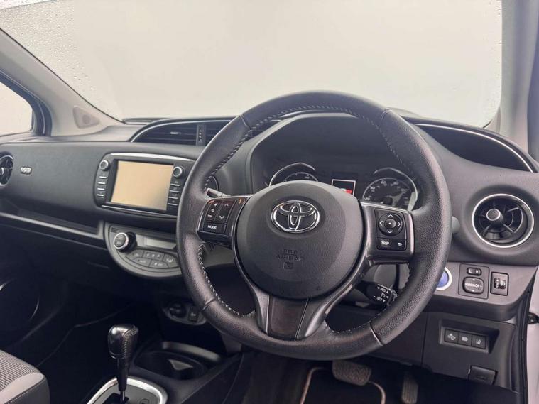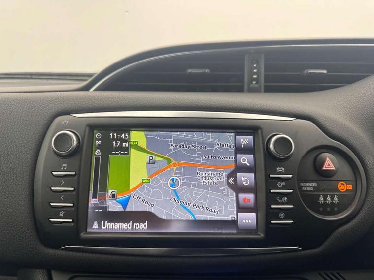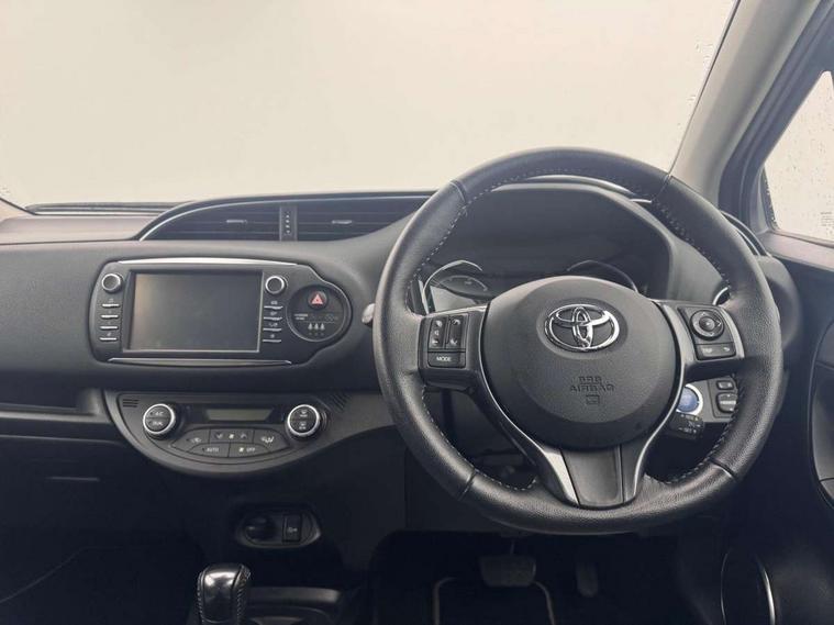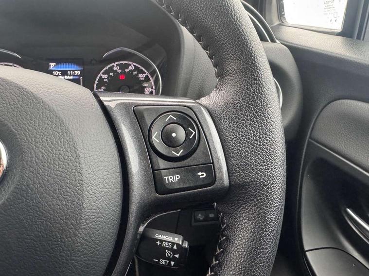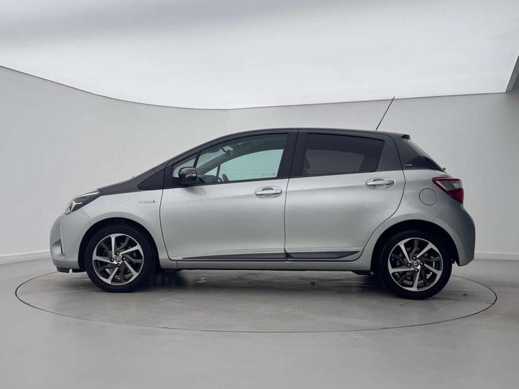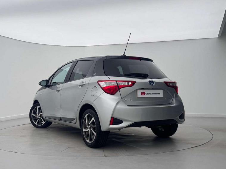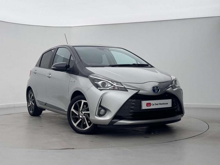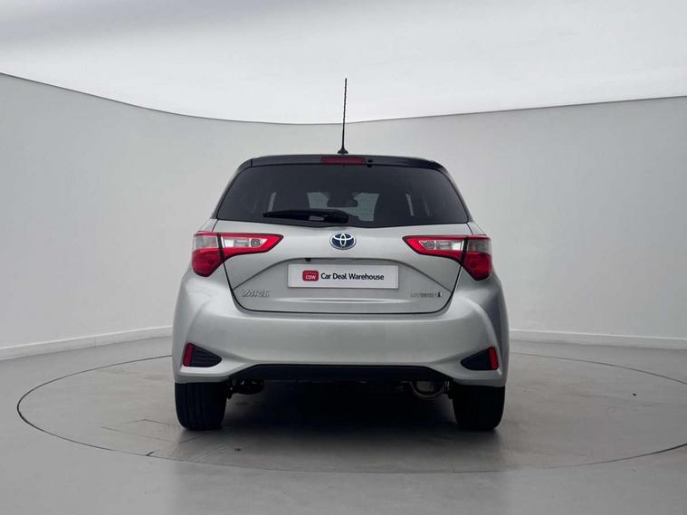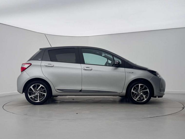 4.2" coloured LED TFT multi information display, Analogue speedometer, Analogue tachometer, Auto speed limiter, Bluetooth connectivity, Cruise control, External temperature gauge, Fuel indicator with low level warning, Hybrid energy display, Hybrid system indicator, Key reminder warning, Lights on warning, Multi information display switches on steering wheel, Power Steering, Push button start, Reversing camera, Trip computer, 6 speakers, Auxiliary input socket, Steering wheel mounted audio/telephone switches, Toyota Touch 2 with DAB, USB connection, Auto up and down function on drivers window, Automatic wipers, Bi-tone grey roof, Black lower front grille, Body colour bumpers, Body colour door handles, C pillar decal, Daytime running lights, Electric adjustable heated door mirrors, Electric front windows, Follow me home headlights, Front fog lights, Grey contrasting colour door mirrors, Grey door moulding, Grey door side sills, Grey front grille and fogs, Headlight cut-off reminder, LED High mounted stop lamp, Manual dimming rear view mirror, Privacy glass, Projector headlights, Rain sensitive windscreen wipers, Rear combination lights bulb type, Rear window defogger, Rear wiper, Turning signal integrated indicators in door mirrors, Y20 Badging, 12v power outlet - front, 3 adjustable rear headrests, 3 spoke leather steering wheel, 60/40 split folding rear seat, Boot light, Data Communication Module (DCM) connected services, Driver and front passenger personal light, Driver and front passenger Whiplash Injury Lessening seats, Dual zone automatic air conditioning, Fabric upholstery, Front and rear cup holders, Front map reading lights, Front seats with lumbar support, Glovebox, Height adjustable driver's seat, Height adjustable front head restraints, Illuminated entry system, Isofix seat fixing, Leather gearshift, Leather parking brake handle, Map pockets on the backs of the front seats, Pollen filter, Removable rear parcel shelf, Sliding front seats, Soft touch inner door garnish, Tilt/telescopic steering column, Y20 badge interior and in seat trim, 3 point seatbelts on all rear seats, ABS+EBD+Brake assist, Active headrests, Collision mitigation braking system, Emergency brake light system (EBS), Front passenger airbag on/off switch, Front seatbelt reminder, Height adjustable front seatbelts with pre-tensioners and load limiters, Hill start assist control (HAC), Rear child proof door locks, Rear seat belt reminder, Road sign information display, Seatbelt warning lamp and buzzer, Supplemental restraint system (SRS) airbags - 7 airbags including driver, front passenger, curtain, side and knee airbags, Toyota safety sense including Road sign assist, Pre collision system, auto high beam and lane departure alert), Tyre pressure warning system, Vehicle stability control VSC + traction control, Engine immobiliser, Power and remote door locking, Interior satin accents, Soft touch instrument panel, 16" 10 spoke grey machined alloy wheels, Space saver spare wheel,