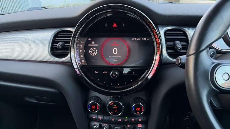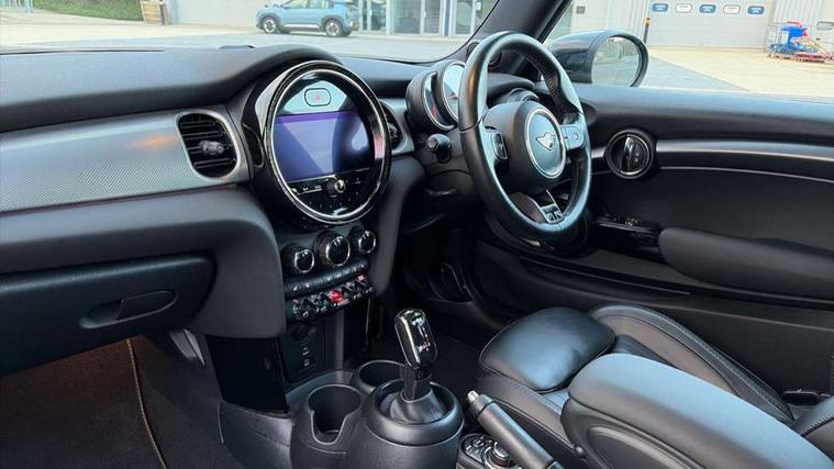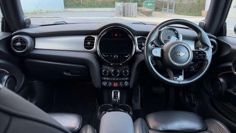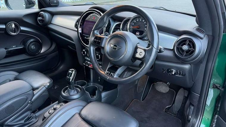 Apple CarPlay, Automatic start/stop function with brake energy recuperation, Compatible mobile phone bluetooth with audio streaming, Cruise control with brake assist, Electro-mechanical speed dependant steering assistance, Flexible car sharing preparation, Instrument cluster, MINI Driving Modes - centre toggle switch to control driving setting (sport, mid and green), Mini E-call, MINI TeleServices, On board computer, Rear park distance control, Service interval indicator, Double Vanos system, Fully variable valve control, High precision injection, Performance Control, Steptronic sport transmission with double clutch and steering wheel paddles, 8.8" touchscreen with LED ring, FM tuner and DAB digital radio, 3rd brake light, Automatic headlight activation switch, Bonnet scoop, Chrome line exterior - radiator grille bars, tailgate handle, lower front grille grating and rear central fog-light, Dynamic brake lights, Electric front windows, Heated rear window, Heated windscreen washer jets, LED headlight with closed ring and daytime driving lights, Metal door sill strips with Cooper S, Model logo Cooper S on right of tailgate, Rain sensor window wipers, Rear fog lights, Rear LED lights with union jack design, Rear window wiper, Side scuttle panel with integrated indicator, Sun/heat protection glass, White indicator lenses, 12V Accessory socket in centre console, 2 seat bench in 2nd row, 4 lashing eyes in luggage compartment, 60/40 split folding rear seat, Carbon black colour line - Knee roll and door armrest, Chrome interior highlights, Chrome line interior - air vents, gear lever base, door handles and speakers in doors, Cupholders, Front and rear head restraints, Front and rear isofix with front passenger airbag deactivation, Front floor mats in velour, Glove compartment, Height and length steering column adjustment, Interior lighting with 12 different colours across the dashboard, underneath door bezel with illuminated laser-engraved design on central display, Leatherette gearshift lever and handbrake gaiters, LED reading lights, vanity mirror lights, front foot well light and spotlight on front seats, Manual air conditioning, Mechanical seat adjustment - forward/back & backrest for front seats and driver seat height adjust, MINI yours badge on exterior pillar, Multifunction steering wheel, Passenger seat height adjuster, Satellite grey headlining including grab handles and clothes hooks, Single front passenger seat, Storage compartments in doors, Storage pocket on back of front seats, Sunvisors with vanity mirrors, Walknappa leather steering wheel with grey seam and MINI Yours badge on Piano Black lower steering wheel spoke, 3 point seatbelts on all four seats, 6 Airbags - front, side, head and seat belt tensioners, Anti-lock braking system (ABS), DSC - Dynamic Stability Control, Front and rear disc brakes, Two tone horn, Tyre pressure monitoring system, Alarm system with tilt sensor, monitoring doors, bonnet interior and tailgate, Electronic vehicle immobiliser, Start/stop toggle with keyless go, Tool kit,