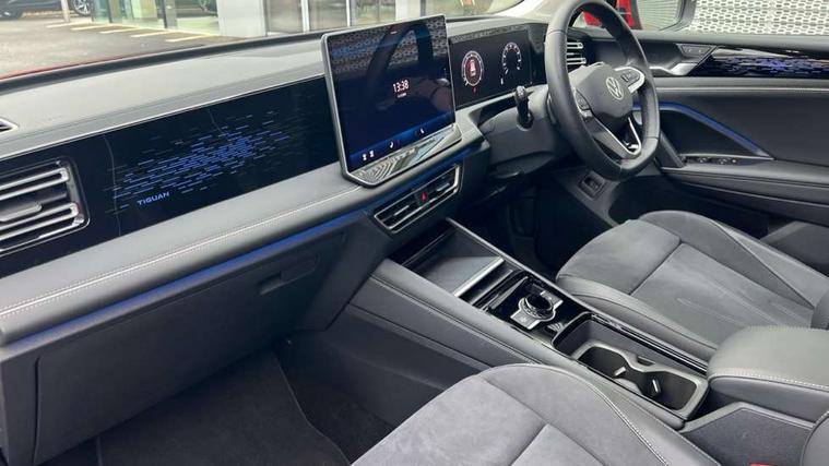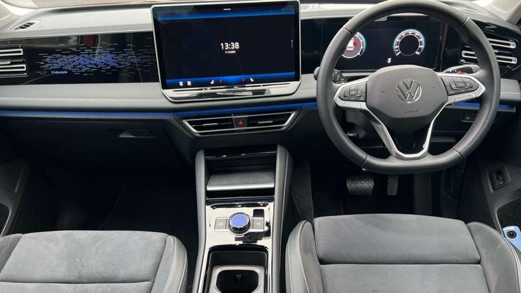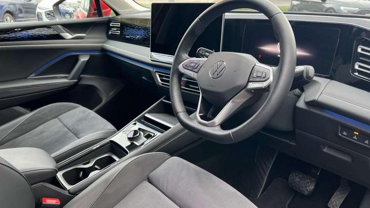 Adaptive cruise control ACC including speed limiter, Advanced driver attention and drowsiness monitor, App-Connect incl. App-Connect Wireless for Apple CarPlay and Android Auto, Area view camera [PAV], Bluetooth phone integration system, Comfort drive travel assist, Digital Cockpit Pro - 10.25" high resolution dash display screen with customisable menus and information, Dynamic road sign display, E-Sim card for online connectivity, eCall emergency call service, eCall emergency call system, Extended safety system (proactive passenger protection system), Full electric tailgate operation, Head up Display, Inductive smartphone charging without external antenna connection, Lane change system, Side assist, Rear traffic alert and Exit warning system, Lane keeping system Lane Assist, Multifunction front facing camera, Navigation system, Oncoming vehicle braking when turning including swerve support, Park assistance plus with front and rear parking sensors, Power assisted steering with speed sensitive, Rear view camera, Rev counter, Service interval indicator, Speed limit display, Start/stop system with regenerative braking, Trip computer, Voice control and enhancer, Warning signal and warning light for front and rear seatbelts not fastened, Wireless App-Connect, Front wheel drive, 15" Infotainment display, 8 Speakers, DAB radio, Diversity antenna for FM reception, Ambient lighting with logo projection, Auto dimming interior rear view mirror, Automatic headlight control system, Body colored bumpers in R-Line style, Body colour door handles, Body coloured door mirrors with integrated indicators, Chrome moldings on the side windows, Coming/leaving home lighting function, Dynamic headlight range control with dynamic cornering light, Exterior mirrors power folding, auto-dimming on drivers side with surround lighting and memory feature, Front and rear electric windows, Heat insulating darkened glass in side and rear windows, Heated windscreen washer jets, High Beam Assist, automatic sensing for switching between dipped and main beam, High level 3rd brake light, High-resolution matrix beam plus digital projection, Highway light, Illuminated door handle recesses, Illuminated lightline between headlamps and illuminated door handle recesses, IQ.Light - HD matrix headlamps with poor weather light, entry and exit lighting, Laminated safety glass from B-pillar backwards 90% tinted, Laminated safety glass windshield, heat and sound insulating, LED rear lights with welcome farewell lights with illuminated Volkswagen Logo, LED separate daytime running light, Rear fog light on one side, reversing light on both sides, Rear side wing doors, Rear wiper, Remote electrically foldable door mirrors, puddle lights and reverse activated passenger's door mirror, Silver roof rails, 12V outlet in center console rear and in luggage compartment, 12V socket in centre console, 2 USB-C ports in the front, 2 USB-C charging sockets on the centre console in rear, charging capacity up to 45 W, 3 bench rear seats in 2nd row, 3 rear headrests, 30 colours options interior ambient lighting, Air Care Climatronic 3 zone automatic climate control with enhanced air filter and controls in the rear, Carpet mats, front and rear, Centre console with illuminated storage compartment with sliding cover and two drinks holders, Door and side trim panel with leatherette insert, Door sill protectors, Drivers seat with manual adjustment of seat travel and height and backrest angle with thigh support longitudinally sliding, Front centre armrest, Front massage seats, Front sports comfort seats, Heated front seats, Heated steering wheel, Height adjustable front seats, ISOFIX anchors for child seats on outer rear seats and front passenger seat compatible with i-Size, Leather wrapped multifunction steering wheel with paddle shift, Mechanical rear seat release, Power adjustable lumbar support in front, Rear bench seat asymetrically split folding, longitudinally movable and folding with load-through hatch and center armrest, Safety optimised front head restraints, Single front passenger seat, Sun visors with illuminated vanity mirrors, Variable luggage compartment floor, 3 point seat belt for centre rear seats, 3 Point seat belts in front with pretensioners, 3 point seatbelts in outer rear with ECE label, Autonomous emergency braking front assist with pedestrian and cyclist monitoring, Driver/Front Passenger airbags, Electronic parking brake with auto hold, Front disc brakes, Front passenger airbag deactivation, Manual rear child locks, Rear disc brakes, Two tone horn, Tyre pressure loss indicator, Warning triangle, Anti theft alarm system with interior monitoring, backup horn and towing protection, Anti theft wheel bolts, Central locking system keyless entry, Chrome elements on the mirror switch and power window switches, door pulls interior door handle in matte chrome, Decorative inserts Cross in dash and front door panels, Tool kit for tyre mobility set,