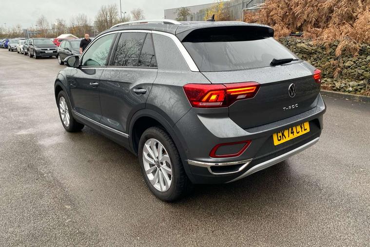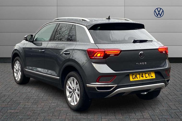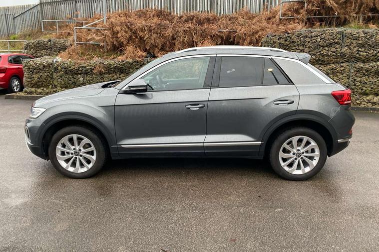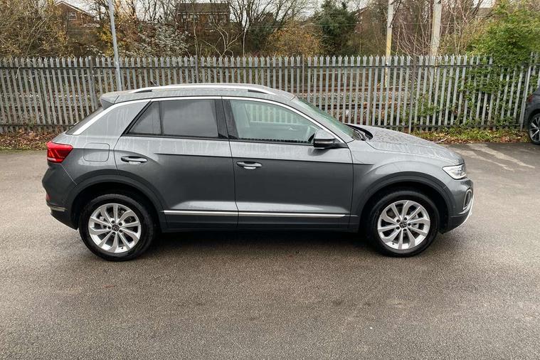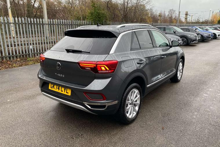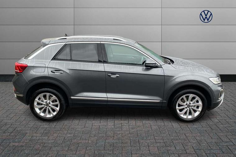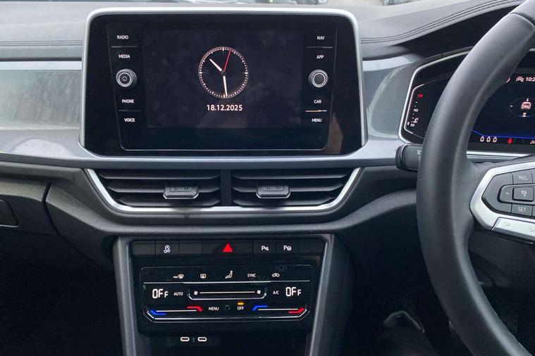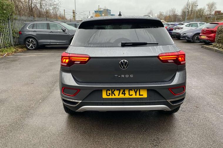 10.25" Digital cockpit pro, Advanced driver attention and drowsiness monitor, Emergency call service, Lane keeping system Lane Assist, Mobile phone interface, Modified key software - reduce switch off time for key status change to Long no motion, Online services, Park assist including front and rear parking sensors, Power assisted speed sensitive steering, Service interval indicator, Tailgate/trunk lid release from outside, Think blue trainer driver tips and journey analysis, Warning sound and light for front seatbelts unfastened, Wireless app connect, Wireless Smartphone charger, Battery regeneration during braking, Start/stop function with battery regeneration, DAB Digital radio, Diversity antenna for FM reception, Front and rear 6 speakers, Music playback - MP3, WMA and AAC files, Premium USB cable in choice of either Apple or Android smartphone compatibility, SD card slot, Simultaneous pairing of 2 compatible mobile devices, Title and cover art display, We Connect and We Connect Plus functionality, Auto dimming interior rear view mirror, Automatic hazard lights activation under emergency braking, Automatic headlight control with LED separate daytime running lights with coming/leaving home function, Body colour sports bumpers with silver metallic underbody fascia, Dynamic headlight range control with self adjusting whilst driving, Electrically adjustable and heated door mirrors, Extended roof spoiler, Exterior mirrors aspherical on driver side, convex on front passenger side, External USB type C socket and charging sockets, Front windscreen wiper with intermittent wipe and 4 position delay, Heated rear window, LED 3rd brake light, LED rear combination lamps, LED rear number plate lights, Light mode for poor weather, rain, fog or snow, Power windows with comfort operation and circuit breaker, Rain sensor, Rear exhaust tailpipe, Rear fog light on one side and reversing lights on both sides, Rear side wing doors, Rear wash/wipe with intermittent wipe setting, Remote electrically foldable door mirrors, puddle lights and reverse activated passenger's door mirror, 12V power socket in centre console, 3 rear head restraints, 3 seat bench in 2nd row, 4 load lashing points in luggage compartment, Air care climatronic air conditoning system with active combination filter and 2-zone temperature control, Chrome plated radiator grille inserts, air vent surrounds and light switch surrounds, Door and side trim panel with leatherette insert, Drawer under drivers seat, Front + rear carpet mats, Front centre armrest, Front comfort sports seats, Front cupholders x 2, Front footwell illumination, Front seat back storage pockets, Glove compartment door with light, Instrument lighting, white adjustable panel illumination, Interior ambient lighting and surround lighting, Interior light delay, Isofix child seat preparation, Leather gearshift handle, LED interior light with switch off delay/dimmer and 2 front/rear LED reading lights, Load-through provision with cup holder when folded down ('Unsplit rear seat bench, split folding backrest, with centre armrest), Luggage compartment lighting, Non-folding front passenger seat backrest, Single front passenger seat, Storage compartment in left and right luggage area, Storage compartment in rear doors, Storage compartments in driver and front passenger doors, Sunvisors with illuminated vanity mirrors, Variable boot floor, height adjustable and removable, Driver assistance pack without proactive passenger protection - T-Roc, 3 point height adj front seatbelts + pretensioners, 3 point seatbelts in outer rear with ECE label, ABS, Child locks on rear doors, City emergency braking and pedestrian monitoring, Driver and front passenger airbag with front passenger airbag deactivation, Driver and front passenger safety-optimised head restraints, Drivers seatbelt reminder, Electronic parking brake, Electronic Stability Control (ESC) inc EDL (Electronic Differential Lock) and ASR (Traction Control), Front and rear passengers curtain airbag system including front side airbags, Predictive pedestrian protection, Rear disc brakes, Two tone horn, Tyre pressure loss indicator, Volkswagen roadside assistance, Trims for alloy wheels,