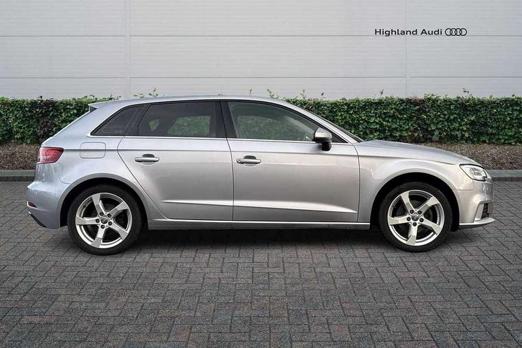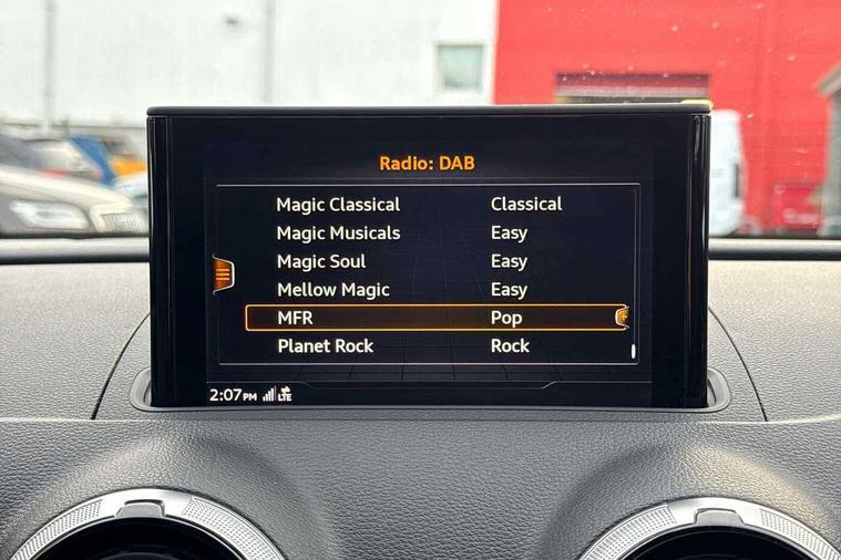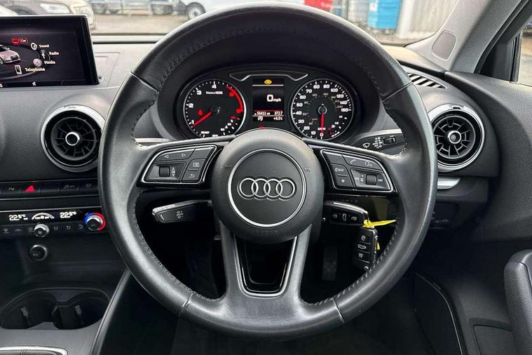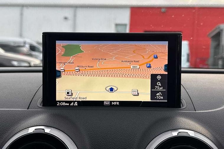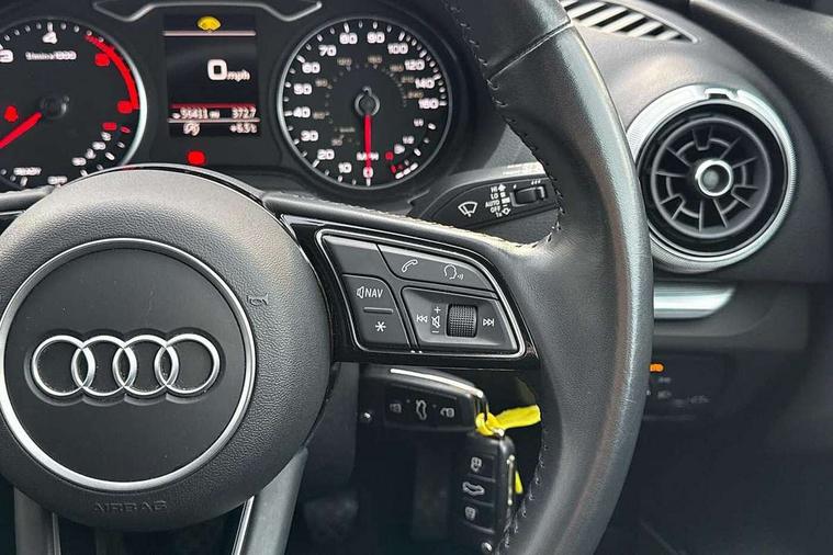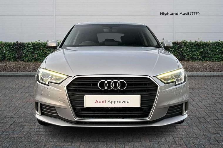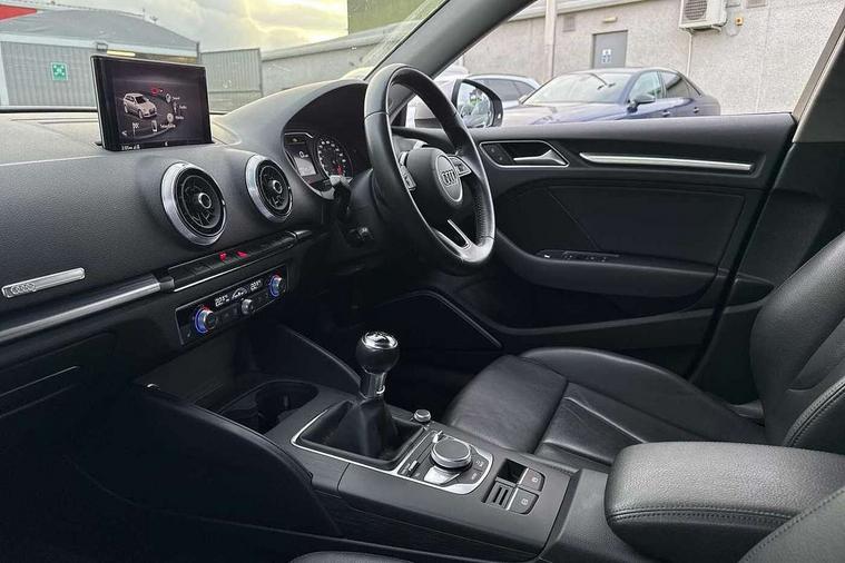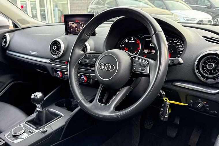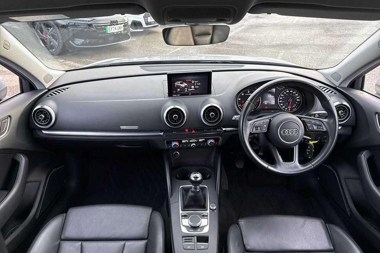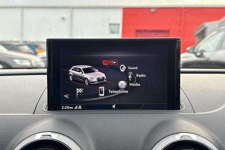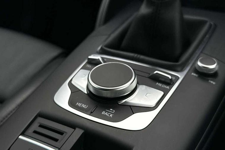 Aluminium air vent surrounds, Aluminium mistral silver inlay, Aluminium trim elements, Interior light pack - A3 Hatchback/Sportback/Cabriolet, Non smoking pack - A3, Storage and luggage pack - A3/RS3, Tyre repair kit, Anti theft alarm, Anti-theft wheel bolts, Remote control central locking, Thatcham category 1 alarm + immobiliser, 2 USB interfaces and Aux-In jack, Audi music interface, CD player, DAB Digital radio, MMI radio plus with 7" colour MMI screen and MMI controller, Online entertainment, 3 point seatbelts on all seats, ABS/EBD, Active bonnet, Active front headrests, Airbags - front driver/passenger, front & rear side, curtain, drivers knee, ASR, EDL, Electromechanical parking brake, ESC - Electronic Stability Control + traction control, Front passenger airbag deactivation, Hill hold assist, Manual rear child locks, Multi-Collision braking, Seatbelt warning, Tyre pressure warning, Warning triangle and first aid kit, Aluminium window trim, Auto dimming rear view mirror with light and rain sensors, Body colour bumpers, Body colour door mirrors, Body colour roof spoiler with aerodynamic inserts in high gloss black, Chrome exhaust tailpipes, Electric front windows, Electric rear windows, Electrically adjustable and heated door mirrors with integrated LED side indicators, Heated windscreen washer jets, Matt black radiator grille, Rear wiper, Sport specific side air inlet grille and diffuser insert, Xenon headlights with LED Daytime running light, 3 adjustable rear headrests, 3 spoke leather multifunction sports steering wheel, 4 lashing points to secure luggage, 60/40 split folding rear seat, Adjustable front centre armrest, Aluminium door sill trims, Dual zone electronic climate control, Front and rear interior lights with delay, Front/rear floor mats, Glovebox light, Height and reach adjustable steering wheel, Isofix child seat preparation for front passenger/outer rear seats inc passenger airbag deactivation, Manual height adjustable front seats, Rock grey headlining, Storage compartments in doors side trims, centre console and under front drivers seat, Tool kit, Audi connect, Audi drive select, Audi smartphone interface, Automatic start/stop system, Colour driver's information system display, Cruise control, Electro - mechanical power assisted steering, Mobile telephone preparation - bluetooth interface, SD card based MMI navigation, Service interval indicator, Speed limit display, Voice control system, Voice recognition for navigation system, Diesel particulate filter, Dynamic suspension,