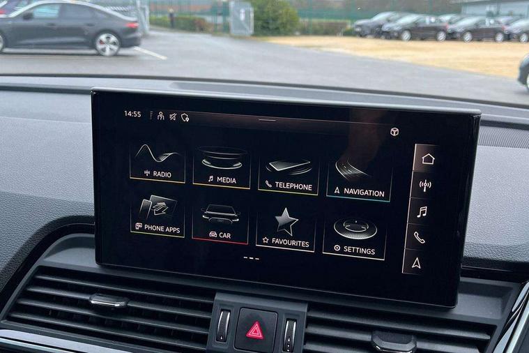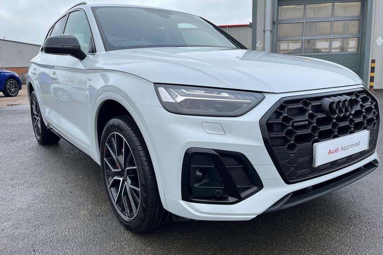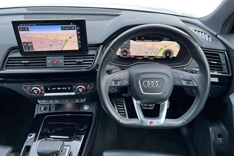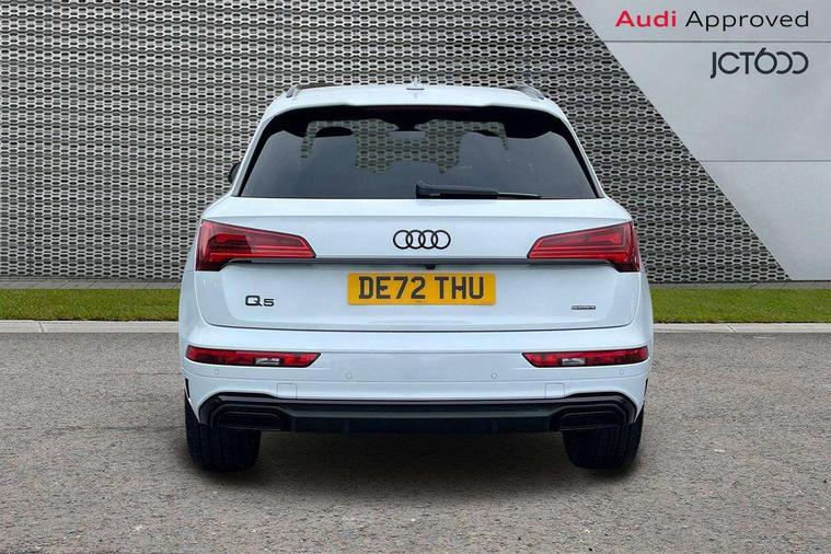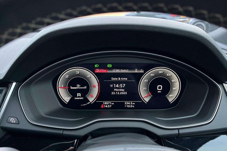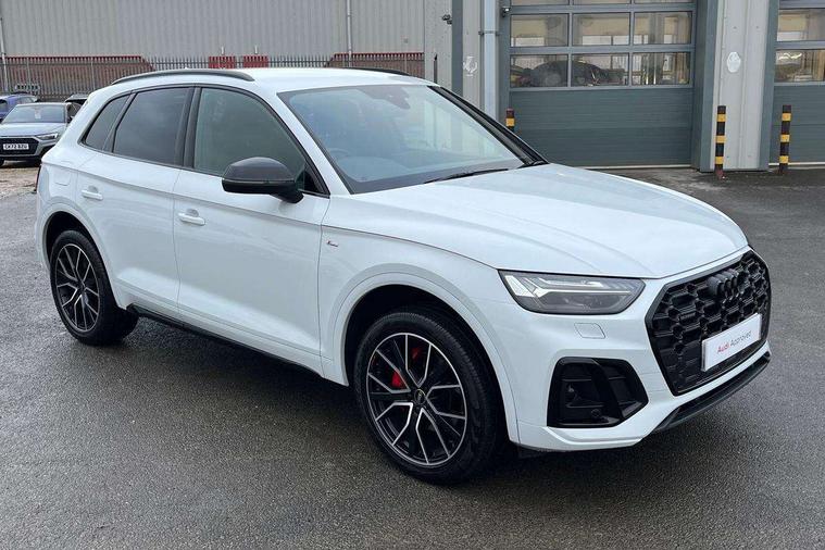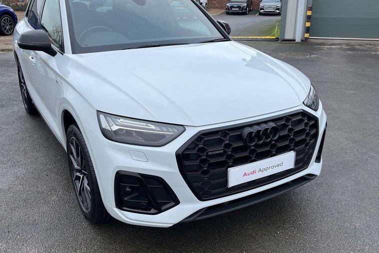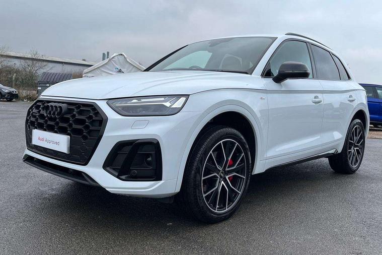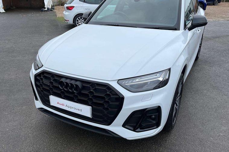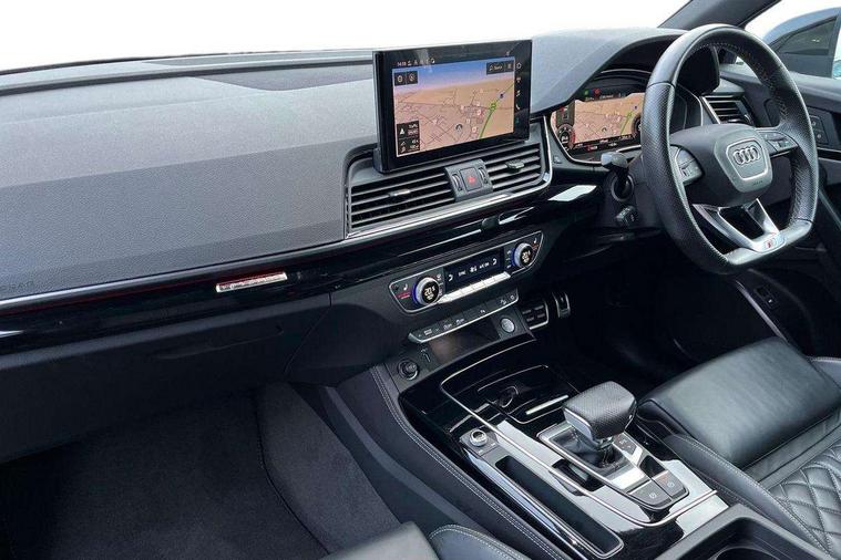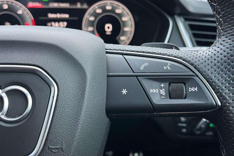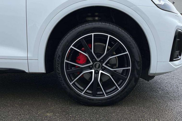 Audi connect safety and service (e-call), Audi connect with Amazon Alexa Integration, Audi drive select, Audi virtual cockpit plus with 12.3" screen and three different layout designs, Audi wireless smartphone interface, Automatic start-stop system with coasting functionality and efficiency programme, Bluetooth interface, Electro - mechanical power assisted steering, MMI navigation plus with 10.1" touch screen, Power tailgate, Reversing camera, Service interval indicator, Voice control system with Audi hotword activation "Hey Audi", Diesel particulate filter, Quattro on demand, S line sports suspension, DAB Digital radio, Acoustic windscreen, Audi matrix LED headlights with dynamic front and rear indicators, Audi rings at front and rear in black, Audi rings decal on rear doors, Auto dimming door mirrors, Auto dimming rear view mirror, Automatic headlight adjustment, Automatic headlights and windscreen wipers, Black roof rails, Body colour bumpers, Body colour underbody protection, Chrome plated exhaust trims, Daytime running lights, Door sills in Selenite silver, Electric adjustable/heated/folding door mirrors, Front air inlet surrounds in titanium black, Front and rear electric windows, Headlight washers, High gloss black B pillar trims and triangular rear door trim, High level LED brake light, Rear chrome trim strip below lights, Rear privacy glass and rear side windows, Rear side wing doors, Rear wiper, Roof bars, S Line rear spoiler, 2 x USB charging port with aux input socket, 3 rear headrests, 4 way electric lumbar support for driver and front passenger, 40:20:40 split folding 3 rear bench seat in 2nd row with rear centre armrest, Black cloth headlining, Comfort front centre armrest, Contrast stitching on seats, steering wheel and gear lever gaiter, Deluxe 3 zone electronic climate control, Electrically adjustable front seats, Fine Nappa leather upholstery with diamond pattern contrast stitching + front sport seats with S embossed logo, Front/rear floor mats, Gear lever in black leather, Heated front seats, Height adjustable front head restraints, Height/reach adjustable steering column, Illuminated door sill trims with S logo, ISOFIX child seat mounting and top tether, Luggage compartment cover, Rear seat bench plus, Removable luggage compartment floor, Single front passenger seat, Stainless steel pedals, Sunvisors with vanity mirrors, Black styling package - Q5 Edition 1, Extended interior upholstery pack - Q5, Extended LED Interior multi coloured Lighting Pack - Q5, 3 point seatbelts on all seats, 6 airbags - Driver, front passenger, curtain and side airbags, Electrically operated child locks on rear doors, Electromechanical parking brake, Electronic stabilisation control including ABS, ASR and EDL, Front and rear brake calipers painted in red, Front passenger airbag deactivation, Hill descent control, Hill hold assist, Multi collision brake assist, Pop-up bonnet for pedestrian protection, Pre sense city, Seat belt force limiter, Seatbelt monitoring, Tyre pressure warning, Warning triangle and first aid kit, Anti theft alarm, Anti-theft wheel bolts, Keyless Go access/ignition system, Remote central locking, Piano black finish inlay,