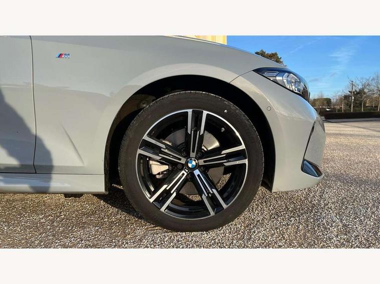 Active guard plus, Attentiveness assist, Automatic Start/stop button, Bluetooth Wi-Fi interface, BMW iDrive, BMW Teleservices, ConnectedDrive Services - last state call, Intelligent voice assist, 2 USB, 4G LTE connect, Live cockpit plus with Navigation + 12.3" instrument display + 14.9" display, Intelligent voice assist, 2 USB, 4G LTE connect, Oil sensor for level and grade, Personal e-SIM, Shifting point display, Double joint spring strut front axle, Fuel tank breather system, Plug and charge, Public mode 3 professional fast charging cable with 5m length, Steptronic Sport automatic transmission with steering wheel mounted gearshift paddles launch control and xtreme drive lever control, DAB tuner, 3rd brake light, Auto dimming rear view mirror, Automatic headlight beam throw control with load dependent regulating reaction, dynamic compensation of braking dive and acceleration squat, Bi-LED Low and high beam headlights, BMW emblem, engine compartment lid and tailgate, Body colour roof fin, Door sill strips, Electric windows - front and rear, with open/close fingertip control, anti-trap facility and comfort closing, Fading support, Follow me home headlight function, Front and rear bumper system with replaceable deformation elements, Front apron plastic in body colour, Fuel filler flap - right rear in body colour, Heat protection glazing on front windows and windscreen, High gloss chrome kidney frame with high gloss black kidney struts, LED daytime running lights, LED rear lights, LED turn indicator, Licence plate panel integrated into front bumper and tailgate, M high gloss shadow line exterior trim, Matt black B-pillar finsher, Matt black window recess cover, Model designation on right side of tailgate, One piece front bumper cover including towing eye cover in body colour, Rain sensor with automatic headlight activation, Rear boot, Rear side wing doors, Reversing lights, Side frame decorative moulding black matt, Trailer stabilisation logic, Visible exhaust tailpipe finisher, Welcome lights in interior and door handle area, Windscreen washer jets, 12V power socket in front storage compartment, 2 front cupholder in centre console with clamping elements and matt black inlay, 3 seat bench in 2nd row, 3 spoke M Sport multifunction flat bottom leather steering wheel, 3 zone automatic air conditioning, 40:20:40 split folding rear seat with loading system, Anthracite headlining, Armrest integrated in front and rear door trim + front centre console armrest, Battery in luggage compartment, BMW ID, Cruise control operation in steering wheel, Driving experience mode switch, Folding rear centre armrest with 2 cupholders, Front and rear headrests, Front and rear velour floor mats, Front reading light, Heated front seats, Height adjustable mechanically and infinitely variable steering column, Illuminated armrest storage compartment, Illuminated glove compartment, Illuminated luggage compartment, Lashing eyelets in luggage compartment, Single front passenger seat, Sunvisors with illuminated vanity mirrors and ticket pocket, Through load system, Toolkit located in luggage compartment, Connected pack professional - 3 Series Saloon/Touring, Interior and exterior mirror pack - 3 Series Touring/Saloon, M sport exterior styling pack - 3 Series Saloon/Touring, Parking assistant pack - 3 Series, 3x3 point rear seatbelts, ABS, Automatic Stability Control (ASC), BMW emergency call, Child locks on rear doors, Cornering brake control, Crash sensor activating of airbags, Unlocking doors, hazard warning lights, interior light, safety battery terminal, Drive-off assistant, Driver and front passenger with seat occupancy detection for driver's and passenger side, Driver and passenger side airbags, body protection at side and airbags deploy from seat backrests, Dry braking, DSC - Dynamic Stability Control, Dynamic brake control, Dynamic Traction Control - DTC, Electric parking brake including automatic hold function and automatic release of the parking brake when driving off, Electronic differential lock control (EDLC), Front airbag deactivation, Front airbags for driver and front passenger, Head airbags in 1st and 2nd row, head protection at side, curtain airbags open from headliner above 1st and 2nd row, Plastic fuel tank, Side impact protection, Tyre pressure sensors, Ventilated front and rear disc brakes, Warning triangle and first aid kit, Alarm system, Centre lock switch, Closing system with central locking, Electronic vehicle immobiliser, Locking wheel bolts, Tyre repair kit,