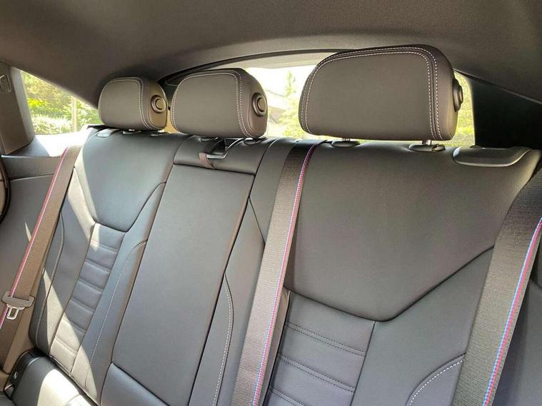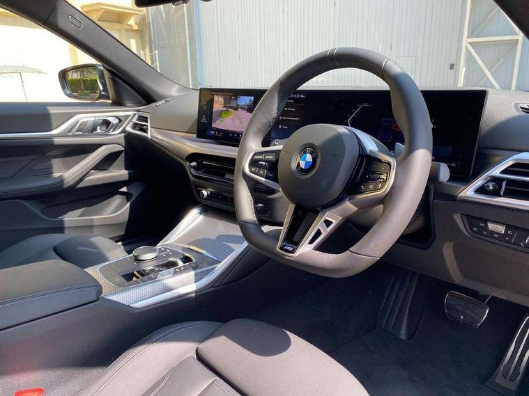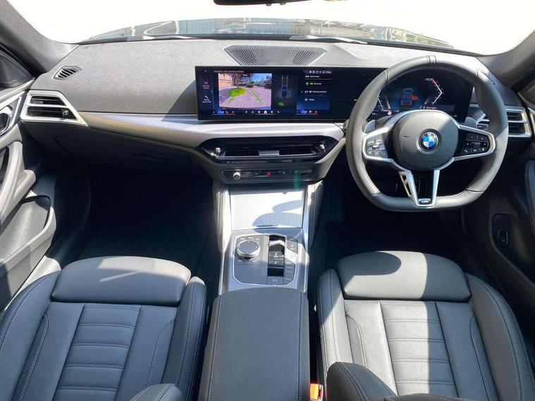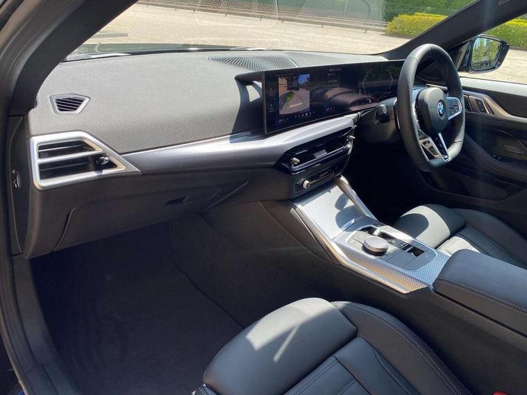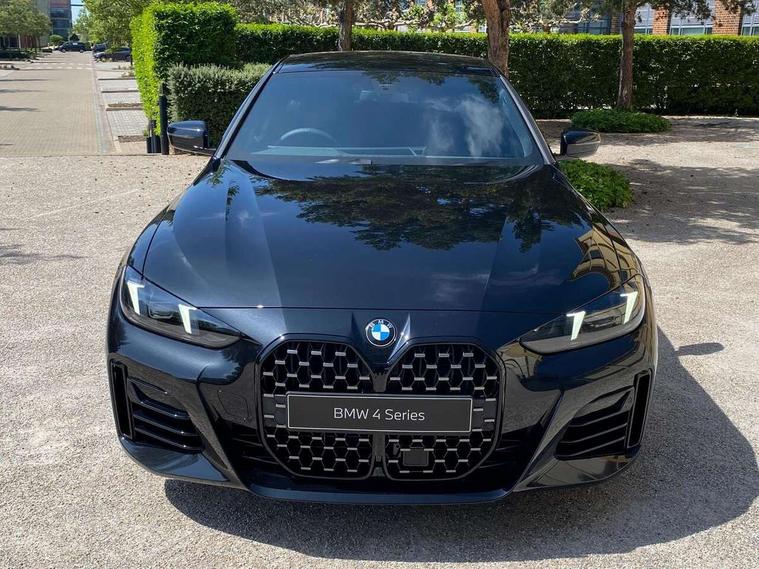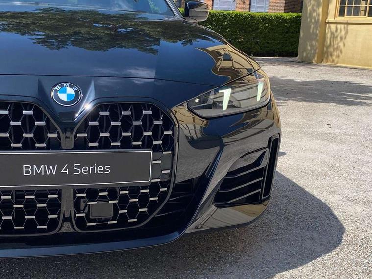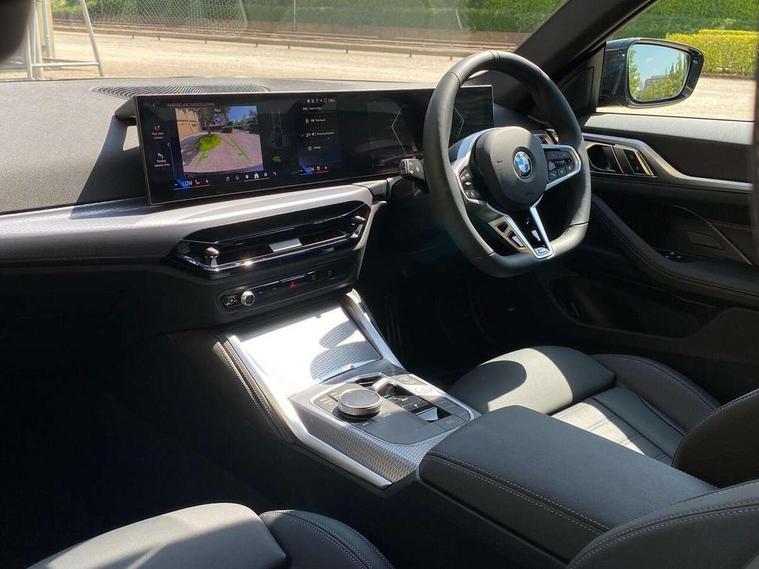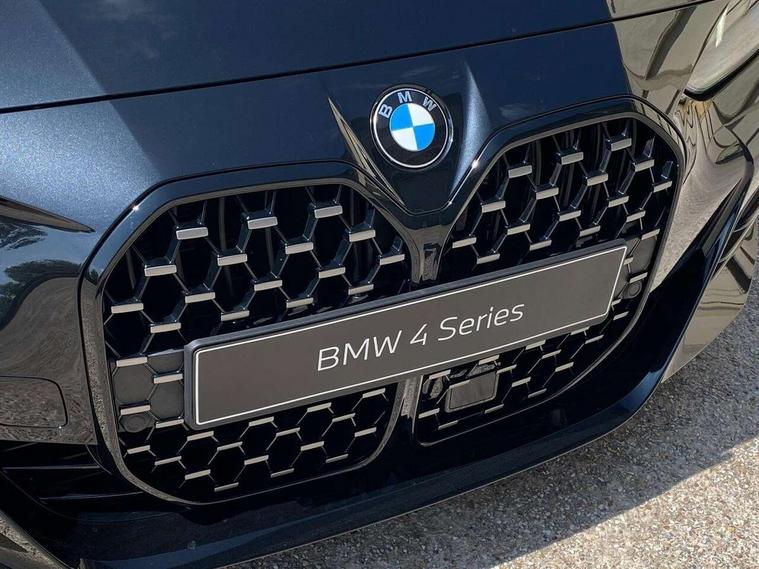 Active guard plus, Attentiveness assist, Automatic start/stop function, BMW ConnectedDrive online services, BMW iDrive controller on centre console, BMW service history, BMW Teleservices, Brake pad wear indicator in front and rear, Check Control warning system for monitoring of lights and door/luggage compartment open warning, Condition based service, Electric bootlid, Electric power steering with Servotronic steering optimised at all speed ranges, Instrument cluster with speedometer with mph readout, tachometer, fuel gauge and oil temperature gauge, Integrated owners handbook, Language version English, Oil sensor for level and grade, On board computer - average speed, fuel consumption, outside temp display with acoustic warning, clock/date, service interval, odometer/trip meter, Run flat indicator, Shifting point display, Start/stop button in black, Variable sport steering, 8 speed automatic steptronic transmission with gearshift paddles, Balanced 50/50 weight distribution, Double joint spring strut front axle, Drive experience mode switch - Comfort mode, ECO PRO mode and SPORT mode, Low centre of gravity, Petrol Particulate Filter, Stroke dependent dampers, DAB tuner, Personal eSim, Acoustic glazing, Automatic headlight beam throw control with load dependent regulating reaction, dynamic compensation of braking dive and acceleration squat, Automatic windscreen wipers and automatic headlight, BMW radiator grille with mesh grille, end face of the nuggets in aluminium matt and frame in chrome matt, Body colour fuel filler flap, Body colour roof fin, Bonnet and tailgate badge, Electric folding wing mirrors - Driver side electrochromic, auto anti dazzle function & front passenger side auto parking function without anti dazzle, Electric windows - front and rear, with open/close fingertip control, anti trap facility and comfort closing function all round, Follow me home headlights, Front and rear bumper system, Front apron plastic in body colour, Green tinted heat protection glazing, Illuminated bow type door handles in body colour drivers side with door lock, Interior rear view electrochromatic mirror with automatic anti dazzle function, LED 3rd brake light, LED daytime running lights, LED front fog lights, LED front indicators, Licence plate panel integrated into front bumper and tailgate, Low and high beam headlights in Bi-LED, M designation on front side panels, left and right, M Sport entry door sill strips, One piece front bumper cover including towing eye cover in body colour, Preparation for high beam assistant, Rear side wing doors, Rear wiper, Reversing light, Side frame trim strip black matt, Two part LED tailights in L-shape with components in smoked glass, brake light, LED turn indicator and rear fog light, Visible exhaust tailpipe finisher, Visible VIN plate, Welcome lights in interior and door handle area, Widened track and increased camber values for max transverse dynamics, agility and steering precision, Windscreen washer jets concealed underneath bonnet, 12V power socket in front centre console, 2 front cupholder in centre console with clamping elements and matt black inlay, 3 rear headrests, 3 seat bench in 2nd row, 3 spoke flat bottom M sport leather multifunction steering wheel, 3 zone automatic air conditioning, 4 pieces lashing eyelets in luggage compartment, 40:20:40 split folding rear seat, folding head restraint of centre seat and rear centre armrest with two cupholders, Anthracite headlining, Armrest integrated in front and rear door trim + front centre console armrest, Battery in luggage compartment, BMW ID, Extended storage - 2x Dual USB Type C 3A charging function in the rear centre console for the rear, Extended storage - Luggage compartment partition net on left side trim panel, Bag hook on both sides of the luggage compartment, Extended storage - Multifunction hook, Extended storage - Trailer tow hitch button in black (extendable trailer tow hitch) on the right hand side, Four grab handles integrated in roof lining, Front and rear door pockets, Front footwell lights, Heated driver and front passenger seats, Height adjustable front headrests, Illuminated armrest storage compartment, Illuminated glove compartment with separate small compartment, Interior light and front reading light, Luggage compartment light, Single front passenger seat, Steering column adjustment - Infinitely variable in height and length, Sunvisors with illuminated vanity mirrors and ticket pocket, Through load system, Toolkit located in luggage compartment, Velour front floor mats, Ambient lighting pack - 4 Series, BMW Live Cockpit Plus pack - 4 Series, Connected professional package - 4 Series, M High gloss shadowline exterior trim pack - 4 Series, M sport exterior styling pack - 4 Series, Park assist pack - 4 Series, 3 point seatbelts on all seats, BMW emergency call, Brake energy regeneration, Braking pre-tensioning, Child locks, Child seat ISOFIX attachment for the two outer rear seats, Crash sensor activating of airbags, Unlocking doors, hazard warning lights, interior light, safety battery terminal, Driver and front passenger side airbags, integrated in the door side seat backrest bolsters for all seat variants, Driver/Front Passenger airbags, Dry braking, Dynamic brake control, Dynamic stability control + (DSC+) - Anti-lock Braking System (ABS) with brake assist and cornering brake control + Automatic Stability Control (ASC), Dynamic Traction Control - DTC, Electric parking brake including automatic hold function and automatic release of the parking brake when driving off, Electronic differential lock control (EDLC), Front and rear ventilated brake disc, Front passenger manual airbag deactivation, Head airbags for all 4 outer seats, Hill start assistant, Seat belt security check for driver and front passenger, Seat belt with belt stopper, pyrotechnic belt tensioners and belt force limiters, Seat occupancy detection for driver and passenger side, Side impact protection, Tyre pressure 