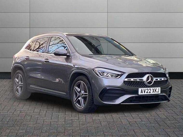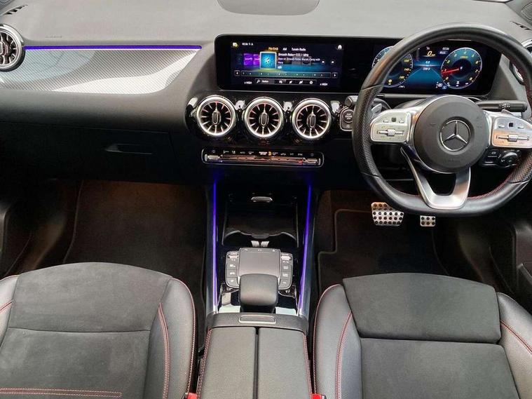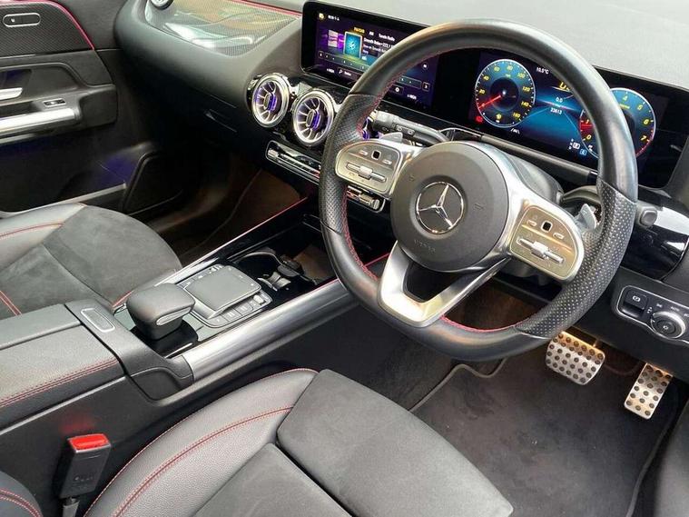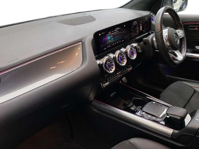 10.25 inch touchscreen central media display, 10.25" Digital instrument cluster display screen, Active lane keeping assist, Attention assist, Cruise control + speed limiter, Direct steering, DYNAMIC SELECT with a choice of driving modes (ECO, Comfort, Sport and Individual), ECO start/stop function, Fluid level warning indicator for fuel, oil, coolant and washer fluid, Hard-disk navigation, Hey Mercedes Voice activation, Lamp failure indicator, Mercedes me connect including emergency call system, accident recovery, breakdown management and maintenance, Mercedes me remote services, Multi function trip computer, Outside temperature gauge, Owners manual and service booklet in English, Pre-installation of private car share, Radio aerial integrated into front and rear windshields, Service indicator (ASSYST), Smartphone integration with Apple CarPlay and Android auto, Speed limit assist, Status display for rear seat belts in instrument cluster, Lowered comfort suspension, Rear axle multi-link, 2 USB ports (type C) in rear stowage compartment and one in front of center console, Bluetooth connectivity including audio streaming, DAB Digital radio, MBUX multimedia system, Media interface, Mercedes-Benz (225w) sound system with 10 speakers, Adaptive brake lights, Aerial for GPS, Aluminium roof rails, AMG front and rear apron, AMG specific/dual flow exhaust pipes in chrome (non-functional), Automatic headlamp activation, Beltline strips and weather strip in chrome, Black grained claddings with chrome parts, Body colour bumpers, Body colour door mirrors, Body coloured door handles with chrome insert for keyless entry, Car wash function, Dark privacy glass from B-pillar backwards, Electric front windows, Electric rear windows, Electrically adjustable and heated door mirrors with integrated LED indicators, Front bumper with underride guard in high gloss chrome, Heated glass rear windscreen + timer control, Heated windscreen wash system, Interior mirror with black reading lamps and frameless, LED high performance headlamps with integrated LED daytime running lights, LED tail lights in two piece design, LED third brake light, Matt titanium grey front and rear apron trim, Rain sensor windscreen wipers, Rear fog lights, Rear side wing doors, Rear wiper, Roof spoiler, Single lamella raditor grille with chrome dotted diamond grille and inlay, 12V power socket in centre console, 3 seat bench in 2nd row, 3 spoke multifunction sports steering wheel in nappa leather with flattened bottom and perforated grip area, 40:20:40 split folding rear seats with backrest, Adjustable head restraints, Air conditioning - Two zone thermotronic luxury automatic climate control with display, Ambient lighting in front headrests, AMG floor mats in black with AMG lettering in front, Artico man-made leather/Microfibre Dinamica upholstery with red contrast stitching, Auto Mercedes-Benz child seat recognition sensor, Black roof lining, Brushed door pulls in silver chrome, Courtesy light in boot, Front centre armrest with stowage, Galvanished gear shift paddles on steering wheel, Heated front seats, illuminated door sills with changeable cover, Illuminated glovebox, Interior lighting - 64 colour Ambient lighting, Leather trimmed gearknob, Luggage net on driver/front passenger seat backrest, Manually height and reach adjustable steering column, Multi-gesture touchpad control on center console, Single front passenger seat, Sports pedals in brushed stainless steel with black rubber studs, Sports seats, Stowage compartment in centre console, Stowage compartment with retractable cover, Sunvisors with illuminated vanity mirrors, Twin front cup holders, Two outer rear seat isofix and top tether child seat fixing points, AMG body styling pack - GLA, Comfort seat pack - GLA Class, Interior lighting with light and sight pack - GLA, Load compartment pack - GLA, Mirror pack - GLA Class, Parking pack - GLA, 3 rear 3 point seatbelts, ABS with Brake Assist, Active bonnet pedestrain safety measure which detects an impact and raises bonnet by 65mm, Active brake assist includes forward collision warning system with autonomous braking, Adaptive brake assist with hold function and hill start assist, Bonnet with power domes, Brake pad wear warning indicator, Childproof locks manually operated for rear doors and electrically operated for rear power windows, Crash responsive emergency lighting, Driver and passenger head and side airbags, Drivers knee airbag, Dual stage driver/passenger airbags, Electronic parking brake, ESP curve dynamic assist, ESP with ASR, Front and rear seatbelt reminder, Front brake callipers with Mercedes Benz logo lettering on front, Front passenger seat occupancy sensor, Internally ventilated brakes with perforated brake discs at the front, Sports braking system, Tyre pressure monitoring system, Warning triangle and first aid kit, Window airbags, Alarm system with immobiliser and interior protection -Thatcham category 1, Keyless entry lock/unlock, Keyless Go starting function, Remote central locking and crash sensor with emergency opening function, Urban guard vehicle protection, Vehicle key with decorative surround in chrome, Carbon structure trim, Chrome air vent surrounds, 19" AMG 5 twin spoke light alloy wheels painted in high gloss black with high sheen finish, Summer tyres, Tirefit tyre sealant kit,