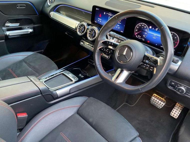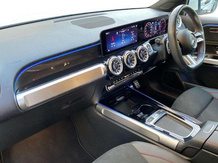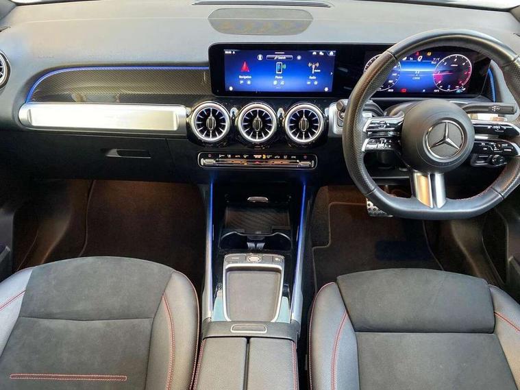 10.25 inch touchscreen central media display, 10.25" Digital instrument cluster display screen, 12 ultrasonic sensors in front and rear bumpers, 180 degree reversing camera with parking guidelines, Additional drive program "OFF-ROAD", Assisted parking: reversing backwards into perpendicular and parallel parking spaces, Attention assist - Monitors steering behaviour and long journey fatigue, Blind spot assist, Bluetooth connection, Brake pad wear indicator warning light, Car wash mode, Convenience opening and closing, Direct steering, DYNAMIC SELECT with a choice of driving modes (ECO, Comfort, Sport and Individual), ECO start/stop function, Engine start/stop button, Exit warning function, Fluid level warning indicator for fuel, oil, coolant and washer fluid, Hard disk navigation, Hey Mercedes Voice activation, Lamp failure indicator, Lane keep assist, MBUX navigation premium, Mercedes me connect including emergency call system, accident recovery, breakdown and maintenance management, Mercedes me remote services, Outside temperature gauge, Owners manual and service booklet in English, Pre-installation of private car share, Preinstallation for parking damage notification, Radio aerial integrated into front and rear windshields, Remote boot closing, Service indicator (ASSYST), Smartphone integration with Apple CarPlay and Android auto, Speed limit assist, Tailgate, Trip computer in multifunction display with current consumption indicator, Ultrasound sensors - positioned in the handle of the tailgate, Wireless charging, Comfort suspension with ride height lowering, Rear axle multi-link, 1 USB-C port in the oddments compartment (Charge + Data transfer), 2 USB-C ports for the rear on the centre armrest (Charge only), 2 USB-C ports under the front centre armrest (Charge + Data transfer), DAB digital radio tuner, MBUX multimedia system, Mercedes Benz sound system (225 W) with 10 speakers, 1 central speaker, speakers on doors, a tweeter on door, one sub woofer + boost amplifier, Pre installation for Mercedes Benz Link, Adaptive brake lights, Adaptive high beam assist, AMG front apron with front splitter in the colour of the vehicle with chrome trim element, AMG rear apron with visible tailpipe trim and chrome trim element, AMG specific/dual flow exhaust pipes in chrome (non-functional), Auto dimming rear view mirror, Beltline trim and window line trim strip in high gloss aluminium, Black grained side sill trim with chrome inlay, Body coloured door handles, Electric adjustable and heated door mirrors with integrated LED side indicators, Electric folding door mirrors, Front and rear electric windows, Headlamp assist automatic headlamp activation, Heat insulating dark-tinted glass starting from B-pillar, Heated glass rear windscreen + timer control, High level LED third brake light, Illuminated door sill panels with Mercedes-Benz lettering, Interior mirror with black reading lamps and frameless, LED high performance headlamps with integrated LED daytime running lights, LED tail lamp, Polished aluminium roof rails, Radiator grille as a diamond grille with chrome pins and central Mercedes star, Rain sensor windscreen wipers, Rear fog lamp, Rear side wing doors, Rear wiper, Single louvre in matt grey with chrome inserts and black highlights, Two visible tailpipe trim elements exhaust, Ultrasonic sensors - positioned in the front and rear bumpers, Wheel arch liners in the colour of the vehicle, 12V socket in the oddments compartment, 3 seat bench in 2nd row, 3 twin spoke flattened multifunction steering wheel in nappa leather - horizontal twin spoke in high gloss black, vertical twin spoke in silver chrome, 4 way adjustable lumbar support, 40:20:40 split folding rear seats, Air conditioning - Two zone thermotronic luxury automatic climate control with display, Air vents with silver chrome surrounds, AMG floor mats, AMG sports pedals with brushed stainless steel surfaces and black rubber studs, Automatic child seat recognition sensor, Black roof lining, Door handles with chrome inserts, Fluorescent jacket, Front and rear headrests, Front centre armrest with stowage, Galvanised steering wheel gearshift paddles in silver chrome, Handle recess lighting, Heated front seats, Height adjustable head restraints, Height/reach adjustable steering column, Interior lighting - 64 colour Ambient lighting, Luggage net on driver/front passenger seat backrest, Single front passenger seat, Sports seats, Stowage compartment with retractable cover, Sun visors with illuminated vanity mirrors, Third row of seats for two people on rear seat, Twin front cup holders, Two outer rear seat isofix and top tether child seat fixing points, Easy pack tailgate, Interior lighting with light and sight pack - GLB, Seat comfort package - GLB, 3 rear 3 point seatbelts, Active bonnet pedestrain safety measure which detects an impact and raises bonnet by 65mm, Active brake assist includes forward collision warning system with autonomous braking, Adaptive brake assist with hold function and hill start assist, Airbags - kneebag for driver, Anti-lock braking system (ABS) with brake assist, Black seatbelts, Bonnet with power domes, Childproof locks manually operated for rear doors and electrically operated for rear power windows, Crash responsive emergency lighting, Curve dynamic assist, Downhill speed regulation (DSR), Driver and front passenger head and sidebags, Driver and front passenger windowbags, Dual stage driver and front passenger airbags, Electric parking brake, Electronic stability programme with acceleration skid control, Front and rear seatbelt reminder, Front brake callipers with Mercedes Benz lettering, Front passenger seat occupancy sensor, Perforated front brake discs, Tyre pressure monitoring system, Warning triangle and first aid kit, Guard 360 degree vehicle protection - Anti theft alarm system, tow away protection with visual, acoustic warning and alarm, Interior monitoring system, Keyless Go Access and drive authorisation sy