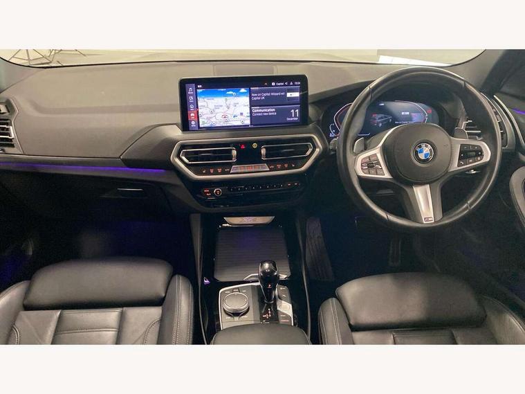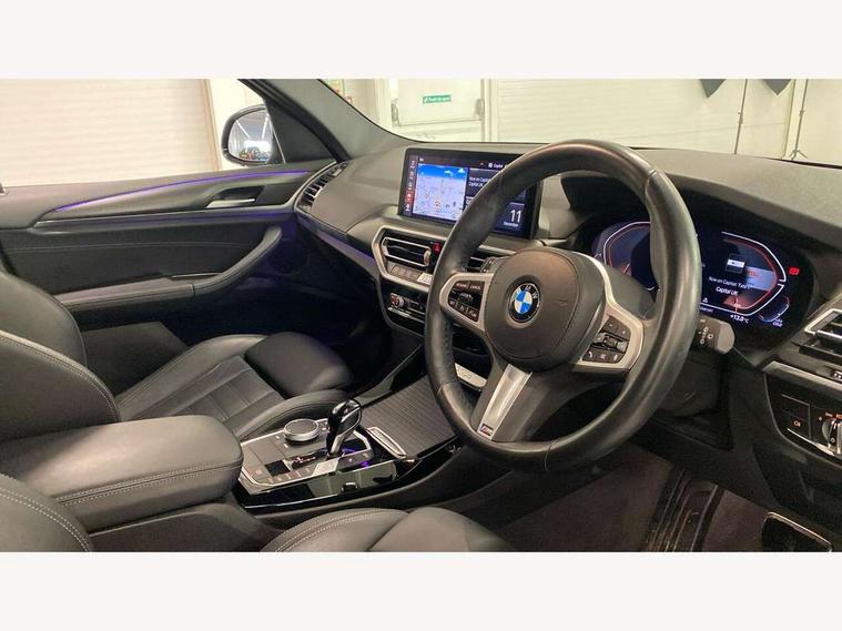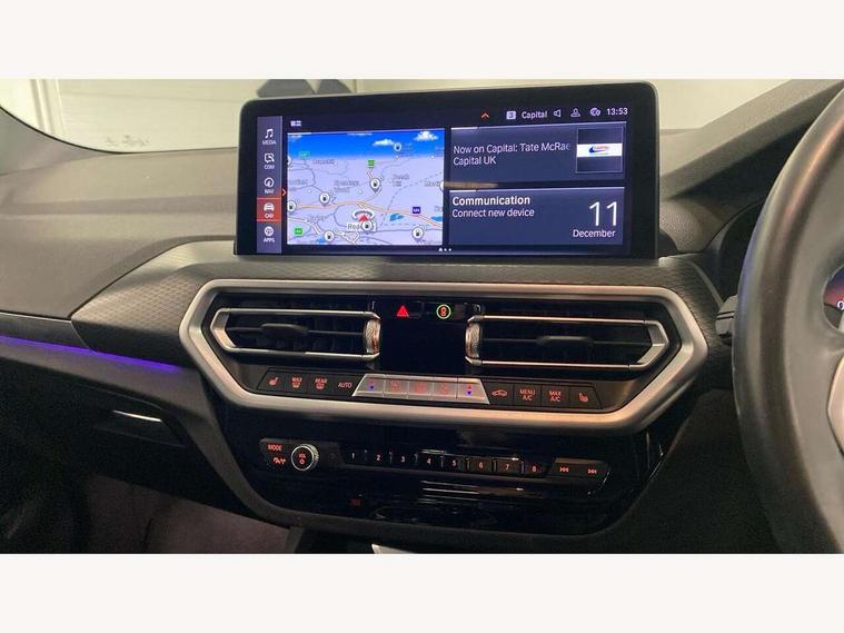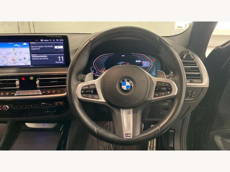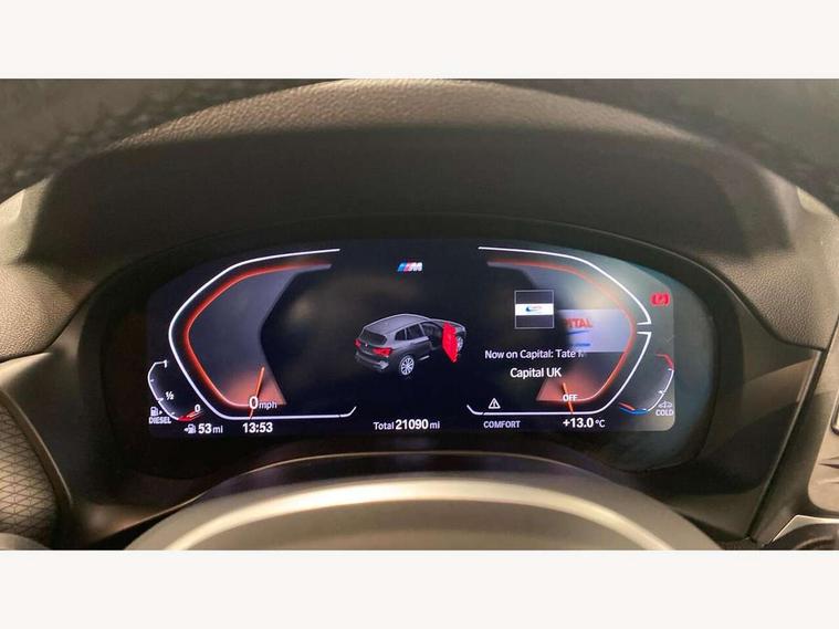 Active Guard, Attentiveness assist, BMW Live Cockpit Professional nav system including 12.3" instrument display + 12.3 high resolution control display, BMW Online services, BMW Teleservices, Brake pad wear indicator in front and rear, Check Control warning system for monitoring of lights and door/luggage compartment open warning, Condition based service - BMW service history, electronic service booklet, integrated owner's handbook, Connected drive services, Cruise control with brake function + speed limiter, Electric boot lid, Front/rear Parking distance control, iDrive Controller with 8 favourite buttons, Instrument cluster with speedometer with mph readout, tachometer, fuel gauge and oil temperature gauge, Lights on warning by audio warning signal when ignition is switched off, Oil sensor for level and grade, warning by check control system, On board computer - average speed+fuel consumption, service interval, clock/date, odometer/trip meter, outside temperature display and ice warning, Optimum shift indicator, Personal Profile - automatic lock when driving away selectable, Run flat indicator, Stop/start system, Variable sports power steering with drive performance control Sport+ mode, Diesel particulate filter, Incorrect fuelling protection, Larger capacity fuel tank, M sport suspension, Multi-link rear suspension, Performance Control, Sport automatic transmission with gearshift paddles, BMW professional radio/CD/MP3, DAB tuner, Acoustic glazing, Automatic windscreen wipers and automatic headlight, Black finish on B pillars, Body colour door handles, Body colour electric adjust heated aspherical door mirrors, Body colour roof mouldings, Body coloured bumpers, Direction indicator, side repeaters, integrated in exterior mirrors, Dynamic brake lights, Exhaust tailpipes - dual, round, split left and right with chrome finisher, Fingertip control / anti-trap function on electric window, Folding wing mirrors with auto dimming, Follow me home headlights, Front and rear bumper system with replaceable deformation elements, Front and rear electric windows, Gloss chrome tailpipes finishers, Green tinted heat insulating glass, Heated windscreen washer jets, High beam assistant, High gloss black shadow line roof rails, High gloss shadowline exterior trim in decorative moulding side frame/recess cover/guide rail/B, C pillars/mirror frame and triangle with mirror base, High level 3rd brake light incorporating LED Technology, Interior rear view electrochromatic mirror with automatic anti dazzle function, LED tail lights, Lightweight engineering, M aerodynamic bodystyling, M Sport entry door sill strips, Model designation, Rear side wing doors, Rear wing door, Rear wiper, Shark fin antenna, Side exterior M designation badges, Visible VIN plate, Welcome lighting, Windscreen wipers with adjustable interval, 12V power socket in front centre console, 3 rear headrests, 3 seat bench in 2nd row, 3 zone automatic air conditioning, 4 lashing points to secure luggage, 40:20:40 split folding rear seat with loading system, Ambient lighting, Anthracite headlining, Automatic interior light when door is opened/ignition switched off or via remote key, Driver seat backrest width adjustment, Floor mats in velour, Foldable storage floor with compartment, Four grab handles integrated in roof lining, Front and rear bottle holders integrated into door trim storage compartments, Front and rear side armrests integrated into door trim, Front centre armrest with storage compartment, Front footwell lights, Front head restraints, Front passenger seat, Front sports seats, Front/rear courtesy lights with soft on/off dimming, Front/rear reading lights, Heated front seats, Isofix rear child seat preparation, Leather gear knob, Luggage area underfloor compartment, Luggage compartment lighting, M sport leather steering wheel, Multifunction steering wheel, Parcel shelf removeable and storable under boot floor, Reach and rake adjustable steering column, Rear centre armrest with 2 cupholders, Removable / retractable luggage cover, Slope adjustable rear seats, Storage compartment in rear centre console and front/rear door trims, Sun visors with vanity mirrors and ticket pocket, Toolkit located in luggage compartment, Two front cupholders with removable oddments tray/lid, Vernasca leather upholstery, Connected pro pack - X3, Driving assistant pack - X3, ADB - Automatic Differential Brake, Anti-lock braking system (ABS) with brake assist, Automatic Stability Control (ASC), Battery safety cut-off, BMW emergency call, Brake drying, Brake energy regeneration, Braking pre-tensioning, Child locks on rear doors, Cornering brake control (CBC), Crash Sensor - activation of central locking release, hazard warning light and interior lighting, Deactivation of fuel pump in the event of a crash, Driver and front passenger front and side airbags with passenger deactivation and ITS front and rear head airbags, DSC+, Dynamic brake control, Dynamic Traction Control - DTC, Electromechanical parking brake, Hill descent control, Hill start assist, Seatbelt security check for front seats, Side impact protection, Three point seatbelts to all seats with front and outer rear pyrotechnic belt tensioners and seat belt force limiters, Two tone horn, Tyre pressure sensor, Ventilated front and rear disc brakes, Warning triangle and first aid kit, Central locking switch for all doors, fuel filler cap and luggage compartment, Electronic engine immobiliser, Locking wheel nuts, Remote control including two integrated key - one button for open/close all lockable content, windows and separate button for open luggage compartment, Remote control Thatcham category 1 alarm, Start/stop button with Comfort Go keyless engine start and auto Start/stop deactivation button, Low rolling resistance tyres,