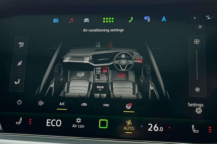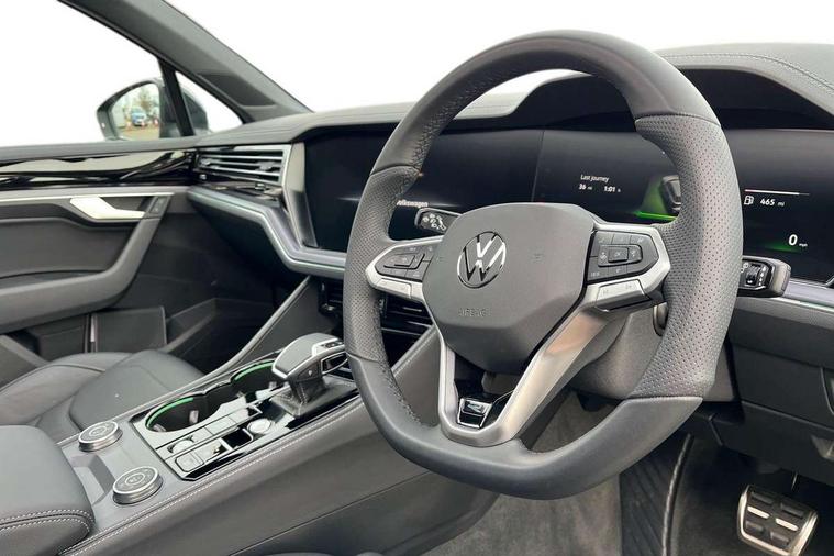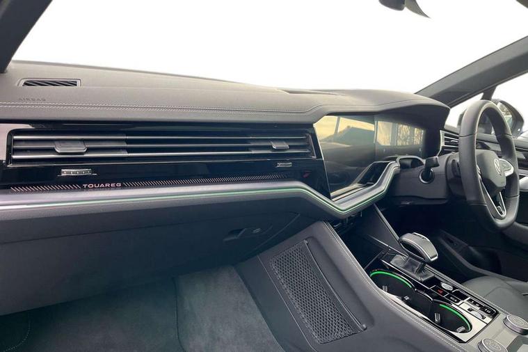 15" Screen Top infotainment system Premium (MIB3), Adaptive cruise control, Advanced driver attention and drowsiness monitor, Driver profile selection, Dynamic road sign display, E-Sim card for online connectivity, eCall emergency system, Innovision cockpit, Intelligent park assist, Mobile phone interface with inductive charging, Multi-colour Active Info display, Park Assist - Sensor controlled steering aid to assist parallel or bay parking, PAS, Warning signal and warning light for front and rear seatbelts not fastened, Wireless app connect, Adaptive chassis control, DAB Digital radio, Diversity antenna for AM/ FM reception, We Connect and We Connect Plus functionality, Automatic coming/leaving home lighting function, Automatic headlights, Black door mirrors, Black style comfort bumpers, Dynamic headlight range control with dynamic cornering light, Electric front tilt/slide panoramic sunroof and fixed rear sunroof, Electrically power adjustable, heated, folding, auto dimming, front passenger exterior door mirror lowering function, External USB type C socket and charging sockets, Gloss black roof rails, HD LED Matrix beam plus digital headlight projection with variable light distribution, Headlight washers, Highway light, LED 3rd brake light, LED daytime running lights, LED rear combination lamp with variable lighting functions and special styling, Poor weather light, Rain sensor, Rear exhaust tailpipe, Rear fog light with back up light on both sides, Rear light bar and illuminated logo, Rear side wing doors, Rear wiper, Stainless steel door sill protection, 12V socket in centre console, 3 rear headrests, 3 seat bench in 2nd row, 4 zone climate control, Airbag label on sun visor and B-pillar, Brushed stainless steel pedals, Double sun visors with illuminated vanity mirrors, Front + rear carpet mats, Front centre armrest, Leather wrapped multifunction sports steering wheel, heated, with touch control and shift paddles, Mechanical rear seat release, Power adjustable lumbar support in front, Power seats in front, right side with memory features and seat cushion depth adjustment, Rear seat backrest and split folding with center armrest, Single front passenger seat, Memory pack plus - Touareg, 3 point seatbelts, outer rear with ECE lable, ABS, Child locks on rear doors, Curtain airbags, Driver and front passenger safety-optimised head restraints, Driver/Front Passenger airbags, Extended pedestrian protection measures, Front assist, Front seat side impact airbags, Generative braking with start and stop system, Height adjustable 3 point front seatbelts with pre tensioners, Passenger airbag deactivate switch, Three 3 point rear seatbelts, Two tone horn, Warning triangle and first aid kit, Alarm system with interior protection, Easy open and close sensor controlled luggage compartment opening and closing with remote unlocking, Keyless Access Keyless locking and starting system with SAFELOCK, Aluminium decorative inserts, Black decorative trims, Gloss black decorative inserts in centre console, Tool kit,