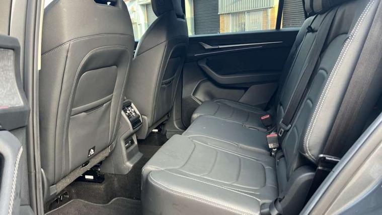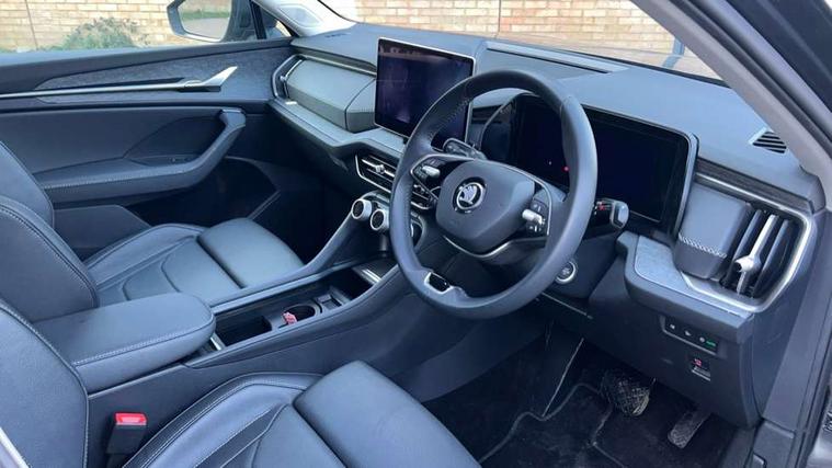 13" satellite navigation touchscreen display, Blind spot detection with door exit warning, Bluetooth system, ChatGPT functionality, Drive mode selector, Driver alert with fatigue sensor, Driver drowsiness alert system, Dry display cleaner, e call+, Front cross traffic assist, Lane assist, PAS, Rear traffic assist, Tailgate unlocking from outside, Traffic sign recognition, USB C Port x 2 in front centre console, Virtual Cockpit - 10.25" digital display, Voice control system, Wireless charging for two smartphones (15W) with cooling function, Wireless SmartLink for Apple CarPlay and Android Auto, Stop/start function, 2x USB-C in the rear, DAB Digital radio, Aero front windscreen wipers with intermittent function, Auto dimming rear view mirror, AWL (all weather lighting) and all weather light with cornering function, Black wheel arch surrounds, Body colour bumpers, Body colour door mirrors and handles, Cornering light and poor weather light, Electric folding /adjustable/separted heated/folding door mirrors, auto dimming with boarding sports and memory function, Electric front and rear windows, Exterior black decorative trims, Heat insulating glass in windshield, Heated rear window, Ice scraper in fuel tank cap, Invisible tailpipe, LED daytime running lights, LED rear fog light, LED third brake light in rear spoiler, Light assistant with automatic headlight control and coming home feature, Logo projection in door mirrors, Privacy glass, Rear side wing doors, Rear spoiler, Rear window wiper, Red decorative strip between rear LED lights, Safety reflectors on front and rear doors, Window control switches with black trim, Windscreen wipers with rain sensor, Without engine designation, 1.5l bottle holder points in all door, 12V socket in boot, 1x centre rear reading light, 2 seat bench in 3rd row, 3 configurable smart dials with 32mm coloured display, 3 seat bench in 2nd row, 4 foldable roof handles with rear coat hooks, Ambient interior lighting - Dashboard, front-door stowage compartments, front and rear door panels and footwell lighting, Automatic gear selector on steering wheel, Chrome interior door handles, Driver/front passenger reading lights, Fabric headlining, Fixed bench 40:60:40 split folding backrests, Front and rear floor mats, Front centre armrest with jumbo box storage compartment, cup holder and 12V socket, Front courtesy lights, Height adjustable front headrests, Isofix child seat fittings in outer middle row rear seats and front passenger with top tether, Manually adjustable steering column, Pollen filter, Rear centre armrest with cupholders, Rear seat boot backrest release, Retractable luggage compartment cover, Single front passenger seat, Sliding trunk cover, Small Bags on the inner sides of the front backrests, Storage pocket including mobile phone pockets on the backs of the front seats, Sunvisors with illuminated vanity mirrors, Three rear height adjustable headrests, Ticket holder on A Pillar, Tri zone climate control, Umbrella in door panel x1 made from sustainable materials, Upper and lower glovebox with card holder and coin compartment, USB C port by rear view mirror for charging only (15W), Exterior styling pack - Kodiaq, Auto door release and activation of warning lights in the event of an accident, Driver and front passenger airbag with knee airbag and front passenger airbag deactivation, Electric child locks, Electronic parking brake, ESC (incl. ABS+EMD+MSR+ASR+EDL+HBA+DSR+RBS+ESBS+MCB+TSA+XDS), Front assist with braking reaction to vehicles, pedestrians and cyclists, Front disc brakes, Fuel cut off safety device, Height adjustable front 3 point seatbelts + pretensioners, Hill hold control, Junction assist with automatic emergency braking, Rear disc brakes, Safety vest holder in door, Seat belt reminder for all seats, Three point rear seat belts, Two tone horn, Tyre pressure monitor, Anti-theft wheel bolts, Immobiliser, Remote central locking with 2 keys, Breakdown kit,
