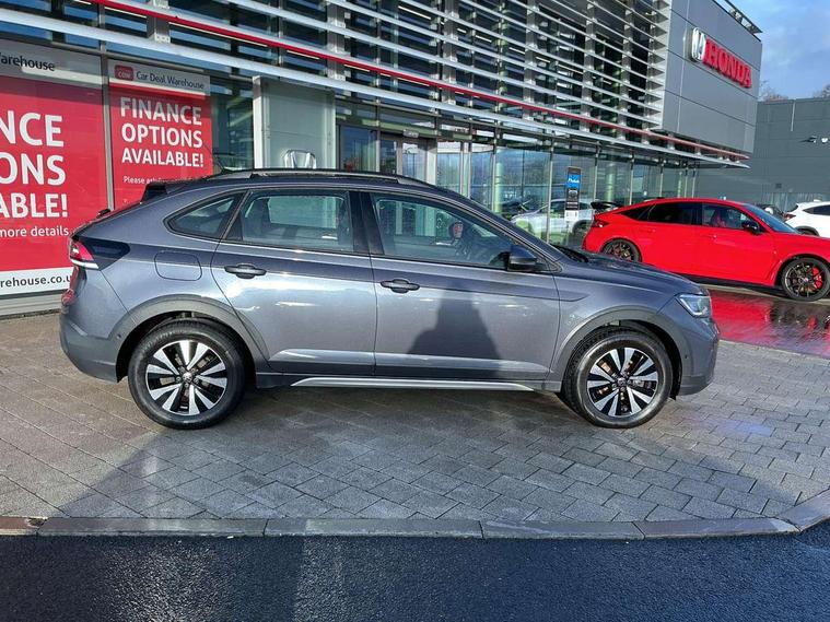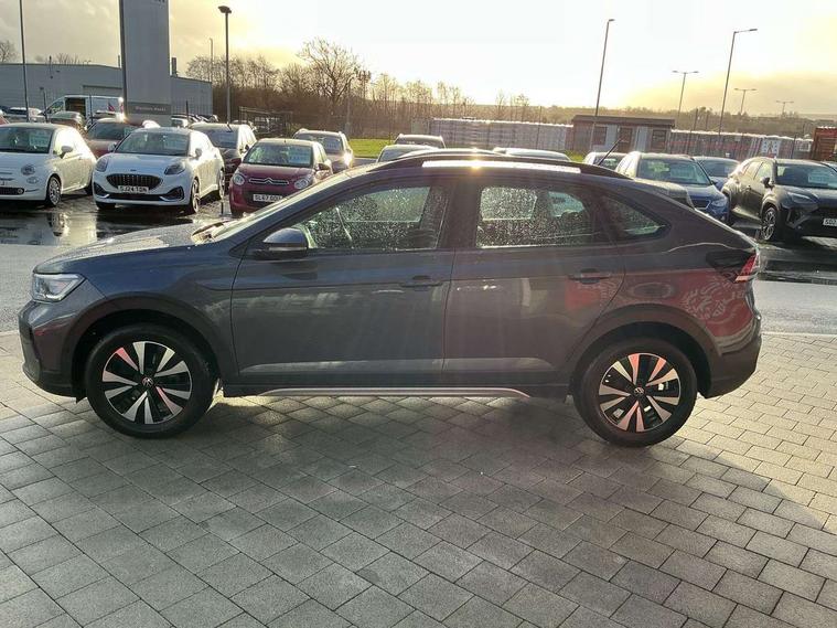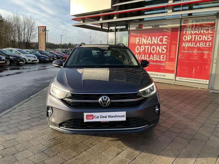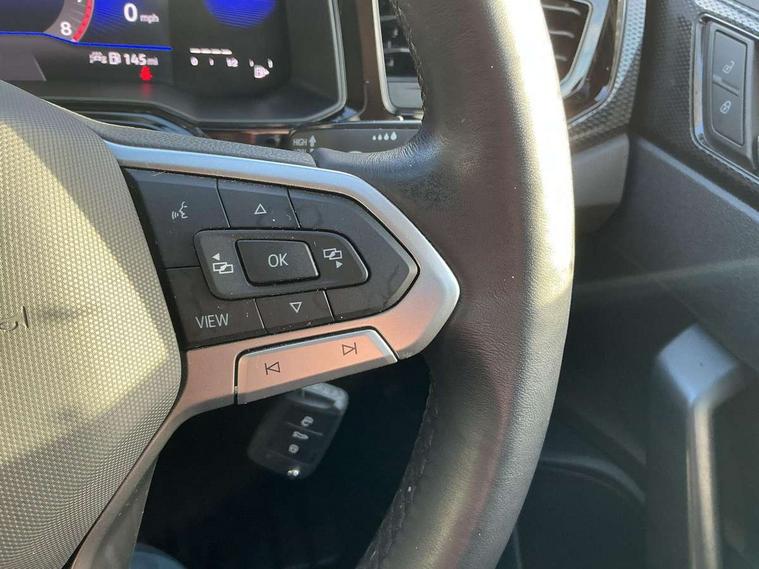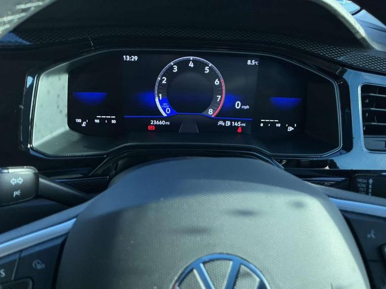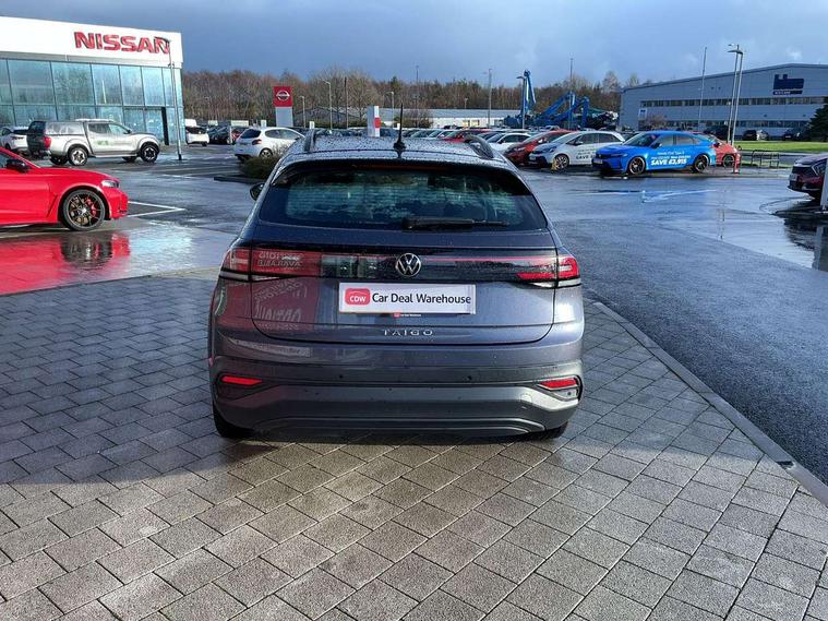 App-Connect including App-Connect Wireless, Driver alert system, e-Call (emergency call), Power Steering, Travel assist including emergency assist, Washer fluid level indicator, Wireless Charging including Bluetooth, Start-stop system with battery regeneration (recuperation - energy recovery during braking), Digital radio reception (DAB+), Diversity antenna for FM reception, WeConnect plus, Ambient lighting with logo projection, Aspherical driver's exterior mirror, Auto headlights, Body coloured bumpers, Body coloured exterior mirror housings and door handles, Electric windows, External USB type C socket and charging sockets, Front fog lamps with cornering function, Headlight range control, Heat insulating glass windscreen, LED headlamps, LED rear combination lamp, LED third brake light, Left convex exterior mirror, Power folding adjustable/heated exterior mirrors and front passenger exterior mirror lowering function, Rear fog light on one side, reversing light on both sides, Rear side wing doors, Rear wash/wipe with intermittent wipe setting, 'Slash/ Austin' Cloth upholstery, 12V socket in centre console, 2 front reading lights, 3 rear head restraints, 3 seat bench in 2nd row, Black carpets, Child seat anchor for child seat system i-Size, 2x top tether and child seat anchor in front on front passenger side, Door and side trim panels in titan black, Driver and front passenger seat height adjustment, Front centre armrest, Handbrake lever handle in leather, Height and reach adjustable steering wheel, Leather trimmed gear knob, Leather wrapped multifunction steering wheel, Luggage compartment floor, Luggage compartment light, Lumbar support for driver's and front passengers seat, Seat covers in titanium black, Single front passenger seat, Split folding backrest with centre armrest and unsplit rear seat bench, Storage compartment under front seats, Sun visors with illuminated vanity mirrors, Chrome Package - Taigo, Drivers assistance pack - Taigo, Light and Sight pack including High beam assist - Taigo, 2 x 3-point seatbelts/outer rear seats with ECE label, 3-point seat belts in front with pretensioner and height adjustment, 3-point seatbelt for centre rear seat, Driver and front passenger airbags with front passenger airbag de-activation, front side and curtain airbags, Driver and front passenger safety-optimised head restraints, Electronic stability control, Extended and predictive pedestrian/ cyclist protection, Front and rear disc brakes, Front curtain and side airbags with center airbag, Hill start assist, Manual rear child locks, Single tone horn, Tyre pressure loss indicator, Anti-theft alarm system with interior monitoring, backup horn, and towing protection, Anti-theft wheel bolts, Lava stone black gloss/matt decorative inserts in dash and front door panels, Low rolling resistance tyres,