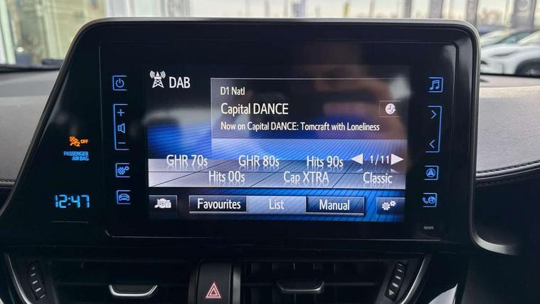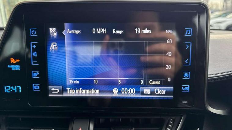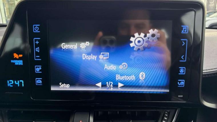 4.2" Colour TFT driver information display, Adaptive cruise control, Bluetooth system, Collision prevention assist, Lane departure warning system, Lights on warning, PAS, Reversing camera, Traffic sign recognition, Trip computer, Vehicle Stability Control (VSC), Auxiliary input socket, Steering wheel mounted controls, USB connection, Auto dimming rear view mirror, Auto high beam, Body colour door handles, Body colour heated door mirrors, Body coloured bumpers, Electric door mirrors, Follow me home headlights, Front and rear electric windows, Front fog lights, Heated rear windscreen, LED daytime running lights, Rain sensitive windscreen wipers, Rear spoiler, Rear wiper, Shark fin roof aerial, 12V Accessory socket, Child seat anchorage points, Chrome interior door handles, Cloth upholstery, Driver/passenger sunvisors and illuminated vanity mirrors, Dual zone automatic air conditioning, Folding rear seats, Front and rear door pockets, Front centre armrest, Front cupholders x 2, Front head restraints, Height adjustable drivers seat, Illuminated entry system, Leather gear knob, Nappa leather steering wheel, Rear headrests, Tilt/telescopic steering column, 3x3 point rear seatbelts, ABS+EBD+Brake assist, Airbag deactivation switch, Driver/Front Passenger airbags, Driver/front passenger side airbags, Drivers knee airbag, ESP + traction control, Front and rear curtain airbags, Hill start assist control (HAC), Rear child proof door locks, Road sign information display, Tyre pressure monitoring system, Alarm, Immobiliser, Remote central locking, Tyre repair kit,