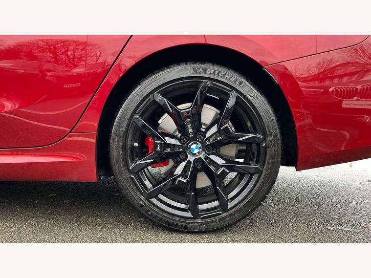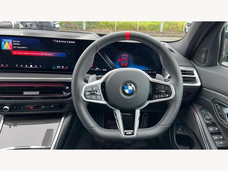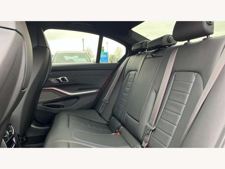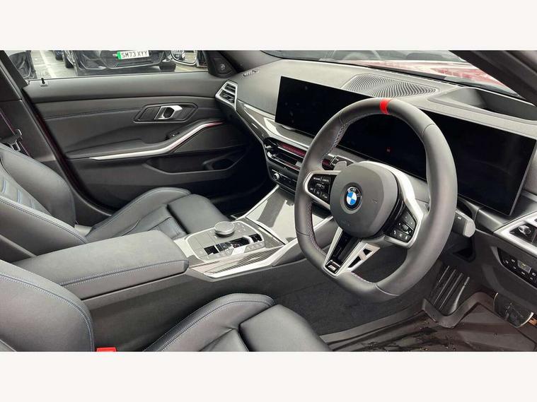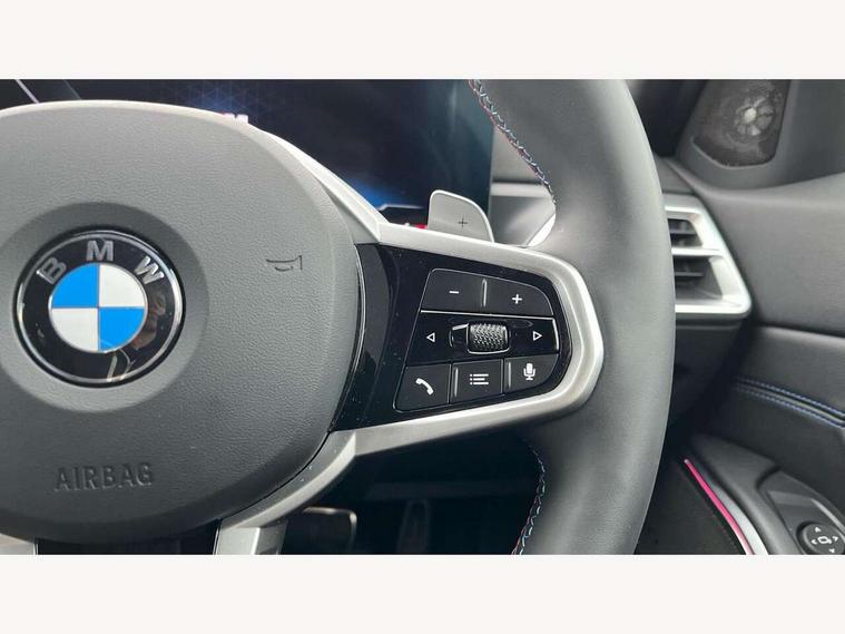 Active guard plus, Attentiveness assist, Automatic Start/stop button, Bluetooth Wi-Fi interface, BMW iDrive, BMW Teleservices, ConnectedDrive Services - last state call, Oil sensor for level and grade, Personal e-SIM, Shifting point display, Variable sport steering, 48V Mild hybrid technology, Double joint spring strut front axle, Fuel tank breather system, M Sport differential, Steptronic Sport automatic transmission with steering wheel mounted gearshift paddles launch control and xtreme drive lever control, DAB tuner, 3rd brake light, Auto dimming rear view mirror, Automatic headlight beam throw control with load dependent regulating reaction, dynamic compensation of braking dive and acceleration squat, Bi-LED Low and high beam headlights, BMW emblem, engine compartment lid and tailgate, Body colour roof fin, Door sill strips, Electric windows - front and rear, with open/close fingertip control, anti-trap facility and comfort closing, Fading support, Folding wing mirror with auto dimming, Follow me home headlight function, Front and rear bumper system with replaceable deformation elements, Front apron plastic in body colour, Fuel filler flap - right rear in body colour, Heat protection glazing on front windows and windscreen, Heated washer jets, LED daytime running lights, LED rear lights, LED turn indicator, Licence plate panel integrated into front bumper and tailgate, M high gloss shadow line exterior trim, Matt black B-pillar finsher, Matt black window recess cover, Model designation on right side of tailgate, One piece front bumper cover including towing eye cover in body colour, Rain sensor with automatic headlight activation, Rear boot, Rear side wing doors, Reversing lights, Side frame decorative moulding black matt, Sun and heat protection glass dark tinted on rear windows and windscreen, Trailer stabilisation logic, Welcome lights in interior and door handle area, 12V power socket in front storage compartment, 2 front cupholder in centre console with clamping elements and matt black inlay, 3 seat bench in 2nd row, 3 spoke M Sport multifunction flat bottom leather steering wheel, 3 zone automatic air conditioning, 40:20:40 split folding rear seat with loading system, Ambient inside door handle light, Ambient light design projected onto the left and right entering and exiting area, Ambient lighting front and rear with 9 selectable colours, Ambient storage compartment lighting in the centre console, Anthracite headlining, Armrest integrated in front and rear door trim + front centre console armrest, BMW ID, Contour lighting in instrument panel and door trim panel, Cruise control operation in steering wheel, Driving experience mode switch, Dynamic ambient lighting for welcome, goodbye, open doors, phone call, Electric memory seats, Folding rear centre armrest with 2 cupholders, Front ambient footwell lighting, Front and rear headrests, Front and rear velour floor mats, Front reading light, Heated front seats, Height adjustable mechanically and infinitely variable steering column, Illuminated armrest storage compartment, Illuminated glove compartment, Illuminated luggage compartment, Lashing eyelets in luggage compartment, Single front passenger seat, Sunvisors with illuminated vanity mirrors and ticket pocket, Toolkit located in luggage compartment, Connected pack professional - 3 Series Saloon/Touring, Interior and exterior mirror pack - 3 Series Touring/Saloon, M sport exterior styling pack - 3 Series Saloon/Touring, 3x3 point rear seatbelts, BMW emergency call, Child locks on rear doors, Crash sensor activating of airbags, Unlocking doors, hazard warning lights, interior light, safety battery terminal, Drive-off assistant, Driver and front passenger with seat occupancy detection for driver's and passenger side, Driver and passenger side airbags, body protection at side and airbags deploy from seat backrests, Dry braking, Dynamic brake control, Dynamic stability control + (DSC+) - Anti-lock Braking System (ABS) with brake assist and cornering brake control + Automatic Stability Control (ASC), Dynamic Traction Control - DTC, Electric parking brake including automatic hold function and automatic release of the parking brake when driving off, Electronic differential lock control (EDLC), Front airbag deactivation, Front airbags for driver and front passenger, Head airbags in 1st and 2nd row, head protection at side, curtain airbags open from headliner above 1st and 2nd row, Plastic fuel tank, Side impact protection, Tyre pressure sensors, Ventilated front and rear disc brakes, Warning triangle and first aid kit, Alarm system, Centre lock switch, Closing system with central locking, Electronic vehicle immobiliser, Locking wheel bolts, Tyre repair kit,