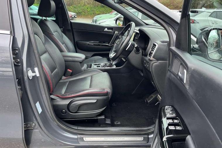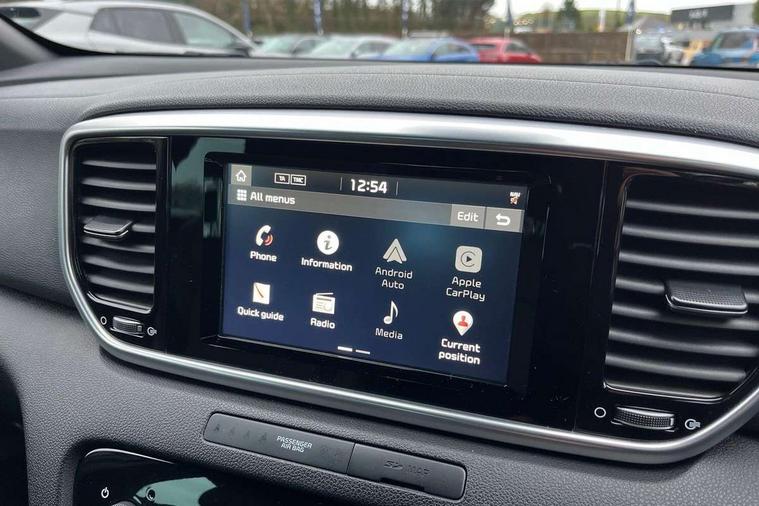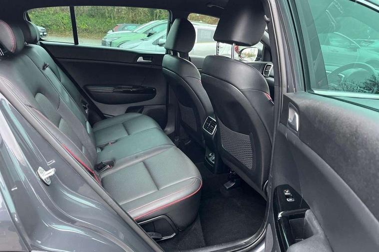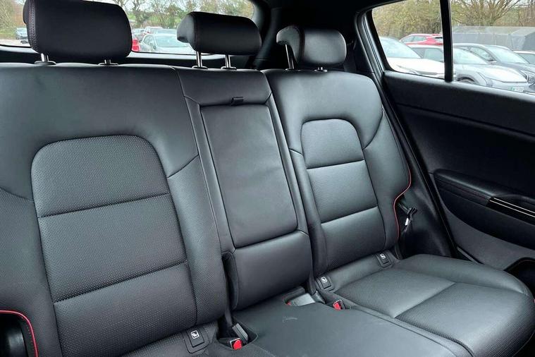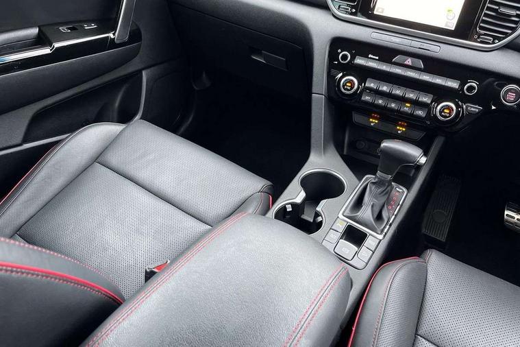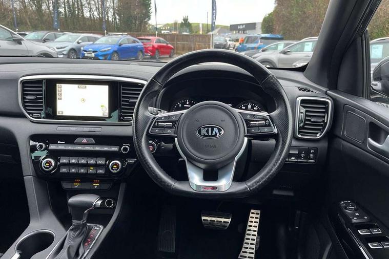 4.2" supervision colour cluster display, 7" touchscreen satellite navigation with European mapping and traffic messaging channel, Android auto with voice control, Apple car play with voice control, Bluetooth connectivity with voice control, Cruise control + speed limiter, Digital clock, Drive mode selector, Driver attention warning, Emergency stop signalling system, Front parking sensor, Kia connected services featuring TomTom live, Lane keep assist, Rear parking sensor, Reversing camera, Speed limit information, Speed sensitive power steering, Trip computer, Windscreen washer level indicator, Intelligent Stop and Go, 6 speaker audio system, Bluetooth audio streaming, DAB Radio with MP3, Rear USB port, Steering wheel mounted audio controls, USB/iPod/auxiliary input connections, All round electric windows with drivers auto up/down function, Auto dimming rear view mirror, Automatic defog system, Automatic headlights, Automatic lighting control, Black wheel arch body mouldings and side sills with dark chrome insert, Body colour door handles with chrome inserts, Body colour door mirrors, Chrome window surround, Cornering light, Dark chrome front bumper insert, Dark chrome grille surround, Dual exhaust pipes, Electrically adjustable/heated/folding door mirrors with LED indicators, Front wiper de-icer, High beam assist, High gloss black blade mesh radiator grille, LED Bi-Function headlights, LED daytime running lights, LED ice cube front fog lights, LED rear lights, Rain sensing front wipers, Rear spoiler, Rear wiper, Roof rails, Shark fin antenna, Silver painted front and rear skid plates, Speed sensitive front wipers, Tinted glass, Trailer stability assist, Welcome and follow-me home light functionality, Wide view drivers door mirror, Windscreen wiper de-icer, 12V power in front and rear centre console, 3 x passenger assist grips, 60/40 split folding rear seat, Air filter, All-round height adjustable headrests, Aluminium door scuff plates, Aluminium pedals, Black headlining, Centre cabin light, Centre console storage box, Chrome boot sill guard, D-Shaped sports leather steering wheel and perforated inserts with GT-Line logo, Door armrest in leather, Driver and front passenger side sunvisors with illuminated vanity mirrors, Driver's seat manual height adjust, Drivers seat power lumbar support, Dual zone automatic air conditioning, Front and rear door storage, Front cabin LED map light with sunglasses case, Front door courtesy reflectors, Front seat and rear pockets, Front/rear centre armrests, Gear shift indicator, Glovebox illumination, Heated front and outer rear seats, Interior door lock/unlock function, ISOFIX Child seat top tethers and anchor fixings, Leather trimmed gearshift, Leather upholstery, Luggage area light, Luggage area load cover, Luggage net with hooks, Paddle shift controls, Perforated leather sports steering wheel, Rear centre armrest with cupholder, Rear coat hooks, Rear headrests, Satin chrome interior door handles, Tilt/telescopic adjustable steering wheel, Ventilation ducts to rear compartment, Active front headrests, All round 3-point seatbelts, Anti-lock braking system with electronic brakeforce distribution, Dual front side airbags, Electronic parking brake, Electronic stability control with downhill brake control, ESP + traction control, Front passenger airbag cut-off switch, Front seatbelt pretensioners + load limiters, Height adjustable front seatbelts, Hill start assist control (HAC), Impact sensing auto door unlocking, Rear door child safety locks, Twin curtain airbags with roll over sensor, Twin front airbags, Tyre pressure monitoring system, Advanced anti-theft system including immobiliser and alarm, Door deadlocks, Engine Start/Stop Button with Smart Entry System, Locking wheel nuts, Speed sensitive auto door locking, Visible vehicle identification number, High gloss black centre fascia, 19" alloy Wheels B-type, Temporary spare wheel,