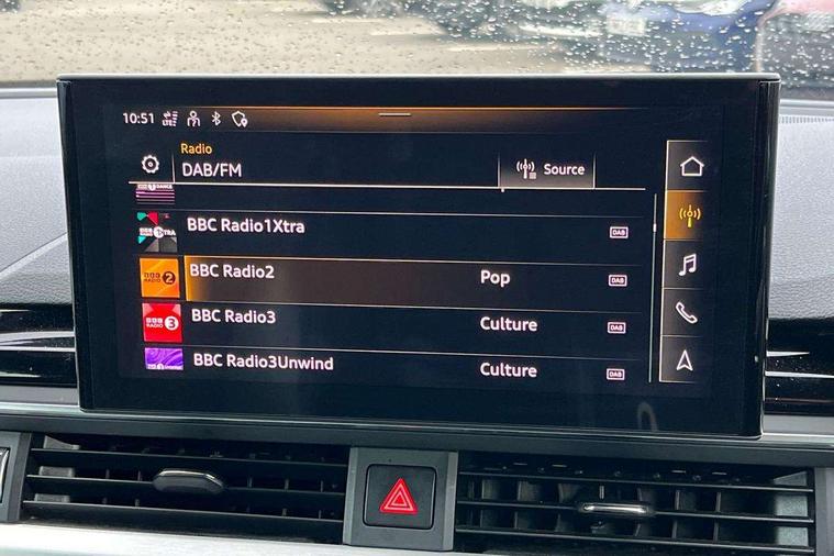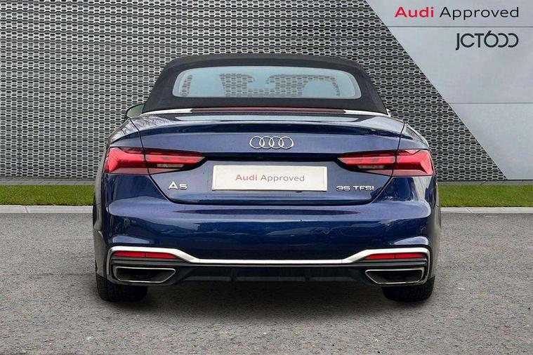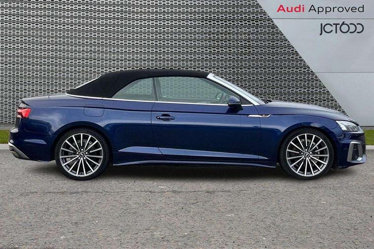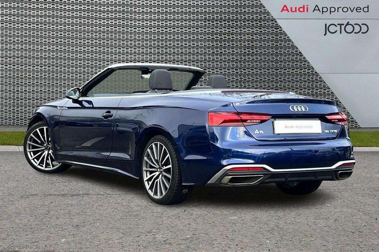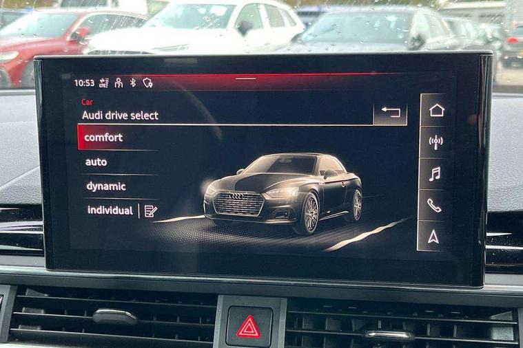 Audi connect safety and service (e-call), Audi connect with Amazon Alexa Integration, Audi drive select (Auto, Comfort, Dynamic and Individual), Audi parking system plus with front and rear sensors, Audi smartphone interface, Audi virtual cockpit - 12.3" full colour digital instrument cluster, vehicle/engine speed, Radio/media information+Driver assistance systems, Automatic start-stop system with coasting functionality and efficiency programme, Bluetooth interface, Electric boot lid release, Electro-mechanical power steering, Email, calendar and text messages displayed via MMI, MMI nav+ with MMI touch - 10.1" high resolution MMI display, touch sensitive, 3D map, route/country info, dynamic route guide, personal route assist, Rear view camera, Service interval indicator, Voice control system, Sports suspension lowered by 23mm, 8 passive loudspeakers, CD player, DAB digital radio reception, Two additional USB ports for rear passenger in rear centre console, Two SDXC card slots, Audi matrix LED headlights with LED rear lights + dynamic front and rear indicators, Auto dimming rear view mirror, Body colour bumpers, Body colour door handles, Body colour front spoiler lip, Body colour side sill trim, Body coloured door mirrors, Electric adjustable heated door mirrors, Electric folding door mirrors, Electric front windows, Front fog lights, Honeycomb structure radiator grille in grained matt black, LED daytime running lights, Matt aluminium silver tailpipe trim, Rain and light sensors, S line badges on front wings, S line front and rear bumpers with side skirts, S Line rear diffuser in matt titanium black with trim strip in matt aluminium silver, Side air inlets in grained matt black with matt aluminium silver inlay, Windscreen with acoustic glazing, 4 way electric lumbar support for driver and front passenger, 50/50 split folding 2 seater rear bench seat, Adjustable steering column, Black cloth headlining, Black perforated leather gearknob, Contrast stitching on seats, steering wheel and gear lever gaiter, Deluxe 3 zone electronic climate control, Front centre armrest, Front head restraints, Front/rear floor mats, Heated front seats, Illuminated door sill trim with S logo, ISOFIX child seat mounting and top tether, Luggage compartment mat, Manual seat adjustment, Rear headrests, Stainless steel pedals, Sunvisors with vanity mirrors, LED interior light pack - A5/RS5, 2 x 3-point rear seatbelts, 6 airbags - Driver, front passenger, curtain and side airbags, Electromechanical parking brake, Electronic Stabilisation Control (ESC) including ABS, ASR and EDL, Front passenger airbag deactivation, Height adjustable front seatbelts, Hill hold assist, Multi collision brake assist, Pop-up bonnet for pedestrian protection, Pre sense city, Seatbelt monitoring, Tyre pressure warning, Variable restraint system, Warning triangle and first aid kit, Anti theft alarm system, Anti theft wheel bolts, Immobiliser, Keyless Go, Remote central locking, Matt brushed aluminium inlays, Tool kit, Tyre repair kit,