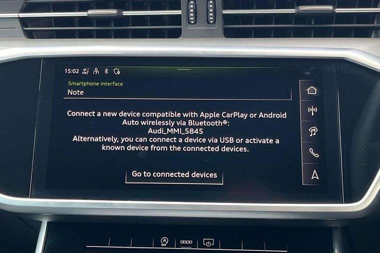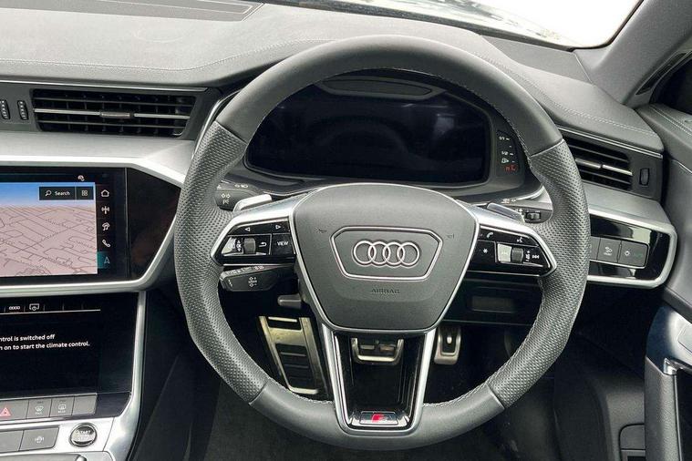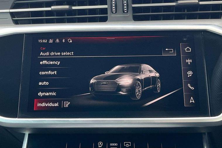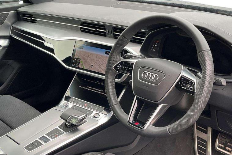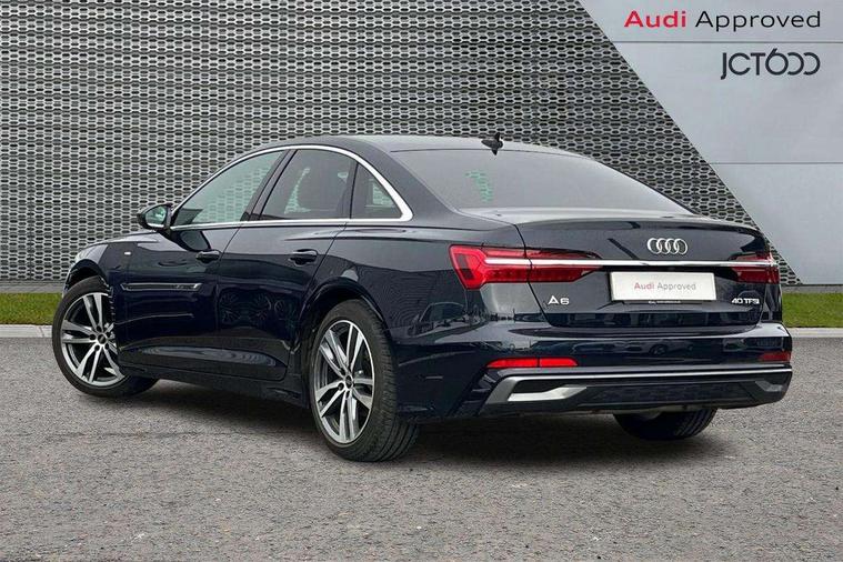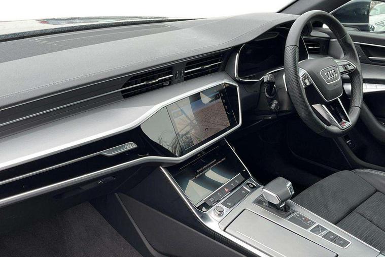 Audi connect safety and service (e-call), Audi connect with Amazon Alexa Integration, Audi drive select, Audi parking system plus - acoustic and visual park assist system for front and rear, Audi virtual cockpit, Automatic start/stop system with coasting functionality, Bluetooth interface, Camera based traffic sign recognition, Electric boot lid release, Lane departure warning system, MMI navigation plus with 10.1" and 8.6" touch screens, Progressive steering, Rear view camera, Service interval indicator, Smartphone interface includes wireless Apple carplay/Android Auto, Voice control system, Sports suspension, Audi front music interface, Audi sound system, Auxiliary input socket, DAB Digital radio, USB connection, Body coloured door mirrors, Electric front/rear windows, Electrically adjustable heated and folding + automatically dimming exterior mirrors with memory function, Frameless auto dimming interior rear view mirror, Front intermittent wipers, Heat insulating darkened glass in side and rear windows, Heat insulating glass in windshield, LED rear lights with dynamic indicators, LED signature front daytime running light, LED third brake light, Matrix LED headlights, Matt black rear diffuser with diffuser strip and tailpipes in chrome, Matt black side air intake grille with inlay in matt aluminium, Privacy glass, Radiator grille in anthracite black matt, single frame in chrome and horizontal struts in matt aluminium silver, Rain and light sensors, Rear boot, Rear side wing doors, 2 zone deluxe electronic climate control, 3 spoke high multi-function perforated leather steering wheel with contrast stitching and shift paddles, 40/20/40 split folding 3 rear seat bench in 3 parts with rear centre armrest, Audi phone box light, Black cloth headlining, Electrically adjustable front seats including seat height, fore/aft position, backrest angle and 4-way lumbar with memory for driver's seat, Front and rear floor mats, Front centre armrest, Front head restraints, Heated front seats, Height/reach adjust steering wheel, Illuminated door sill trims with S logo, Illuminated sun visors with vanity mirrors, Leather gear knob, Rear headrests, Single front passenger seat, Stainless steel pedals and foot rest, Tool kit and car jack, LED Interior Ambient Lighting Pack - A6, Non smoking pack - A6, S line exterior style pack - A6, 3 point seatbelts on all seats, Airbags - Front side, front and rear including head, Audi pre-sense front, EBD - Electronic brakeforce distribution, Electromechanical parking brake, Electronic Stability Control (ESC) including ABS, ASR and EDL, Extended pedestrian protection measures, ISOFIX child seat mounting for front passenger seat and ISOFIX child seat mounting with Top Tether for outer rear seats, Manual child proof rear door locks, Seatbelt monitoring, Tyre pressure warning light, Warning triangle and first aid kit, Anti theft alarm with tow away protection, Anti-theft wheel bolts and wheel loosening detection, Immobiliser, Keyless Go, Remote central locking, Matt brushed aluminium inlays,