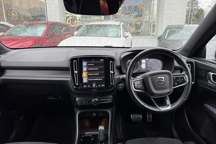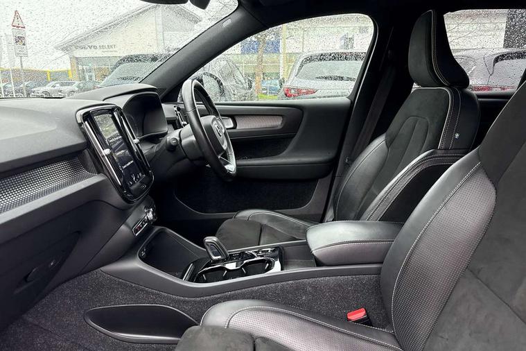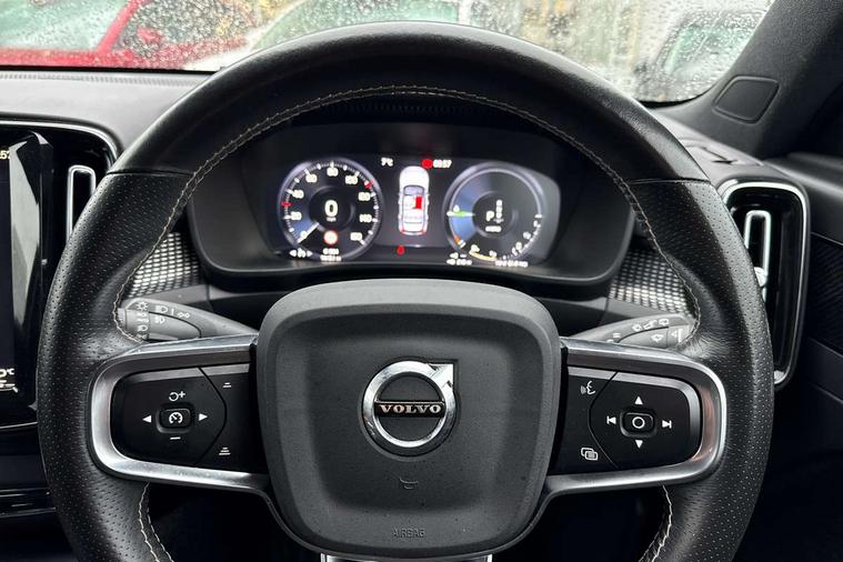 12.3" Active TFT crystal driver's instrument display, 9" centre console portrait touch screen, Adjustable steering wheel force, Bluetooth hands free telephone kit, Drive mode selector, Lane keep assist with driver alert control, Oncoming Lane Mitigation, Sensus navigation with European mapping and traffic information, Speed limiter, Speed sensitive steering, Voice activated control for key functions, Volvo on call, Electric front axle drive, Recharging port located in nearside front wing, Sports chassis, DAB Digital radio, Steering wheel mounted remote controls, Active bending headlights, Adaptive brake lights with high level LED brake lights, Auto dimming interior mirror, Automatic headlamp levelling, Black stone door mirrors, Black stone roof, Colour coordinated auto folding and heated power door mirrors, Dark tinted windows for rear door side windows and cargo compartment, Dual integrated exhaust pipes with high gloss black surround, Front aluminium tread plates, Front and rear electric windows, High gloss black front and rear skid plate, High gloss black lower front bumper, High gloss black mesh front grille with high gloss black surround, High gloss black roof rails, High gloss black sensus surround deco, High gloss black window trim, Home safe and approach lighting, LED front fog lights with static cornering light function, LED Headlights + Active high beam incorporating daytime running lights, Rain sensor with automatic windscreen wiper activation, Rear side wing doors, Rear wiper, Roof antenna, Roof spoiler, Visible VIN plate, 12V socket in front tunnel console and cargo compartment, 2 zone electronic climate control and rear air vent, 3 seat bench in 2nd row, 60/40 split folding rear seat, Ambient front door and instrumental panel lighting, Black headlining, Bright metal luggage threshold, Centre console cupholders and storage, Driver's side lower dashboard credit card storage compartment, Front door pocket and front cupholder illumination, Front footwell illumination, Front headrests, Front reading light and theatre lighting, Glovebox bag hook, Height/reach adjustable steering column, High gloss centre tunnel deco, Illuminated glovebox, Illuminated luggage compartment, Illuminated tailgate, Illuminated vanity mirrors, Isofix attachments on rear seats, Key integrated remote, Leather gearknob, Load protection net, Multi directional lumbar support, Multicolour theatre lights, Rear armrest / integral cup holders / storage tray, Rear coat hook, Rear reading and courtesy lights, Single front passenger seat, Sports Leather steering wheel, Sports pedals, Underfloor cargo storage, 3x3 point rear seatbelts, City safety includes pedestrian, cyclist and large animal detection and front collision warning with full auto brake, Drivers knee airbag, Dual stage driver/passenger airbags, Electronic parking brake with auto hold, First aid kit, Front and outer rear seatbelt reminder and pretensioners, Front seats SIPS airbags, Hill descent control, Hill start assist, Inflatable curtain, Passenger airbag cut-off device, Road sign information display, Run off Road Mitigation, Run off Road Protection, SIPS (Side Impact Protection System), Slippery road and hazard light alert, Stability and Traction Control with Spin control, Engine Drag Control and Corner Traction Control, Tyre pressure monitoring system, Vehicle deceleration control with Anti-lock Brake System, Electronic Brake Distribution and Emergency Brake Assist, Warning triangle, WHIPS whiplash protection system - front, Anti-theft alarm including immobiliser/volume sensor + level sensor, Care key with user defined top speed, Key integrated remote control central locking + fuel flap with deadlocking system and auto open/close power windows, Locking wheel nuts, Private locking for tailgate, Cutting edge aluminium inlay,