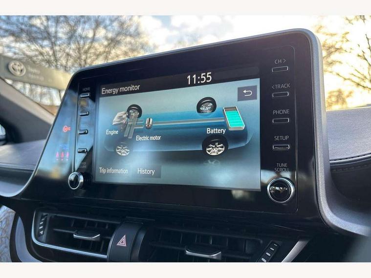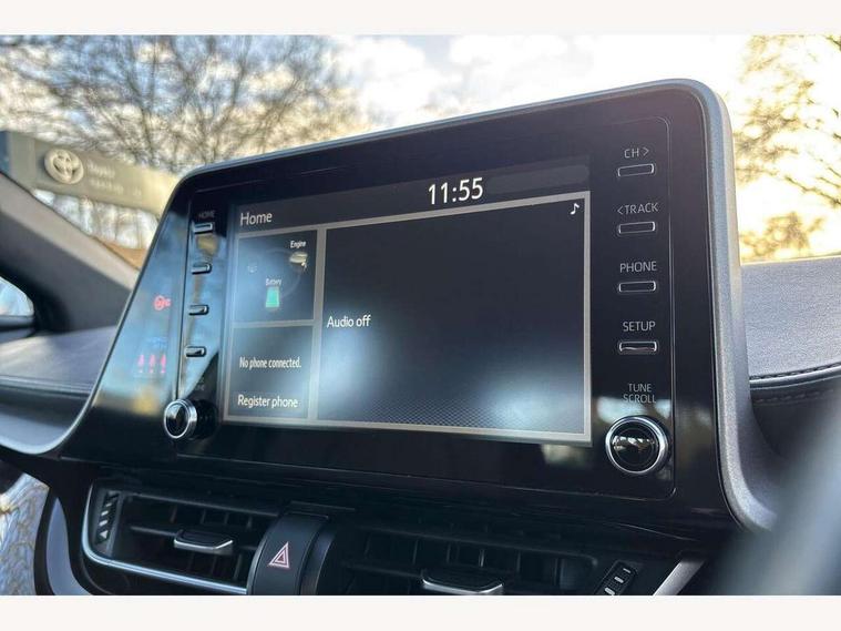 4.2" coloured TFT screen for multi-information display, Adaptive cruise control, Bluetooth connectivity, E-call, Electric power steering, Hybrid system indicator, Lane departure alert with steering control, Remote boot door release in cabin, Remote boot door release in key, Reversing camera, Road sign assist - RSA, Trip computer, Voice recognition, Vehicle Stability Control (VSC), 6 speakers, AM/FM radio, DAB Radio (Digital Audio Broadcasting), Toyota touch 2 multimedia system with 8" display, USB connector, Wi-fi connectivity, Anti-jam protection on power windows, Auto high beam, Auto up and down function on all power windows, Automatic headlights, Automatic headlights cut-off, Black and body coloured rear bumper, Black upper front grille, Body colour door handles, Body colour door mirrors, Body colour front spoiler lip, Body coloured front bumper, Boot door release with push button, Electric heated door mirrors, Follow me home headlights, Front and rear power windows, Front fog lights, Honeycomb lower front grille, LED daytime running lights, LED front light guide, LED High mounted stop light, LED rear brake lights, LED rear combination lights, Manual headlight levelling, Manually retractable door mirrors, Noise reduction layer on front windows and windscreen, Power adjustable door mirrors, Rain sensor, Rear side wing doors, Rear spoiler, Rear tailgate, Rear window defogger, Rear window wiper, Reflective LED headlights, Shark fin antenna, UV-filter on driver and passenger windows, UV-filter on rear windows, 12v power outlet - front, 3 rear headrests, 3 seat bench in 2nd row, 3 spoke leather steering wheel, 60/40 split folding rear seat, Adjustable rear headrests, Adjustable speed limiter switch on steering wheel, Assist grips front and centre pillar, Audio and telephone switches on steering wheel, Black front door assist grips, Boot light, Chrome interior door handles, Cloth upholstery, Driver and front passenger personal light, Driver and front passenger Whiplash Injury Lessening seats, Dual zone automatic air conditioning, Floor mats, Front cupholders, Front head restraints, Front sports seats, Glovebox with internal light, Hard tonneau cover, Hooks for luggage holding net, Humidifying Nanoe air purifier, Illuminated entry system, Isofix attachments on outer rear seats, Leather gearshift, Light on driver sun visor, Light on passenger sun visor, Manual telescopic steering wheel, Manual tilt steering wheel, Manually adjustable lumbar support on driver seat, Manually height adjustable driver seat, Manually height adjustable front passenger seat, Manually reclining driver seat, Manually reclining front passenger seat, Manually sliding driver seat, Manually sliding front passenger seat, Microphone on front personal light, Mirror on driver sun visor, Mirror on passenger sun visor, Multimedia switches on steering wheel, Pollen filter, Shopping bag hooks, Slow opening on lower glovebox, Voice recognition switch on steering wheel, 16 Disk front wheel brake, 3x3 point rear seatbelts, ABS+EBD+Brake assist, Electronic parking brake, Front and rear seatbelt reminder, Front passenger airbag on/off switch, Hill start assist control (HAC), Pre collision system with pedestrian detection, Pre-tensioners and force limiters, Rear door child safety locks, SRS Airbags - Driver + Front passenger, front side, front and rear curtain and driver's knee airbags, Toyota safety sense, Tyre pressure monitoring system, Acoustic vehicle alert system (AVAS), Glass-breaking alarm sensors, Immobiliser, Intrusion alarm, Intrusion sensor, Motion sensor alarm, Power door locks, Power passenger window lock, Remote central locking, Black lower dashboard, Black upper dashboard, Grey deco line on upper dashboard, Matte black centre console, Tyre repair kit,