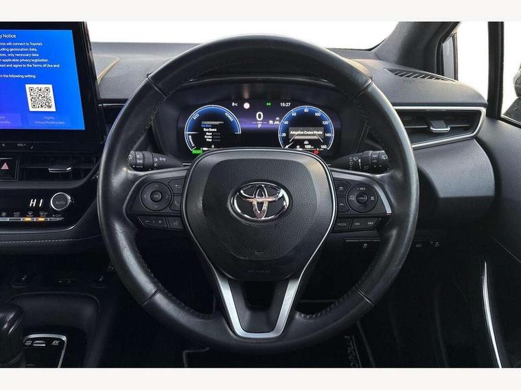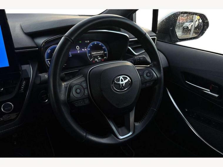 10.5" Multimedia display screen, Attention assist, Bluetooth telephone connectivity, Connected car functionality upgrade, tracker, remote status and e-care, Drive mode select (Eco, Normal), E-call, Electrically assisted power steering, EV drive indicator, Front and rear parking sensors with auto brake, Full Digital 12.3" TFT Digital Combimeter, Key reminder warning, Lane Departure Alert (LDA) switch on steering wheel, Memory on adjustable speed limiter, MyT connected services, Proactive driving assist (PDA), Reversing camera, Smart entry and push button start, Smartphone integration with Apple CarPlay and wired android auto, Tailgate, Toyota remote services, Toyota smart connect navigation, Wireless charger, Gasoline particulate filter, Vehicle Stability Control (VSC), 6 speakers, AM/FM radio, DAB Digital radio, Front USB-C in dashboard, Smart voice assist/ Voice recognition, USB and Aux in connectors + 12V front outlet, Anti-jam protection on power windows, Auto up and down function on all power windows, Automatic headlights with high beam assist, Black centre and side air vents, Black meshed front grille, Black roof rails, Black toyota logo in front, Body coloured bumpers, Body coloured door mirrors, Body coloured front spoiler, Body coloured outside door handles, Body coloured rear under guard, COROLLA alloy door scuff plates, Follow me home headlights, LED daytime running lights, LED front fog lights, LED High mounted stop light, LED multi beam headlights, LED multi reflector in headlights, LED rear combi lights with LED lightguide, Manual day/night rear view mirror, Manual headlight levelling system, New grille pattern, Noise reduction layer on front windows, Noise reduction layer on windscreen, Piano black diffuser, Power adjustable heated door mirrors, Power front windows, Power rear windows, Rain sensor, Rear side wing doors, Rear window defogger, Rear window wiper, Roof spoiler, Satin chrome insert on front air vents, Satin chrome insert on front door assist grips, Satin chrome inserts on rear passenger air vents, Shark fin antenna, Time adjustment on intermittent wiper, Turning signal integrated indicators in door mirrors, Unique lower skirt, Unique side rocker with black insert, UV-filter on driver and passenger windows, 12v power outlet - luggage side, 2 Shopping bag hooks in luggage compartment, 3 rear headrests, 3 seat bench in 2nd row, 3 spoke leather steering wheel with satin insert + gear knob, 4 tie down hooks in luggage compartment, 60/40 split folding rear seat, Adaptive cruise control (ACC) switch on steering wheel, Adjustable speed limiter switch on steering wheel, Audio, multimedia and telephone switches on steering wheel, Black armrest on centre console box, Black gear shift console, Boot light, Boot underfloor storage, Driver and front passenger personal light, Driver and passenger assist grip, Driver and passenger sun visor with mirror and light, Dual level boot floor, Dual sided deck board in boot, Dual zone automatic air conditioning with ECO mode switch, Fabric upholstery, Front and rear cup and bottle holders, Front and rear door pockets, Front head restraints, Front passenger seat, Front sliding fabric armrest, Heated seats, Illuminated entry system in room lamp, ISOFIX seat fixing (2 fixings on rear outer seats), Leather gear shift with satin chrome on gear shift console, Manual height adjustable for driver and front passenger seat, Manually tilt with sliding driver and front passenger seat, Passenger seat back pocket, Pollen filter, Power adjustable lumbar support on driver seat, Power window switches with satin chrome inserts, Rear armrest with 2 cupholders, Rear passenger coat hooks (2), Rear passenger personal lights, Remote air conditioning, Retractable tonneau cover with luggage partition net, Satin chrome inside door handles, Satin chrome surround on heater control panel, Satin chrome surround on speedometer, Side storage in boot, Sliding armrest on centre console box, Slow opening glovebox with lights, Textile floor mats, Tilt/telescopic steering column, Tonneau cover with under floor storage, Toyota easy flat system, Voice recognition switch on steering wheel, Whiplash Injury Lessening (WIL) feature (active headrest) for seats, Toyota safety sense 3 pack - Corolla, 3x3 point rear seatbelts, Adjustable driver and front passenger seat belt extender to top anchor point, Anti lock braking system + Electronic brake force distribution, Brake assist function, Child locks on rear doors, Downhill Assist Control (DAC), Electronic parking brake, Emergency brake light signal (EBS), Front passenger airbag on/off switch, Front seatbelt reminder, HAC - Hill start assist control, Rear seat belt reminder, Seatbelt pretensioners and force limiters, Supplemental restraint system (SRS) 7 airbags - dual driver, dual side curtain, side impact and driver knee airbags, Traction control, Tyre pressure warning system, Acoustic vehicle alert system (AVAS), Alarm with motion sensor and immobilizer, Power passenger window lock, Remote central locking + deadlocks, Satin chrome dash trim, Soft touch texture on upper dashboard, Stitching on lower dashboard, 16" 5 double spoke alloy wheels, Tyre repair kit, Unique wheel finish with red wheel cap,
