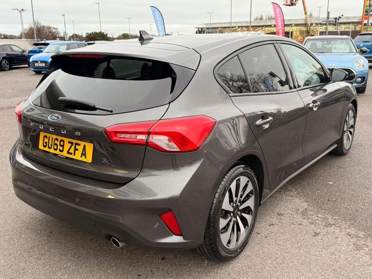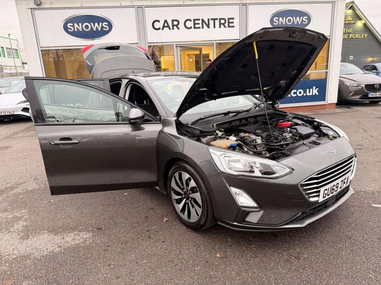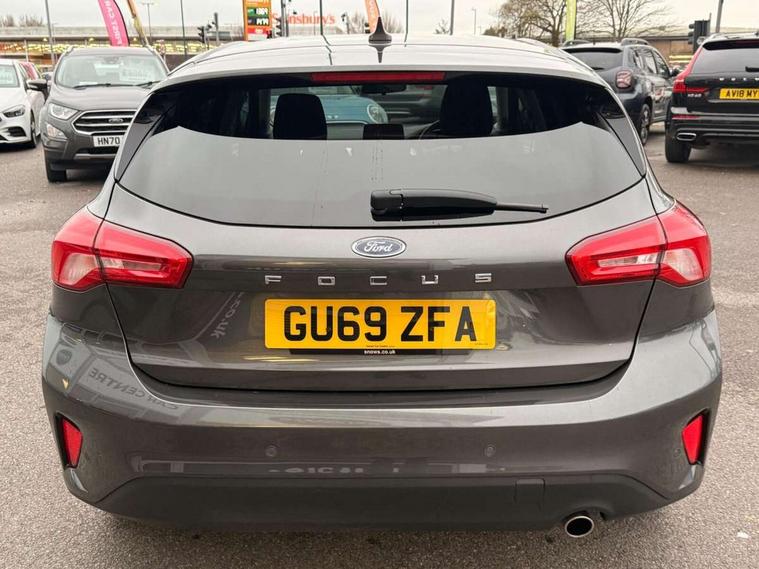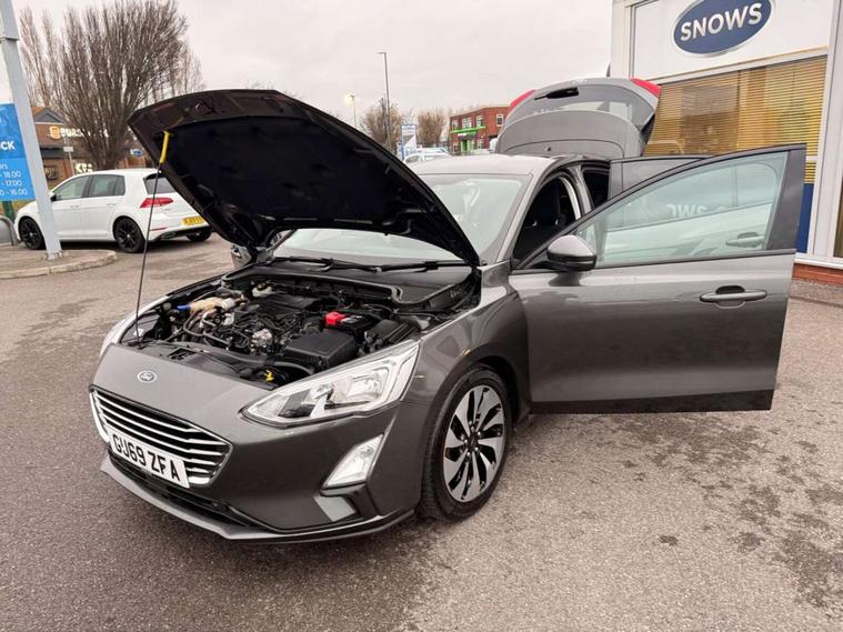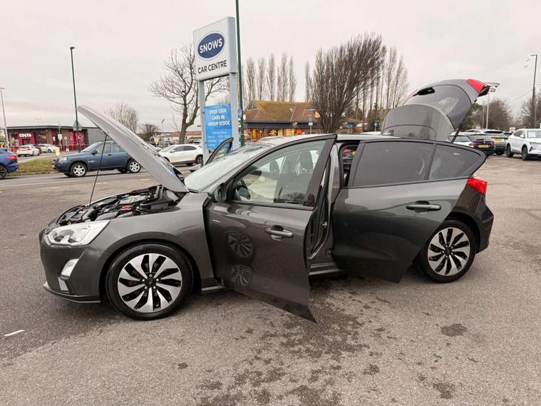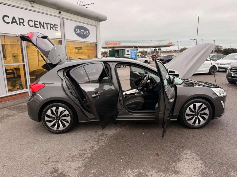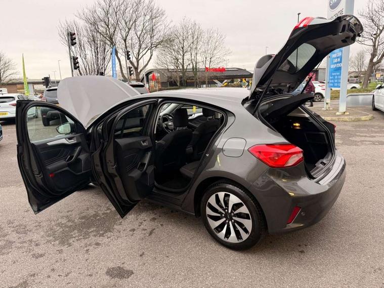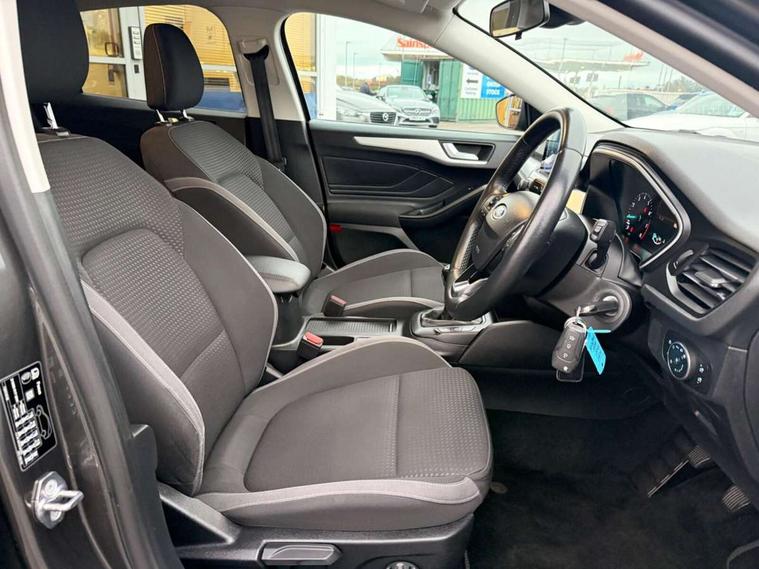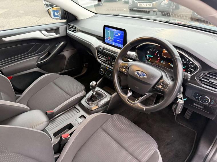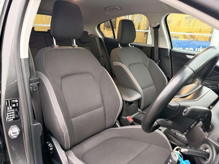 Bluetooth system, Cruise control + speed limiter, Digital clock, Easy fuel capless refuelling system, Eco mode, Ford SYNC 3 with 6.5" TFT touchscreen, DAB radio and app link Android auto/Apple carplay, Lane keeping aid with lane departure warning, PAS, Selectable drive mode, Trip computer, 6 speakers, Aux input, 'Quickclear' heated windscreen/heated washer jets, Auto headlamps (on/off), Body coloured bumpers, Body coloured door handles, Body coloured electrically operated and heated door mirrors with side indicators, Electrically operated front and rear windows with one touch opening and closing, Front fog lamps with cornering function, Front variable intermittent wipers with electric wash, Halogen reflector headlamps, Heated rear window, LED daytime running lamp, Tailgate wash/wipe, 3 spoke leather trimmed steering wheel with integrated audio controls, 60/40 split back and cushion rear seats with 2 height adjustable headrests, Centre console with armrest, Cloth upholstery, Driver's lumbar support, Front floor mats, Height adjustable front headrests, Isofix child seat preparation, Leather gear knob, Manual air conditioning, Reach + rake adjustable steering column, Rear centre headrest, ABS+Electronic Brake force Distribution, Auto hold function, Driver airbag, Electronic parking brake, Electronic stability control, Front and rear seatbelt reminder, Front inertia reel height adjustable seatbelts with pre-tensioners, Front passenger airbag, Front side airbags, Hill start assist, Passenger airbag deactivate switch, Post collision braking, Pre collision assist with autonomous emergency braking and pedestrian/cyclist detection, Side curtain airbags, Three rear inertia reel lap/diagonal seatbelts, Tyre pressure monitoring system, MyKey system, Remote central locking & engine immobiliser, Thatcham category 1 alarm,
