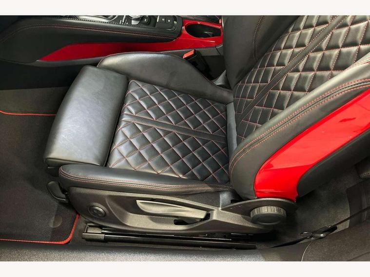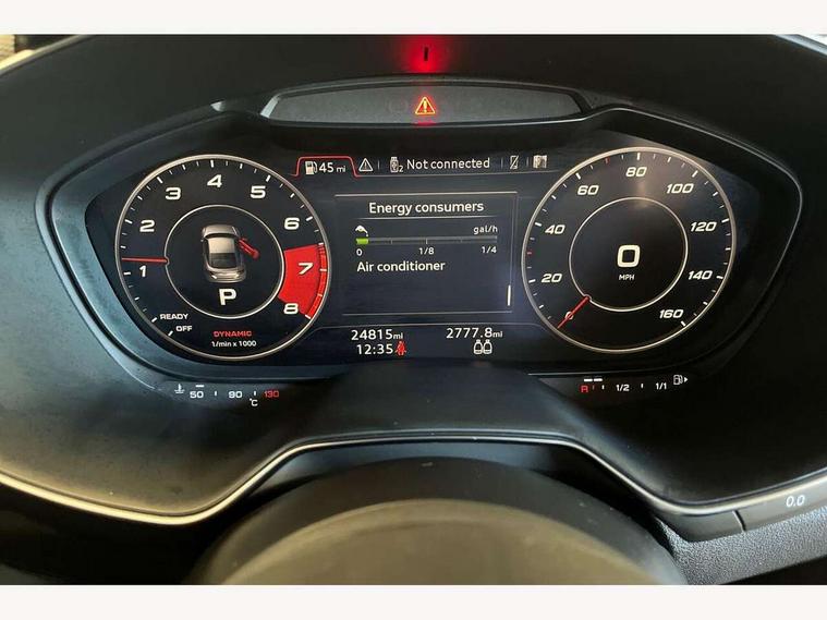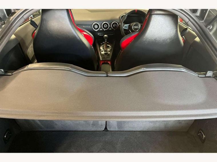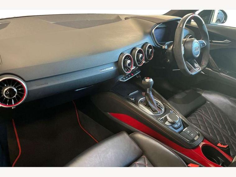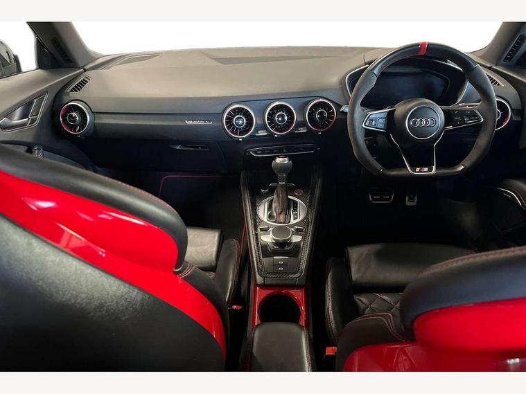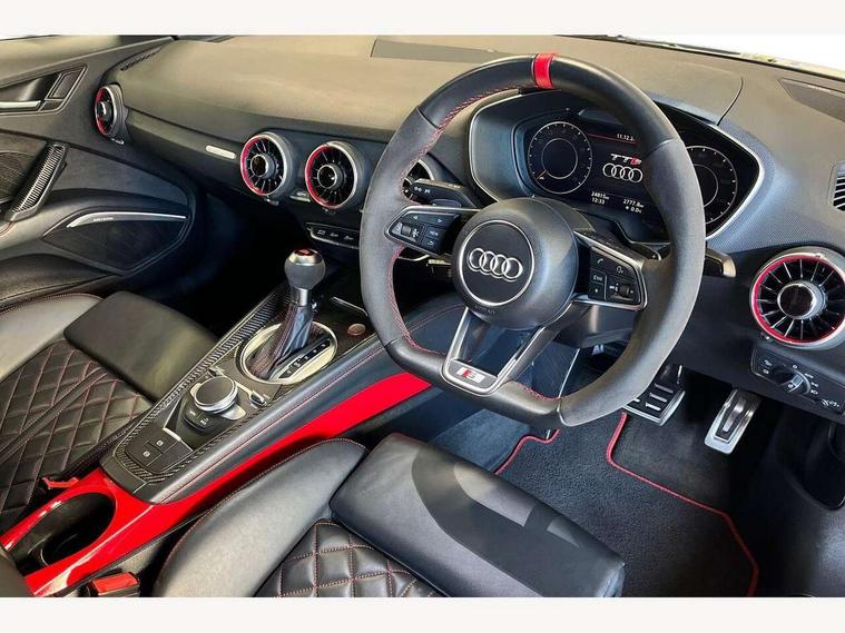 Audi drive select with 4 Pre configured modes, Audi Phone Box with wireless charging - Qi enabled compatible phone and additional bluetooth interface, Audi smartphone interface, Audi virtual cockpit - 12.3" high-resolution LCD display with fully customisable instrument cluster, Cruise control + speed limiter, Emergency call service, Progressive power assisted steering, Service interval indicator, Start/Stop system with energy recuperation, TP memo, Audi magnetic ride, TTS suspension, AM/FM radio, Bluetooth audio streaming, DAB Digital radio, Aluminium door mirror housings, Audi Beam uses LEDs to project the Audi Sport logo, Audi rings decals, Auto dimming rear view mirror, Auto headlight range control, Dark privacy glass from B-pillar backwards, Electric folding door mirrors, Electric front windows, Electrically adjustable and heated door mirrors with integrated LED side indicators, Heat insulating glass in windshield, Heat reflecting windows, LED 3rd brake light, LED daytime running lights, LED headlights with LED rear lights + dynamic rear indicators, Light and rain sensors, Rear boot, 12V socket, 2 rear seats, 3 spoke flat bottomed contour leather multi-function TTS sport steering wheel and TTS badging, 4 way electric lumbar support for driver and front passenger, Alcantara leather with 12o'clock marker and express red contrast stitching in steering wheel, Black headlining, Door sill trims with aluminium inlay and TTS logo, Fine nappa leather upholstery with S embossing + contrasting express red stitching on upholstery, Steering wheel and gear knob gaiter, Front centre armrest, Front passenger seat, Front super sports seats, Heated front seats, Integrated head restraints, ISOFIX child seat mounting for front passenger seat with airbag deactivation, Manual adjustment of seat height, fore/aft position, seat angle, seat depth and backrest angle, Rear head restraints, Rear top tether child seat ISOFIX attachment, Red piped floor mats, Split folding rear seat, Black styling package - TT, Comfort and sound pack - TT, Leather pack - TT, LED interior light pack - TT/TTS, Non smoking pack - TT/TT RS, Plus pack - TT Black Edition/Final Edition Coupe, S design body styling pack - TTS, Technology pack without Audi phone box - TT, 3 point front seat belts, ABS, ASR traction control, Curtain airbags, Driver and front passenger airbag with front passenger airbag deactivation, EDL traction control, Electromechanical parking brake, ESP, First aid kit, Front side airbags, Head airbags, Hill hold assist, Red brake callipers, Seatbelt warning, Tyre pressure loss indicator, Warning triangle, Anti theft alarm, Anti theft wheel bolts, Immobiliser, Remote central locking, Carbon inlays, 20" 7 spoke anthracite black, gloss-turned Audi sport alloy wheels, Tool kit, Tyre repair kit,