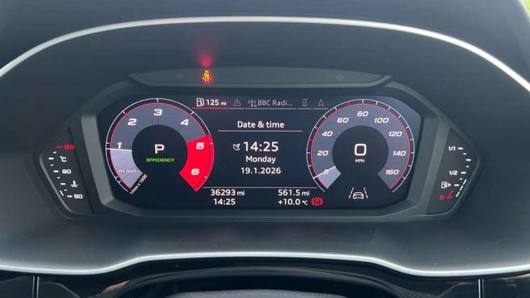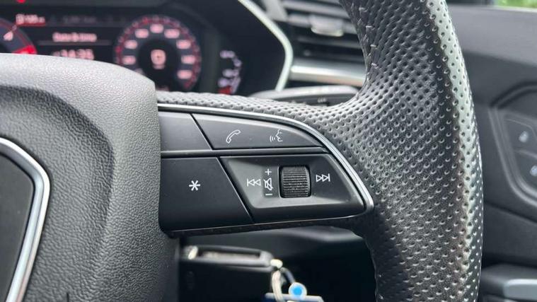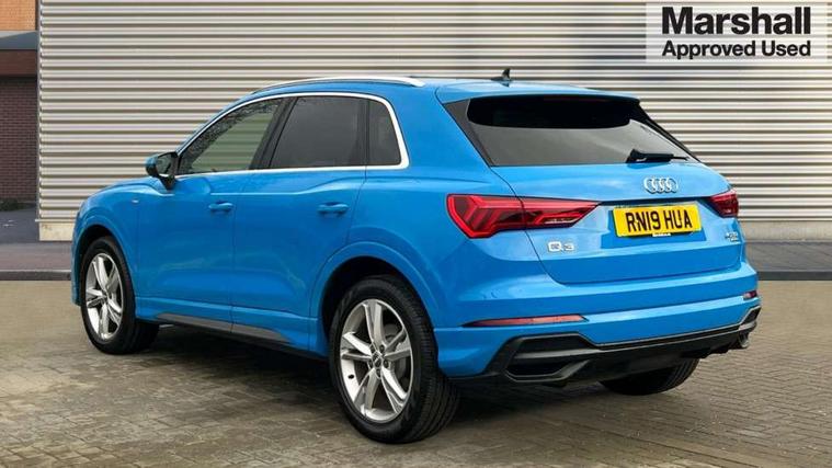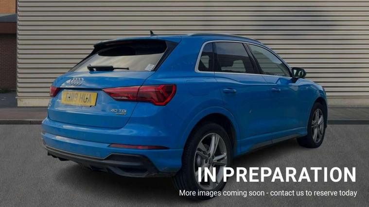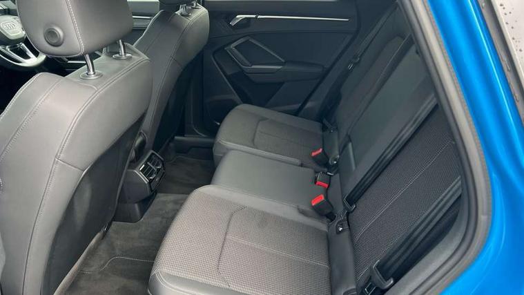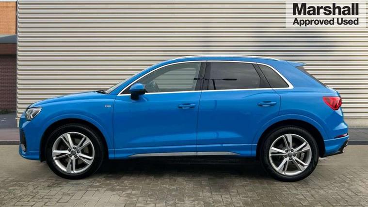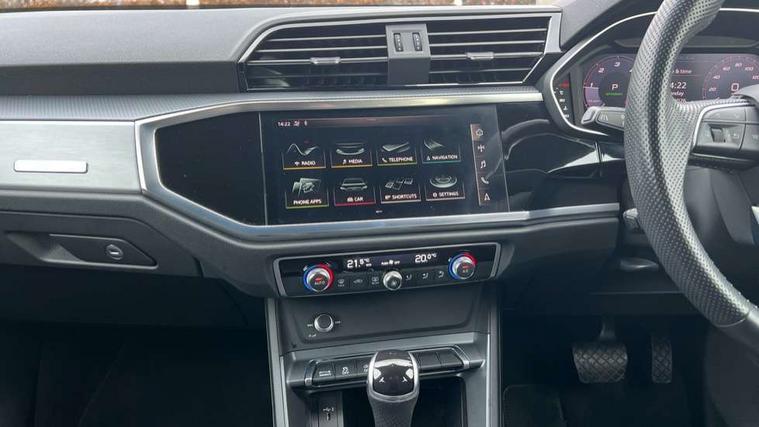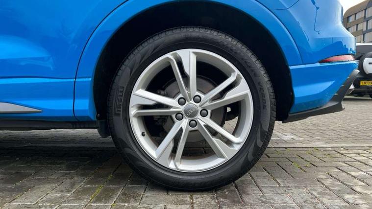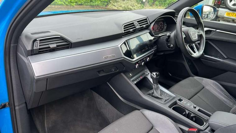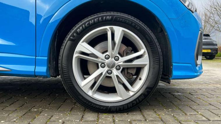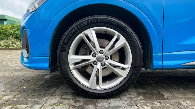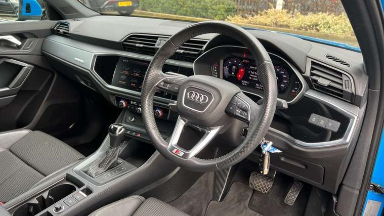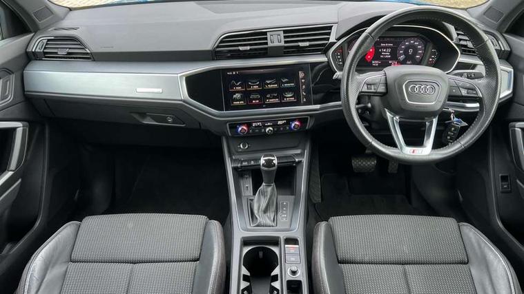 Audi connect safety and service (e-call), Audi drive select, Audi lane departure warning, Audi side assist, Audi smartphone interface, Bluetooth interface, Camera based traffic sign recognition, MMI navigation plus with MMI touch, Power opening/closing tailgate, Progressive steering, Rear parking sensors, Service interval indicator, Stop/start system, Voice control system, Diesel particulate filter, Sports suspension, 1 x USB type C and 1 USB type A charging points, 6 speakers, DAB digital radio module, Acoustic windscreen, Aluminium roof rails, Aluminium window trim, Auto dimming rear view mirror, Body coloured bumpers, Diffuser in matt Platinum grey, Electrically adjustable and heated door mirrors with integrated LED side indicators, Front and rear electric windows, Front fog lights, Front side air inlets in matt platinum grey, Front spoiler blade in matt platinum grey, Grille vertical bars in aluminium silver/Matt, High gloss black finish B and C pillars, LED headlights with LED daytime running lights and dynamic rear indicator, LED rear lights, Privacy glass, Rain and light sensors, Rear diffuser strip in matt titanium black, S Line badge on wings, S Line front and rear bumpers, Side skirt insert in matt Platinium grey, Titanium black radiator grille, 12V socket in rear centre console, 40:20:40 split folding rear bench seat, Adjustable rear seat bench/backrest with centre armrest and cupholder, Aluminium door sill trims, Black cloth headlining, Dual zone climate control, Front and rear black floor mats with contrast stitching in rock grey, Front and rear headrests, Front centre armrest with storage compartment and angle adjustment, Illuminated door sill trims with S logo, ISOFIX child seat mounting and Top Tether with front passenger airbag deactivation, Manual front seats with height adjustment, Perforated leather gearknob, Stainless steel luggage compartment sill finisher, Stainless steel pedals, Non smoking pack - Q3, 3x3 point rear seatbelts, 6 airbags - Driver, front passenger, curtain and side windows, Audi pre-sense front with pedestrain and cyclist recognition, Electrically operated child locks on rear doors, Electromechanical parking brake, Electronic stabilisation control including ABS, ASR and EDL, Hill hold assist, Pre sense basic, Seatbelt monitoring, Tyre pressure warning, Warning triangle and first aid kit, Anti theft alarm, Anti theft wheel bolts, Remote central locking, Dark matt brushed aluminium inlay, MMI touch colour display in gloss black with aluminium surround,