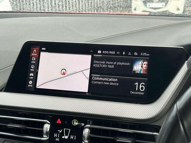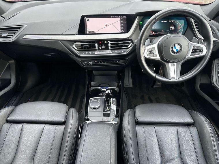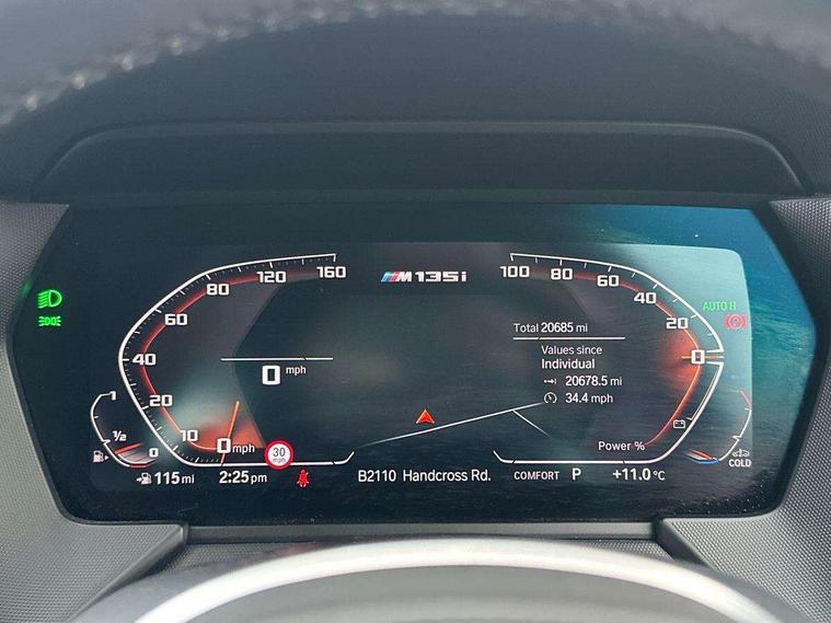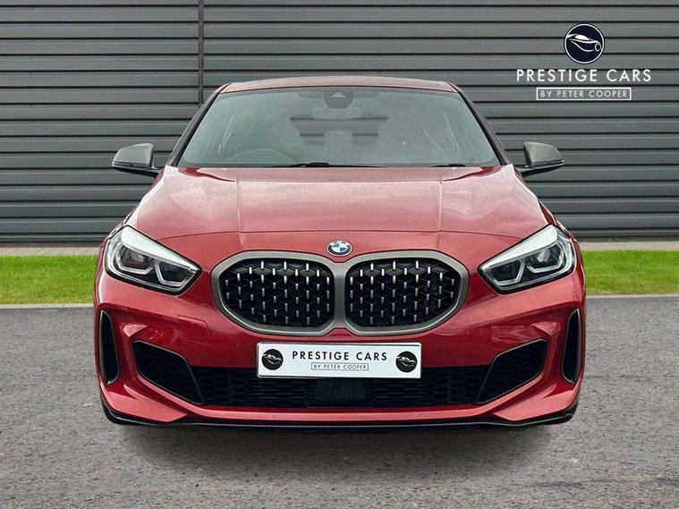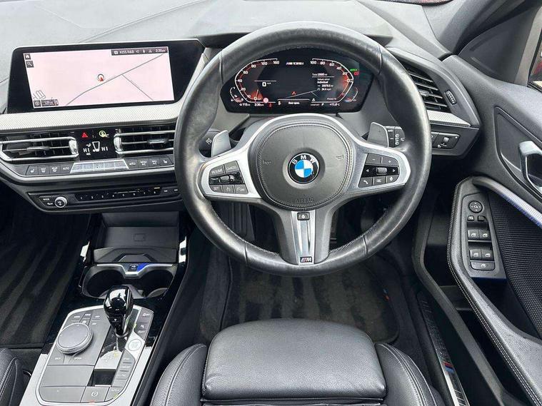 Active guard plus, Attentiveness assist, Bluetooth / WiFi interface for wireless connection of mobile terminal devices and audio streaming, BMW ConnectedDrive online services, BMW Teleservices, Check Control warning system for monitoring of lights and door/luggage compartment open warning, Eco pro mode, Electro hydraulically controlled multi-plate clutch transfers drive to rear axle and with power take-off device located on the front differential., Energy efficient operating strategy, Front axle single joint with specific axle kinematics to minimise drive influences on steering + provide increased rigidity agile driving behaviour, Gearshift time display in manual mode, Integrated owners handbook, M Sports steering with M135i xDrive specific settings, Oil sensor for level and grade, On board computer, Optimum shift indicator, Personal Profile, Pull away assistant, Rigidly mounted rear subframe - Multi link construction with separate spring / damper configuration and excellent driving characteristics, Speed limit Info including no-overtaking indicator, Speed limiter, Sporty fast gear shifting in sport mode, Aluminium lightweight construction, Anti roll bar front and rear, Balancer shaft, Double VANOS, Drive Performance Control, Eight speed sport automatic transmission with gearshift paddle switches, Electronic differential lock, Electronic selector lever, Engine cover with M performance designation, High precision injection, Larger fuel tank capacity (50 litres), Launch control, M135i specific heavily de-throttled engine intake air guide, M135i specific high-performance cooling package, M135i specific larger turbocharger with integrated divert-air valve, Petrol Particulate Filter, Twin tube gas filled shock absorbers with degressive characteristic curve, VALVETRONIC engine management, Variable, stepless and infinitely adjustable distribution of drive torque between the front and rear axles, xDrive intelligent all wheel drive with M135i specific reinforced components, DAB Digital radio, Stereo speaker system with 2 mid range speakers in the front door trims and rear parcel shelf + 2 central bass speakers underneath the front seats, Auto dimming rear view mirror, Automatic headlight beam throw control, Automatic windscreen wipers and automatic headlight, Body colour door handles, Body colour roof trims, Cerium grey exterior mirror caps, Direction indicator side lights in exterior mirrors, Exhaust tailpipe, Cerium Grey with bevelled finish - twin, round 100mm, left and right split, Fading support, Folding side mirrors with auto dimming/folding wing mirrors with auto dimming, Follow me home headlights, Front and rear bumper system with replaceable deformation elements, Front and rear electric windows with open and close fingertip control, anti trap facility and comfort closing, Front door sill finishers with M135i designation, Green tinted heat protection glazing, Heated, electrically adjustable exterior mirror aspheric on driver side, convex on passenger side, High gloss shadowline window frame, Recess cover mirror frames and B/C pillar embelisher trim, High level third brake light, Integrated front windscreen with washer jets, Kidney grille frame in Cerium Grey with Mesh design, LED daytime running lights, LED eyebrow turn indicators, LED front fog lights, Lightweight engineering, M logo designation side in cerium grey, M Performance exhaust system with valve control and minimised exhaust back pressure, M Performance specific setup, M Sport spoiler, Matt black air guide grilles, Matt black wheel arch trim, Model designation on electric bootlid includes xDrive designation for M135i xDrive, Nearside reverse light in rear light cluster, Preparation for high beam assistant, Rear fog lights, Rear window wiper, Reinforced crank drive, new pistons and adapted con rods, Shark fin antenna, Trailer stabilisation logic, Visible VIN plate, Welcome lighting, 12V power socket in front centre console with blanking plug, 3 rear seat head restraints, 3 spoke sports leather steering wheel with black leather and stitching, pearl chrome decorative finish, specific M Badge, Ambient interior lighting, Anthracite headlining, Child seat ISOFIX attachment for two outer rear seats and front passenger seat with anchorage points, Conditioned based service, Driver and front passenger seat heating, Floor mats in anthracite velour with contrasting colour seam to match contrast stitching on instrument panel, Folding rear clothes hook, Four grab handles integrated in roof lining, Front and rear door pockets with bottle holders, Front and rear side armrest integrated into door trim, Front armrest, Front M sports seats, Glove compartment, Height adjustable front head restraints, Luggage compartment for bag hooks on left and right, foldable luggage compartment liner and two lashing eyelets, Manual adjust steering wheel, Multi-function controls for steering wheel, Storage compartment in centre console, Sun visors with vanity mirrors and insert tab, Two front centre console cupholders, Two zone automatic air conditioning, Additional interior lighting pack - 1 Series M135i, Additional storage compartment pack with code 493 -1 series, BMW live cockpit professional pack- 1 Series, Connected pack professional - 1 Series, Interior lights pack - 1 Series, M Sport exterior styling aerodynamics pack - 1 Series 135i, 2 tone horn, 3 point seatbelts on all seats, front pyrotechnic belt tensioners, stopper and belt force limiters, rear coded belt buckles, Airbags - Front driver/passenger, front and rear curtain head protection, front side, manual deactivation of front passenger airbag, Anti lock braking system (ABS) with brake assist, BMW emergency call, Brake drying, Braking readiness, Child proof locking system in rear door, Comfort modes, Cornering brake control, Crash sensor activating central locking release, hazard warning lights, fuel cut off, interior lighting + activation of safety battery terminal clamp, Driver and front passenger